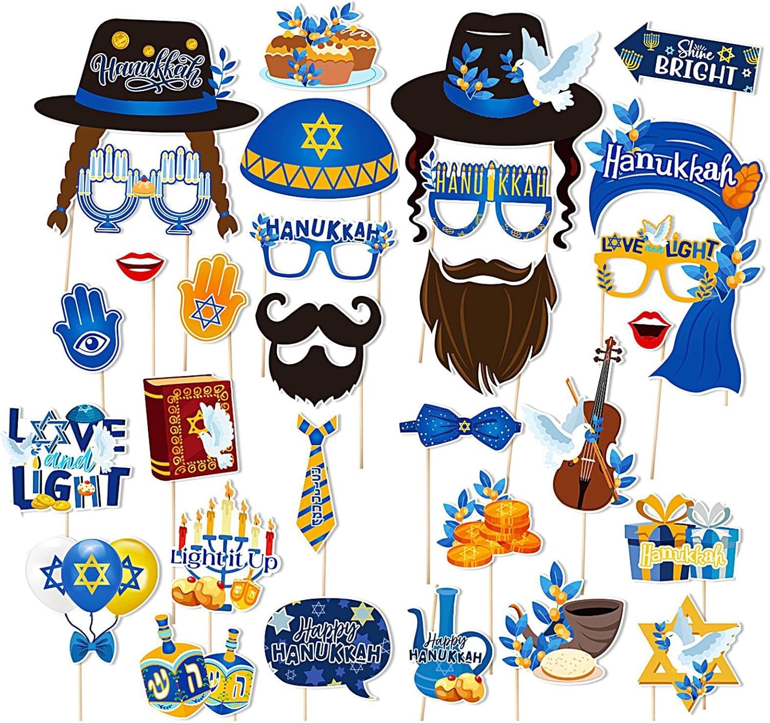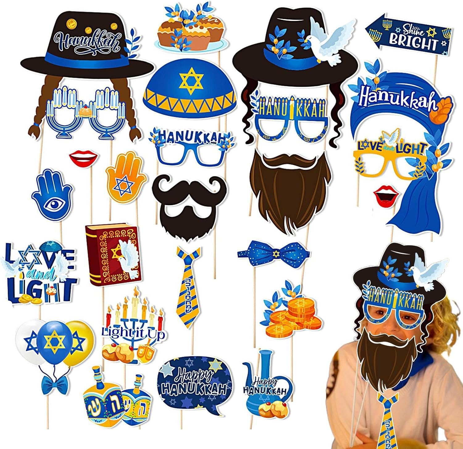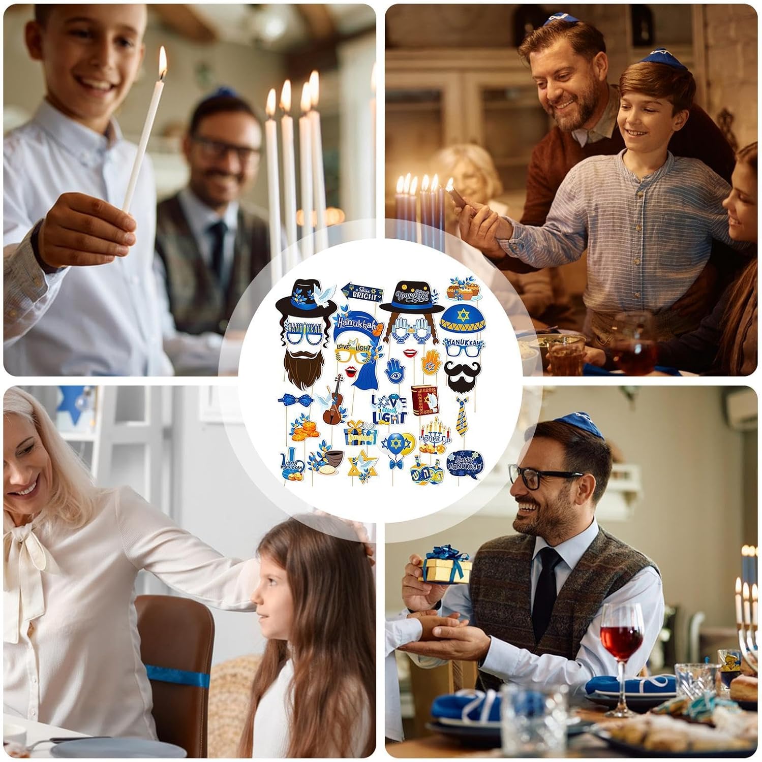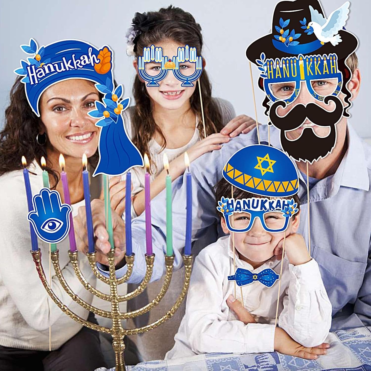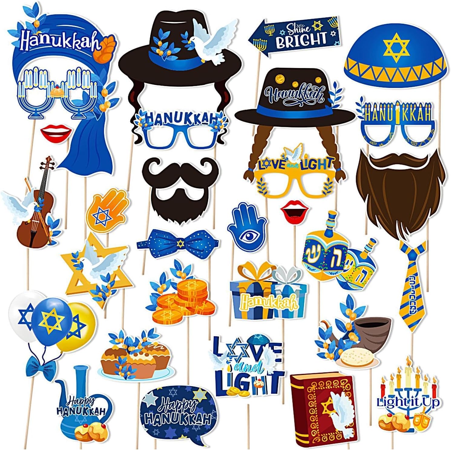 【GODITI LA TUA FESTA DI HANUKKAH】 Il nostro set di accessori fotografici Hanukkah da 30 pezzi offre un'ampia selezione di articoli a tema Hanukkah che possono soddisfare qualsiasi tema di festa o gusto personale. Con così tante scelte, i tuoi ospiti potranno scattare foto memorabili e creare un'atmosfera divertente.,Durevole: questi oggetti di scena per cabine fotografiche di Hanukkah sono realizzati in carta di alta qualità, durevoli e resistenti all'usura, eccellente durata e lunga durata, garantiscono un divertimento sicuro e non tossico. Facile da montare: rendi la tua celebrazione indimenticabile con questi oggetti di scena fotografici facili da montare. Attacca il bastoncino incluso a qualsiasi oggetto di scena con la colla inclusa e posa sullo sfondo ovunque. Cattura foto divertenti e memorabili con facilità e goditi un'indimenticabile giornata di Hanukkah. BEN FATTO - Aggiungi un tocco di classe al tuo festival con i nostri accessori per cabine fotografiche realizzati con cura. Caratterizzato da colori straordinari e design abbaglianti per stupire tutti i tuoi ospiti e garantire una celebrazione indimenticabile. MULTIUSO: Scopri la gioia di Hanukkah con un divertente accessorio per foto indimenticabili. Gli accessori versatili ravviveranno l'atmosfera festosa e aggiungeranno un po' di entusiasmo alle riunioni di famiglia e alle grandi feste
