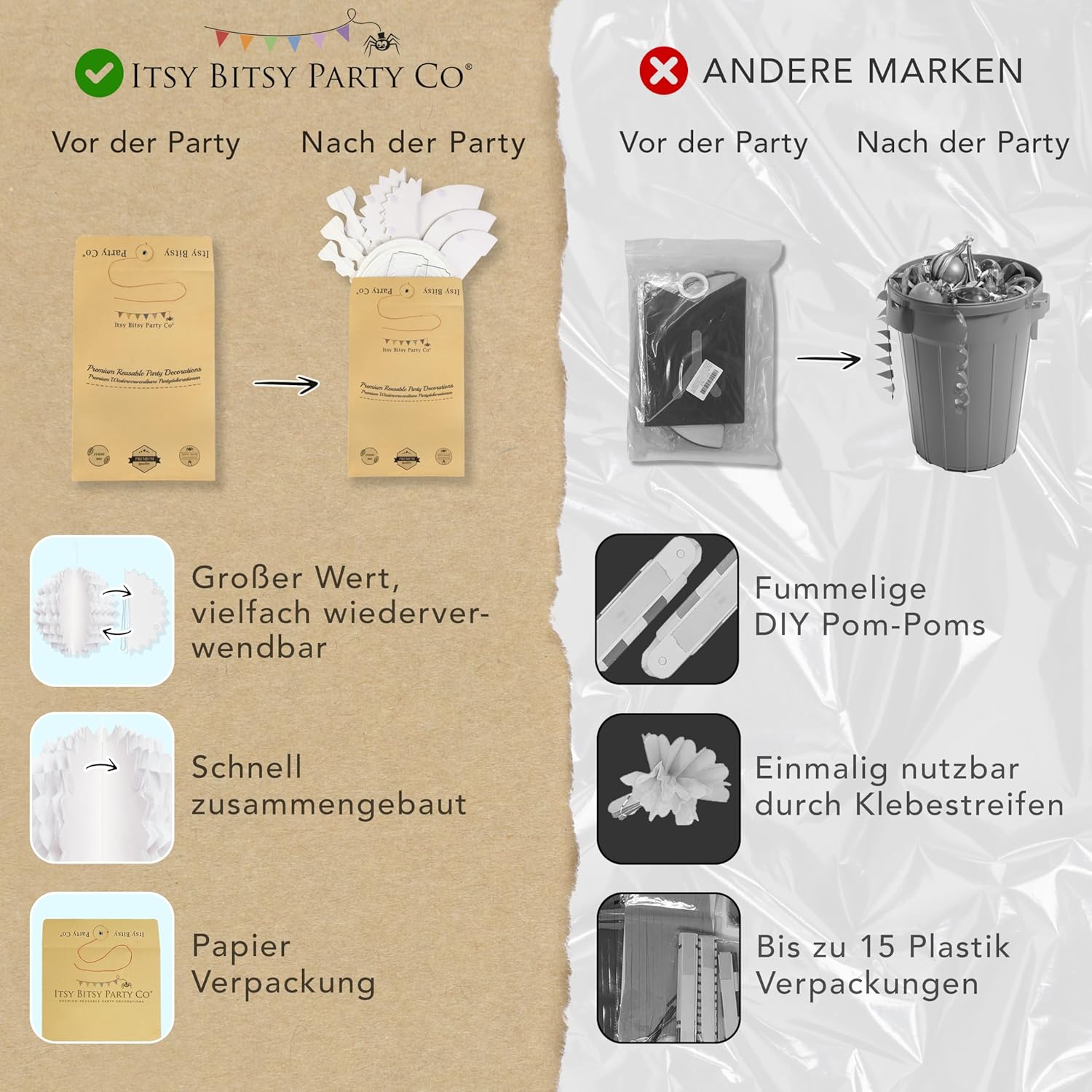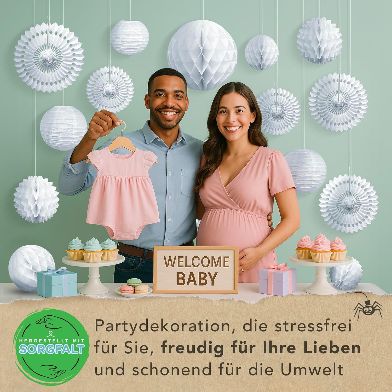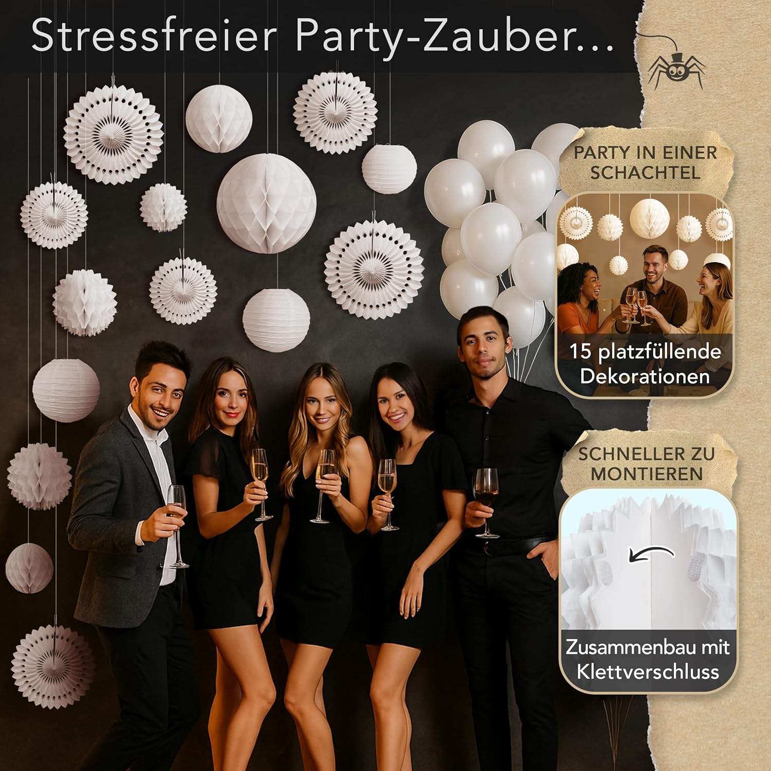 Decorazione bianca per feste: aggiungi uno splendido sfondo al tuo matrimonio o festa. Grazie alla chiusura in velcro, l'intero set di decorazioni in carta può essere assemblato in pochi minuti ed è facilmente riutilizzabile. Altri marchi richiedono un assemblaggio complicato e utilizzano nastro usa e getta. Preparati a stupire i tuoi ospiti e a creare ricordi duraturi con il nostro versatile set di decorazioni per le feste. Riutilizzabile e incredibilmente versatile: eleva la tua festa con le nostre decorazioni eleganti e riutilizzabili. Perfette per ogni occasione, queste decorazioni chic aggiungeranno un tocco di eleganza al tuo spazio anno dopo anno. Progettato per comodità, facile da riporre e occupa uno spazio minimo. Per la tua occasione speciale: queste decorazioni bianche per donne, ragazze, uomini e ragazzi sono perfette come decorazioni per compleanni, decorazioni per feste in giardino, decorazioni per feste di fidanzamento, decorazioni per ricevimenti di nozze o decorazioni per il tè pomeridiano. Niente plastica nella confezione... MAI! - Altre marche hanno ogni decorazione confezionata singolarmente. Queste sono fino a 16 parti in plastica per il cestino. La nostra missione è ridurre i rifiuti nelle discariche. Fatti: le nostre decorazioni per feste riutilizzabili di alta qualità sono progettate nel Regno Unito. Qualità e sostenibilità sono al centro di tutto ciò che facciamo. Questo pacchetto include: 6 ventagli di carta a nido d'ape, 3 palline a nido d'ape, 3 fiori di carta a nido d'ape e 3 lanterne di carta di diverse dimensioni da 15 a 30 cm.