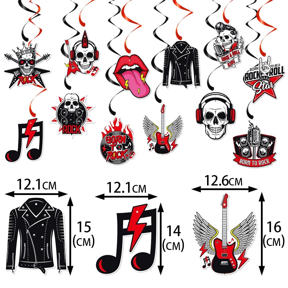 Il set di decorazioni per feste di musica rock nero e rosso include: 1 striscione con lettere Born to Rock, 1 bandierine a tema musicale, 12 stelle filanti a spirale. Un pacchetto conveniente per soddisfare le esigenze della tua festa e renderla davvero attiva e impressionante. Buon materiale: le forniture per feste di musica rock degli anni '50 sono realizzate con carte rigide di alta qualità, inodore, stampate in modo chiaro, non facili da sbiadire, non tossiche, durevoli e riutilizzabili. Facile da installare: questa decorazione da appendere con musica rock può essere appesa nei tuoi posti preferiti, come tavolo da dessert, soffitti, porte, finestre, porte, archi, portici e rami del cortile, rendendola ideale come decorazione per feste o eventi interni ed esterni. È la scelta ideale per le feste di musica rock. Applicazione: queste decorazioni sono perfette per feste rock and roll, feste anni '50, feste musicali, feste di compleanno anni '50, feste in discoteca. Puoi aggiungere divertimento alla tua festa. Adatto come buon supporto per la fotografia, lo sfondo, la decorazione della stanza e della festa
