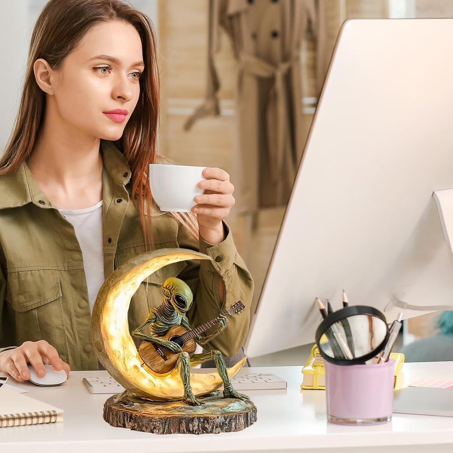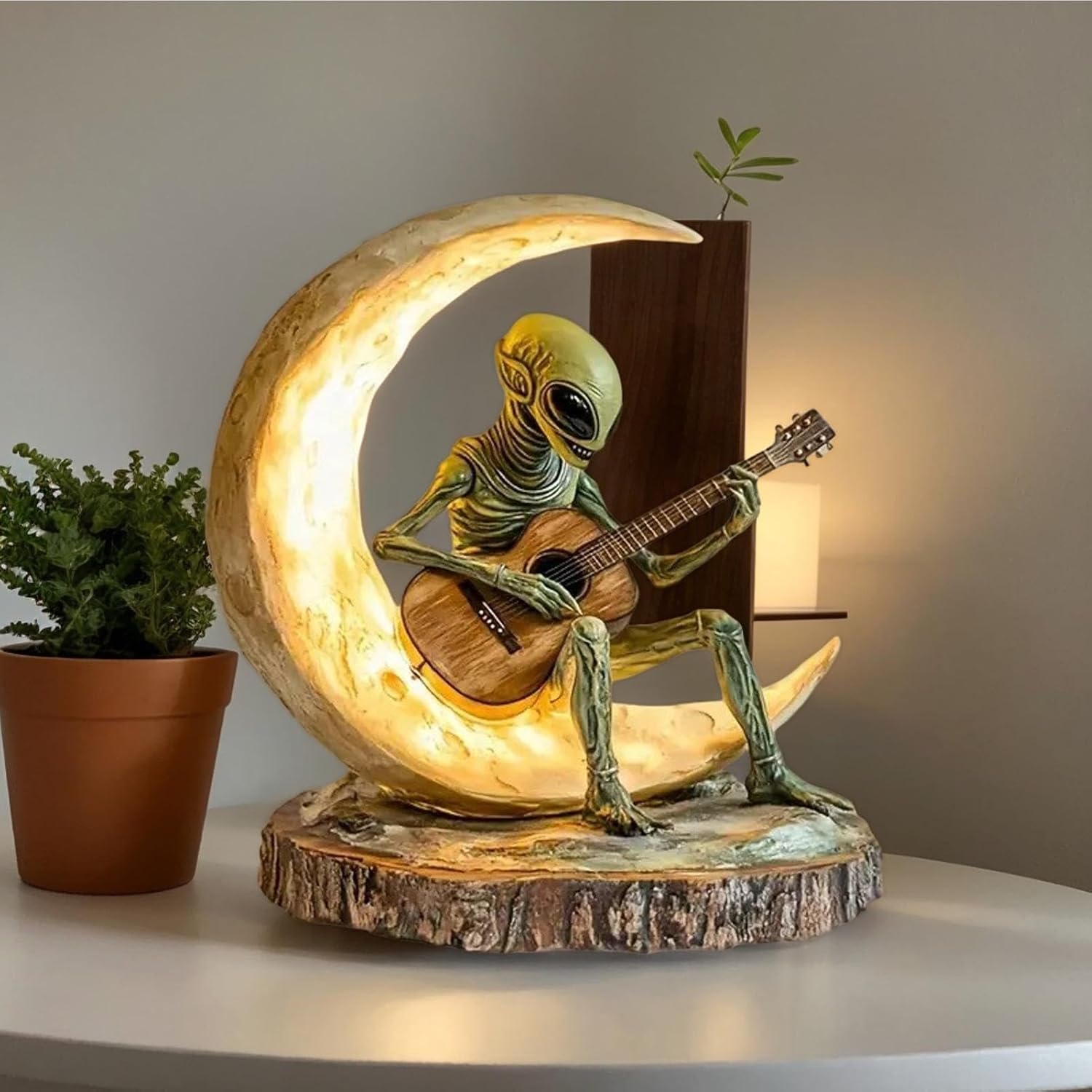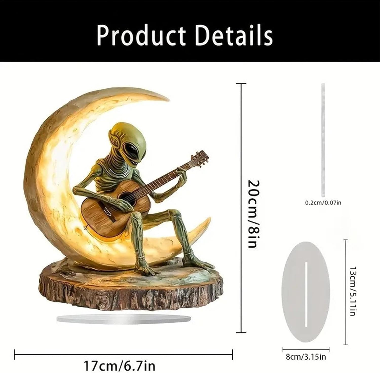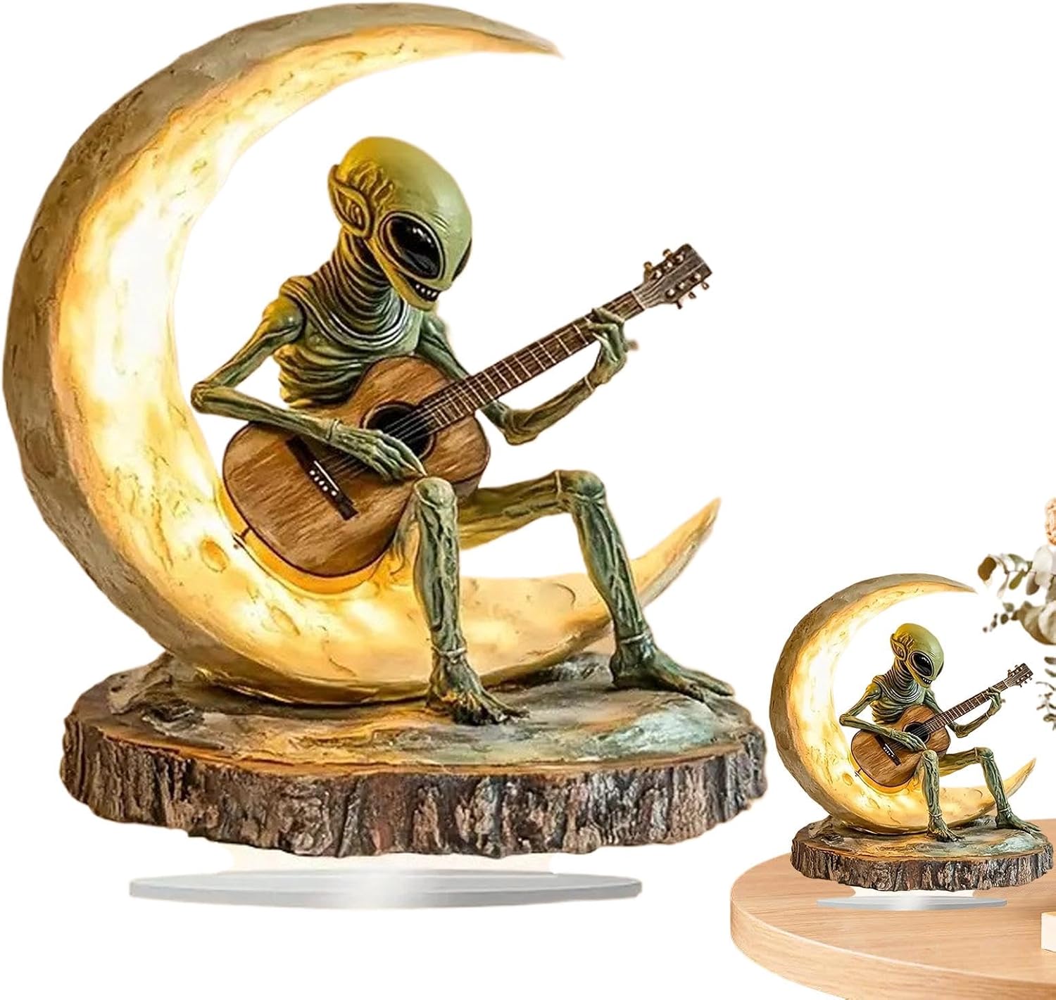 【Creativo e interessante】 Questa piccola statua aliena è un accessorio da scrivania unico con un design vivace e accattivante. Caratterizzata da una figura di chitarrista alieno sulla luna, questa statua aggiunge un tocco unico a qualsiasi stanza, rendendola la parola perfetta per le persone creative e curiose. COSTRUZIONE ROBUSTA - Quando si tratta di utilizzo e sostenibilità a lungo termine, la nostra piccola statua aliena è in cima a tutto il resto. Realizzata in materiale acrilico inodore di alta qualità, questa statua ha una struttura solida che resiste alla deformazione o ai danni, resistenza ideale. Ampia applicazione: migliora la tua decorazione interna ed esterna con la piccola statua aliena. Perfetto per aggiungere un tocco di fantasia al tuo soggiorno, camera da letto, scaffale, giardino o cortile e per divertenti indizi di apertura. Soddisfa esigenze diverse attraverso un uso diffuso Perfezione ben progettata: con una fisica straordinariamente dettagliata e trame morbide, questa piccola statua aliena presenta una base piatta accuratamente progettata che garantisce stabilità quando posizionata su chiunque, evidenziando le sue belle caratteristiche intagliate e dipinte a mano. OTTIMA OPZIONE REGALO: fai una sorpresa e un regalo divertente con questa piccola statua aliena, perfetta per ogni occasione. Un pezzo decorativo unico e memorabile che aggiungerà carattere a qualsiasi stanza, questa statua è il regalo ideale per amici, familiari o colleghi.