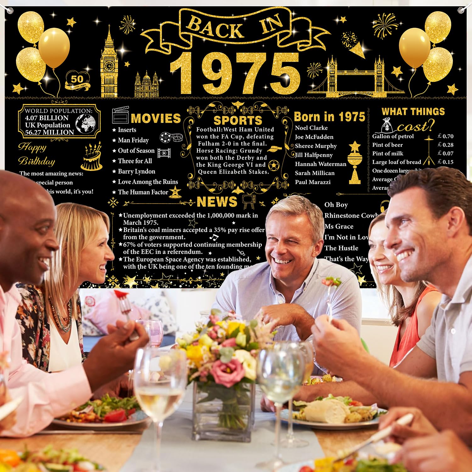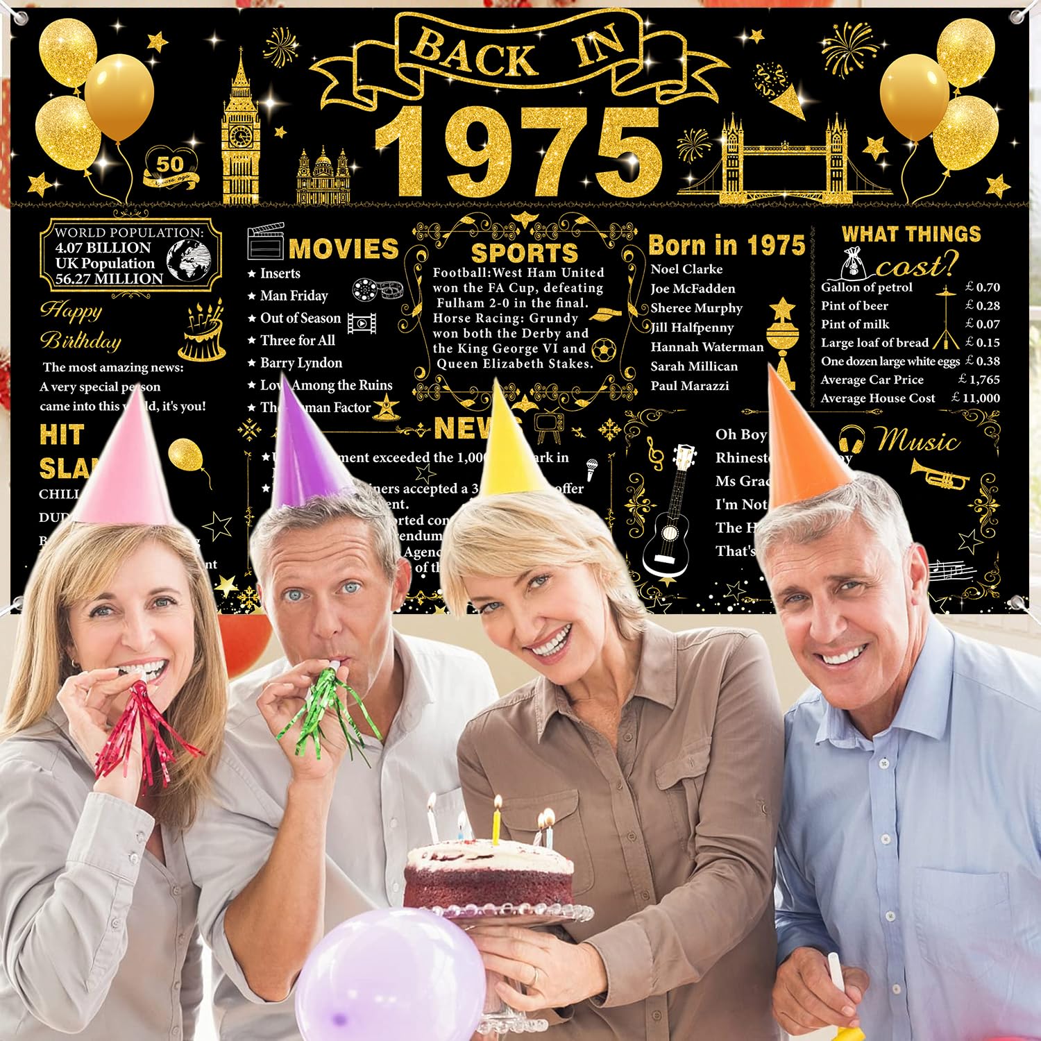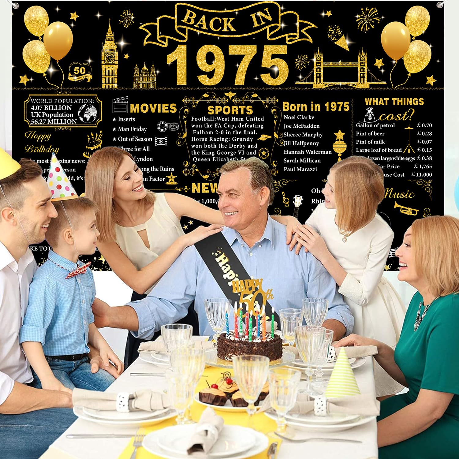 Tema del 1975: lo striscione grande del 1975 è squisitamente progettato con interessanti elementi a tema di compleanno e testo storico chiaro con motivi squisiti, in nero brillante e oro, con caratteri accattivanti, per un piacevole divertimento visivo. Decorazioni per il 50° compleanno: lo striscione per il 50° compleanno misura 180 x 110 cm. È abbastanza grande per la tua festa di 50° compleanno. Questo banner di compleanno può aggiungere più divertimento a te, al tuo amante, alla famiglia e agli amici. Materiali di alta qualità: questo banner per sfondo Back in 1975 è realizzato in tessuto di poliestere, pieghevole e può durare a lungo. Facile da usare: lo striscione per 50 anni con corda, basta attaccarlo attraverso 4 fori agli angoli e appenderlo alla parete, alla cabina fotografica o alla recinzione. Ampia applicazione: il poster del Regno Unito del 1975 può essere applicato come sfondo fotografico per feste di 50° compleanno, decorazione da parete, decorazione per la casa, decorazione da tavolo per torte, fotografia in studio fotografico e molto altro ancora. Usali per creare l'evento memorabile e aumentare un'atmosfera felice per i tuoi amici e familiari, questo sarà un modo perfetto per scattare foto a una festa.