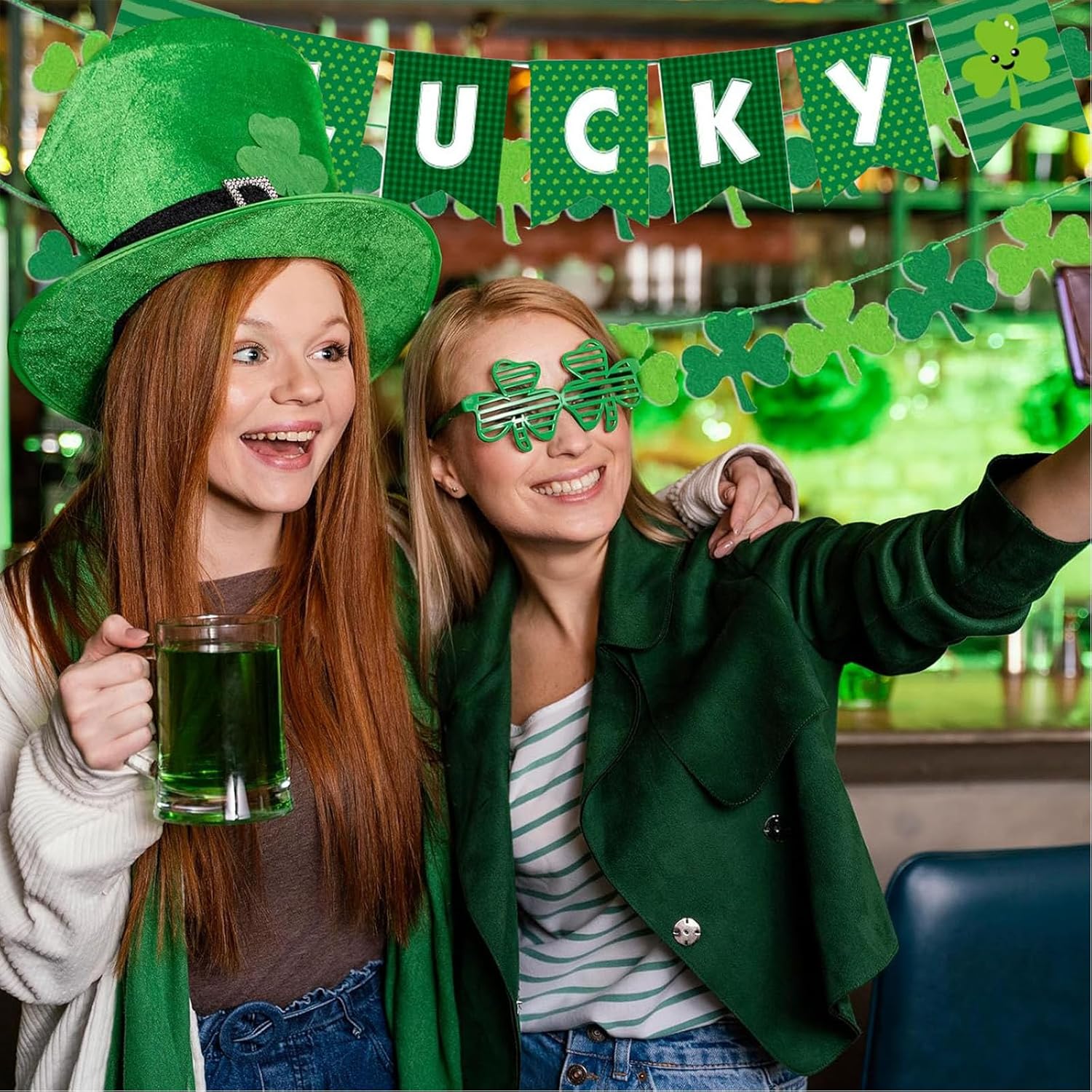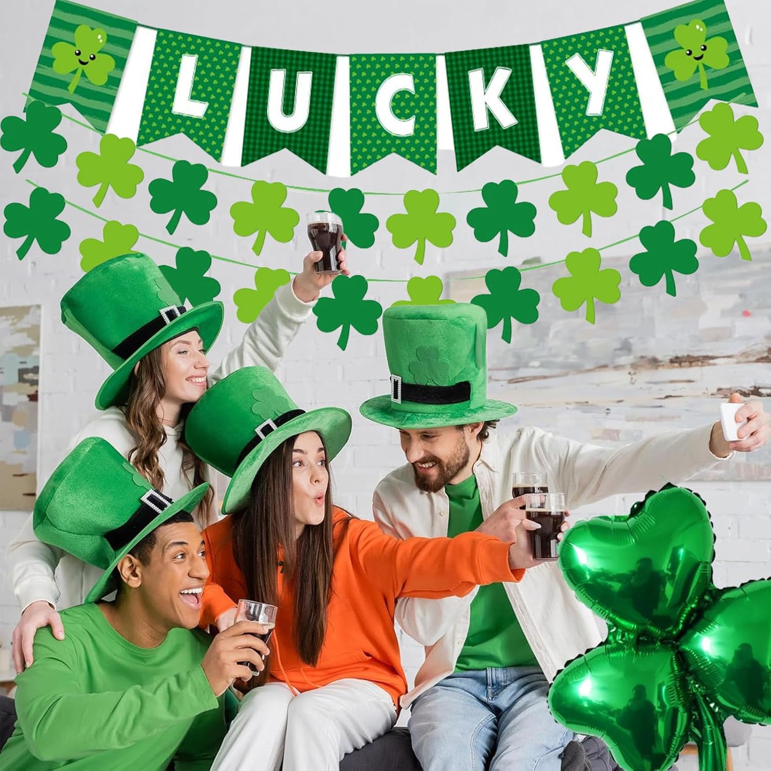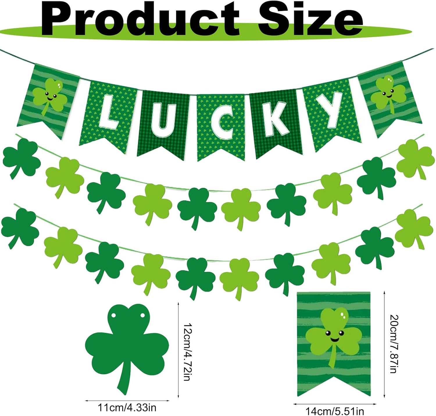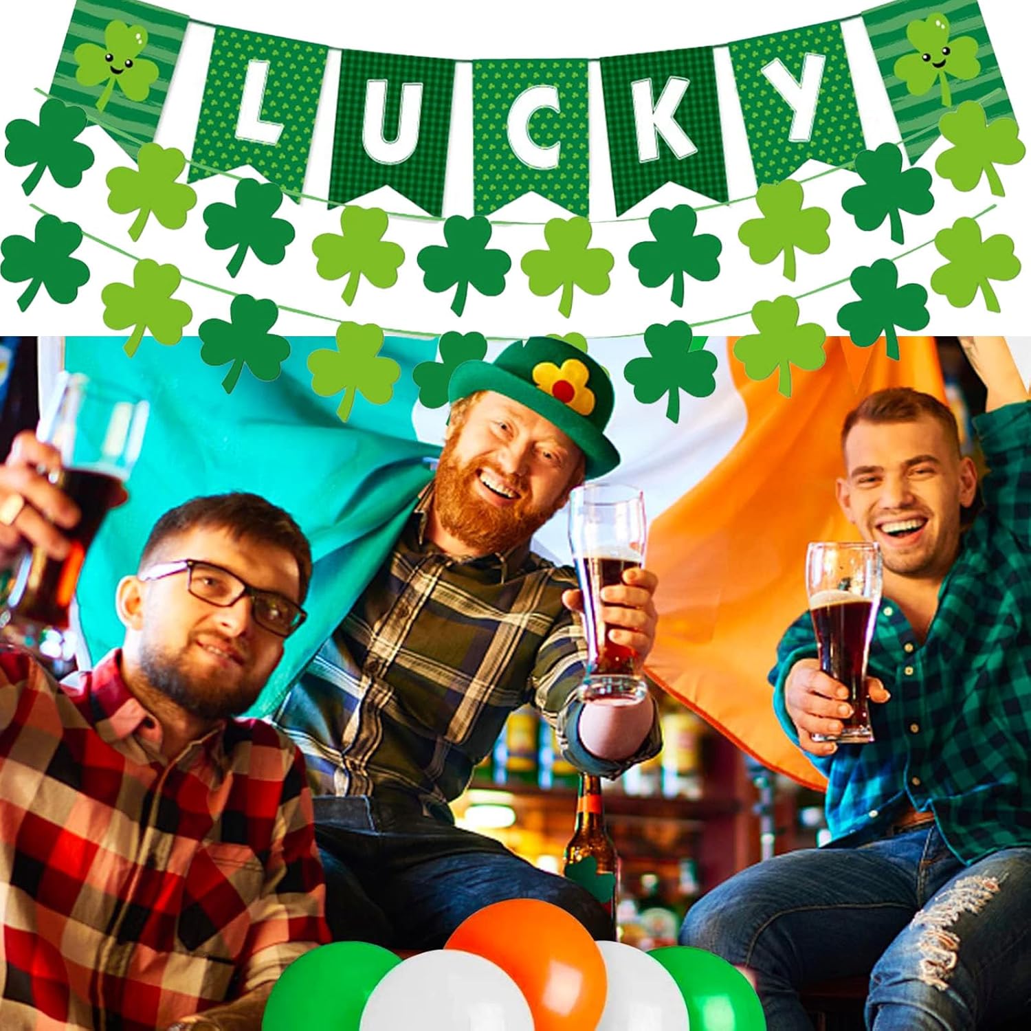 Trasforma il tuo spazio con l'irresistibile magia del giorno di San Patrizio: prepara la tua casa per la celebrazione definitiva del giorno di San Patrizio con le nostre splendide e vivaci decorazioni. Dai quadrifogli portafortuna agli stendardi di quadrifogli, le nostre decorazioni per il giorno di San Patrizio creano un'atmosfera festosa e calda che migliorerà immediatamente qualsiasi stanza o festa. Che tu stia organizzando una riunione di famiglia o decorando il tuo ufficio, queste decorazioni sono il tuo biglietto per una celebrazione indimenticabile! PERFETTO DIMENSIONE GRANDE: include 1 striscione fortunato, 2 striscioni di trifoglio. Ogni trifoglio misura 10 x 10 cm, lunghezza totale ca. 5 m, rendendoli sufficienti per decorare la tua casa e renderti più memorabile nei giorni speciali.,Qualità di cui ti puoi fidare: progettate per durare: realizzate con materiali di alta qualità, le nostre decorazioni sono costruite per durare anno dopo anno. Otterrai un uso duraturo senza sbiadire o sfilacciarsi. Con attenzione ai dettagli, le nostre decorazioni per il giorno di San Patrizio sono realizzate per il massimo impatto, così le tue celebrazioni saranno sempre impeccabili. Fidati di noi, queste saranno le tue decorazioni preferite per ogni giorno di San Patrizio. 【Facile da configurare】 Goditi più divertimento, meno stress: dimentica configurazioni complicate! Le nostre decorazioni sono dotate di tutto il necessario per un'installazione rapida e semplice. Basta appenderlo e sei pronto per partire! Perfetto per gli acquirenti impegnati che vogliono godersi la vacanza senza passare ore a sistemare. Ottieni il massimo dalla tua festa di San Patrizio in pochi minuti! 【Valore imbattibile: ottieni il meglio con meno】 Perché accontentarti di decorazioni troppo costose quando puoi ottenere decorazioni di alta qualità per il giorno di San Patrizio a un prezzo imbattibile? Ricche di fascino e stile, le nostre decorazioni offrono un'esperienza festiva eccezionale senza spendere una fortuna. Rendi indimenticabile ogni celebrazione con articoli economici e di alta qualità che non deluderanno!
