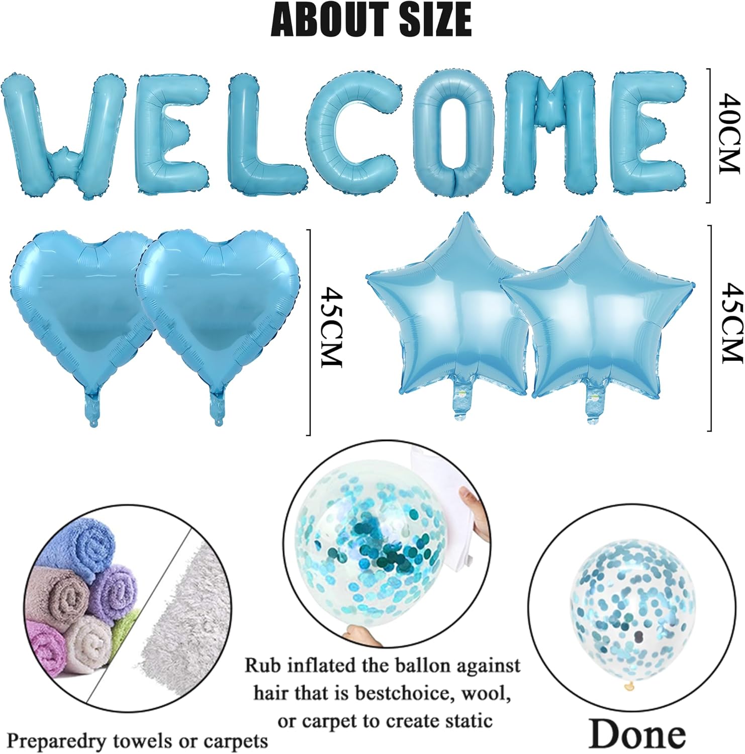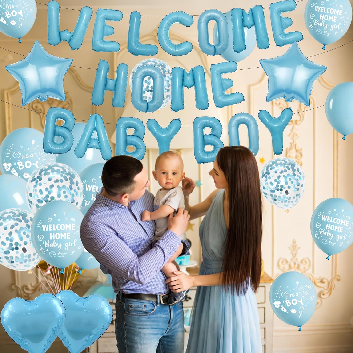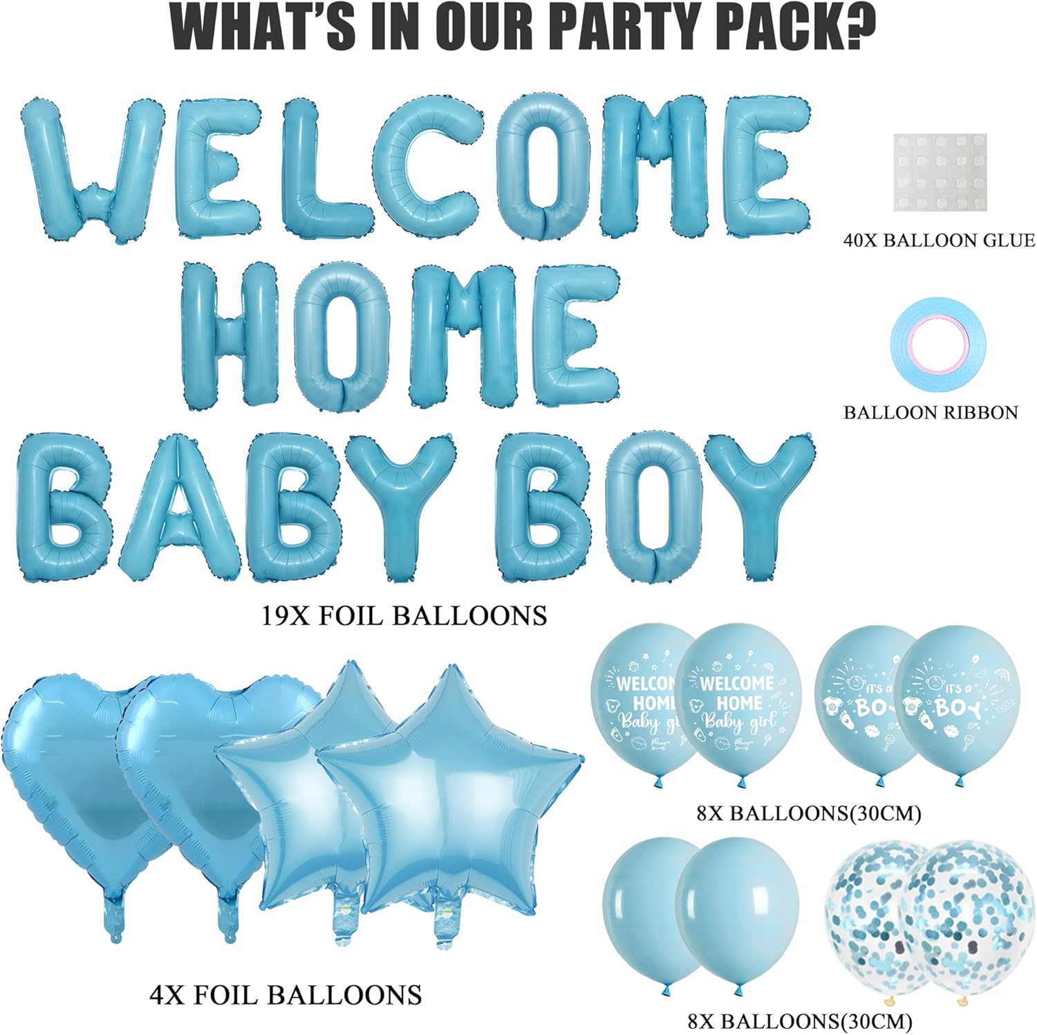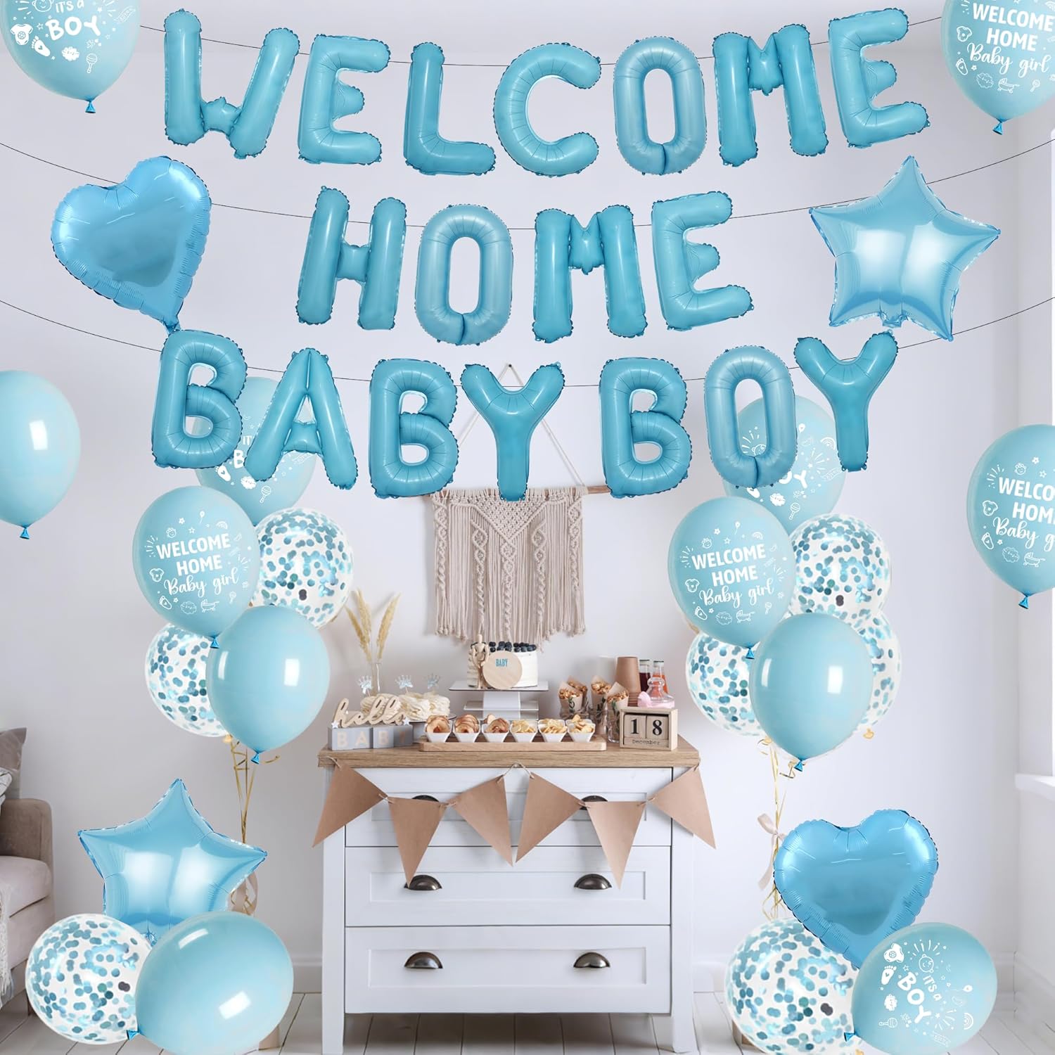 Decorazioni per baby shower: riceverai 12 palloncini in lattice, 4 palloncini coriandoli, 18 palloncini foil con lettere, 2 palloncini foil a cuore e palloncini foil con 2 stelle. È un'ottima scelta per dare il benvenuto al tuo neonato Materiale: i palloncini Welcome Home Baby Boy sono realizzati in lattice di alta qualità e foglio di alluminio, che possono rimanere gonfiati per un tempo più lungo, con superficie liscia e stampa brillante. Sicuro e innocuo, adatto a tutti i tipi di attività di festa. Facile da usare: le decorazioni blu per la baby shower includono nastri facili da montare. Basta gonfiare i palloncini e fissarli al muro, alla finestra, alla stanza e al giardino, puoi facilmente migliorare l'atmosfera della festa di compleanno Applicabile: i palloncini Welcome Home non sono progettati solo per le feste di benvenuto a casa dei neonati, ma sono adatti anche per le feste di compleanno dei neonati e per le feste di ritorno a casa, queste decorazioni di benvenuto per i ragazzi sono adatte per interni ed esterni. Cattura ricordi preziosi: le decorazioni "Welcome Home Baby Boy" creano uno sfondo di sfondo incantevole. Genitori e ospiti possono catturare momenti preziosi mentre si godono una festa visivamente accattivante che aggiunge un tocco di colore alla celebrazione