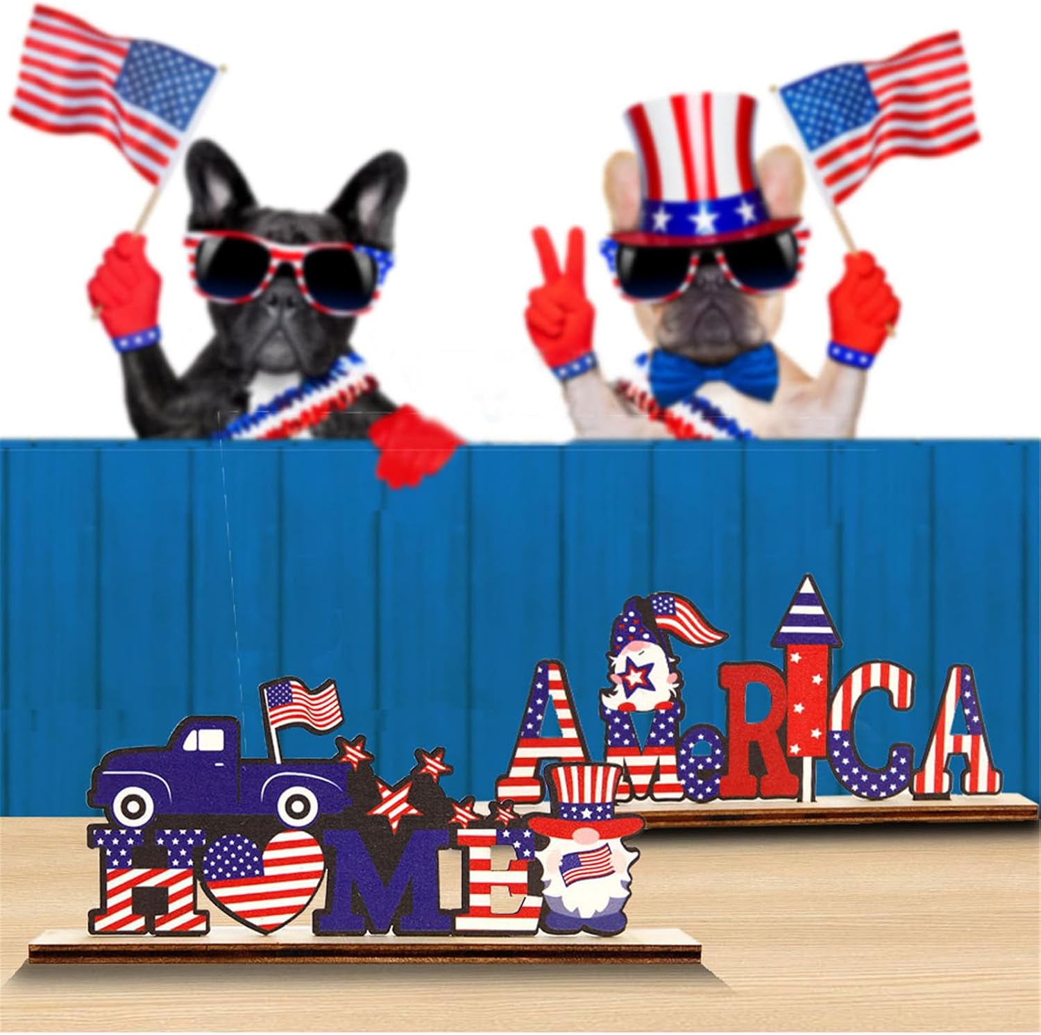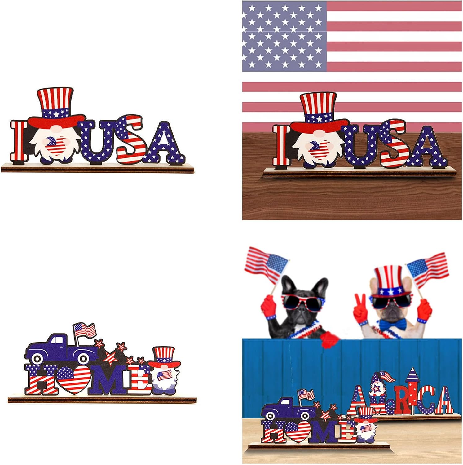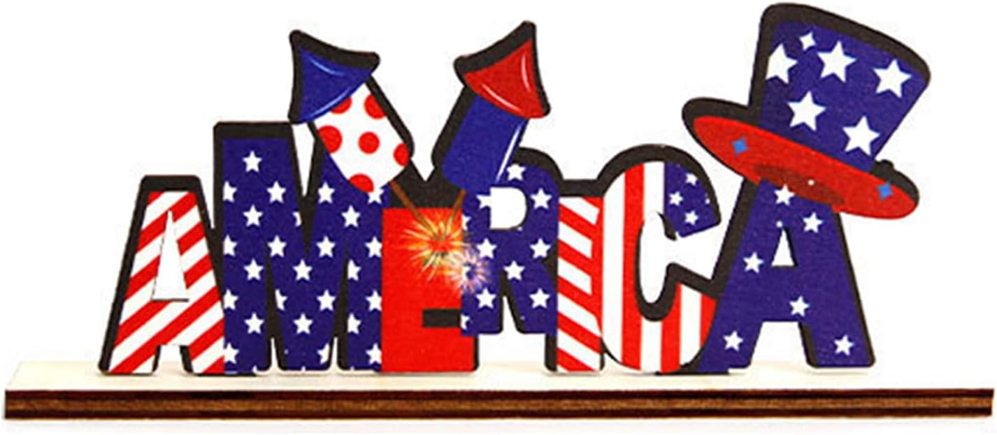 Bellissime decorazioni patriottiche in legno, la nostra decorazione da tavola patriottica è alla moda; attirerà sicuramente l'attenzione dei tuoi ospiti e si coordinerà con il tuo tema del 4 luglio Facile da abbinare, la base e le decorazioni in legno sopra riceverai separate l'una dall'altra, devi assemblarle tu stesso; grazie alla squisita fattura, la base e la decorazione possono adattarsi bene l'una all'altra, non si perderanno facilmente La decorazione del tavolo dell'indipendenza è realizzata in legno, nessun cattivo odore e sicura, bella e attraente, non facile da rompere o sbiadire, portando felicità e creando un'atmosfera felice per il tuo giorno indipendente Regalo meraviglioso, amico caloroso, famiglia e te stesso Occasione: La nostra decorazione da tavolo in legno funziona bene per feste, casa, tavoli, caminetti e altri luoghi come bella decorazione