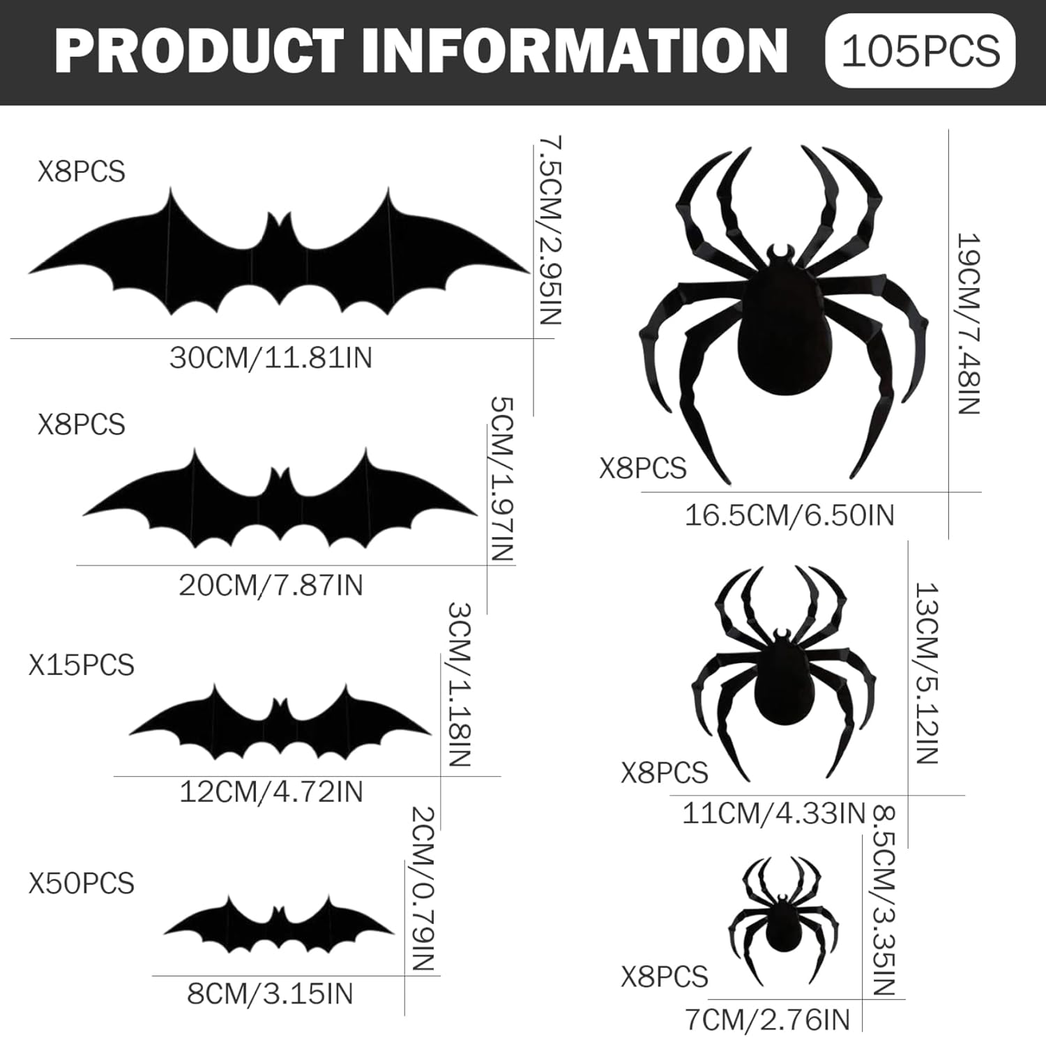 Affidabili e resistenti agli agenti atmosferici: realizzati in plastica, questi adesivi murali possono resistere a condizioni interne ed esterne, garantendo che le tue decorazioni spettrali rimangano vibranti e intatte per tutta la stagione di Halloween, indipendentemente dalle condizioni atmosferiche o dalla manipolazione. DECORAZIONE VERSATILE DI HALLOWEEN: questi adesivi rimovibili sono adatti a una varietà di superfici tra cui pareti, finestre, specchi e mobili e sono ideali per creare un'atmosfera festosa all'interno e all'esterno, perfetta per feste, case infestate o l'atmosfera quotidiana di ottobre. Grande quantità per esposizione creativa: con 105 pezzi inclusi, avrai un sacco di pipistrelli e ragni per personalizzare completamente il tuo spazio. Ciò ti consente di creare layout o modelli dinamici che massimizzano lo spirito di Halloween nella tua casa o evento. Design realistico e spettrale: ogni adesivo di pipistrello e ragno presenta opere d'arte dettagliate e realistiche che miglioreranno la tua atmosfera di Halloween e porteranno ombre inquietanti e creature spettrali sulle tue pareti, finestre e porte, creando un'esperienza di festival davvero coinvolgente. FACILE APPLICAZIONE E RIMOZIONE: Progettati per una decorazione rapida e senza problemi, questi spettrali adesivi murali Halloween da 105 pezzi con pipistrelli e ragni aderiscono perfettamente a qualsiasi superficie interna o esterna senza lasciare residui. Perfetto sia per gli affittuari che per i decoratori stagionali.