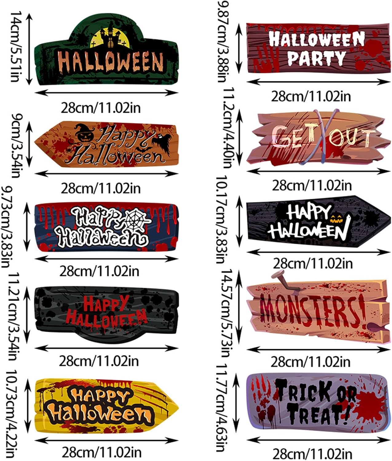 Perfetto per Halloween e questo set da 10 pezzi di nuovi cartelli offre dimensioni accattivanti che attirano l'attenzione aggiungendo un fascino spettrale a qualsiasi stanza, ideale per "cartelli di Halloween" e "decorazioni spaventose per la casa". Aumenta i temi della casa, le esposizioni o le feste di Halloween nel cortile con questi segni spettrali che creano atmosfere coinvolgenti per gli appassionati di "decorazioni per la casa spettrali" e luoghi a tema. Progettato per proprietari di case, organizzatori di feste e appassionati di Halloween che cercano un autentico "cartello di Halloween" Decorazioni" Questi cartelli portatili ma efficaci sono realizzati con materiali cartacei robusti per essere attaccati facilmente a pareti, porte, cancelli o recinzioni con i tuoi elementi di fissaggio preferiti (viti non incluse) per esposizioni stagionali versatili. Ogni confezione contiene 10 cartelli dal design unico che forniscono un'ampia quantità per decorare più aree mantenendo una narrativa coerente a tema horror attraverso una grafica audace e una struttura in carta resistente alle intemperie