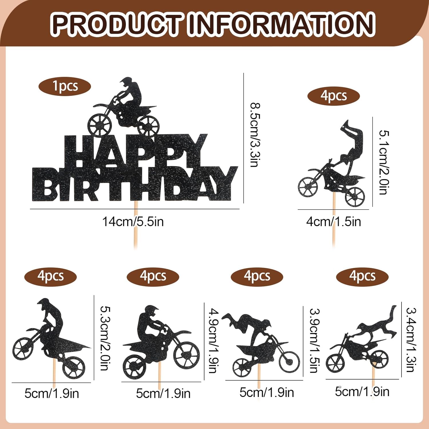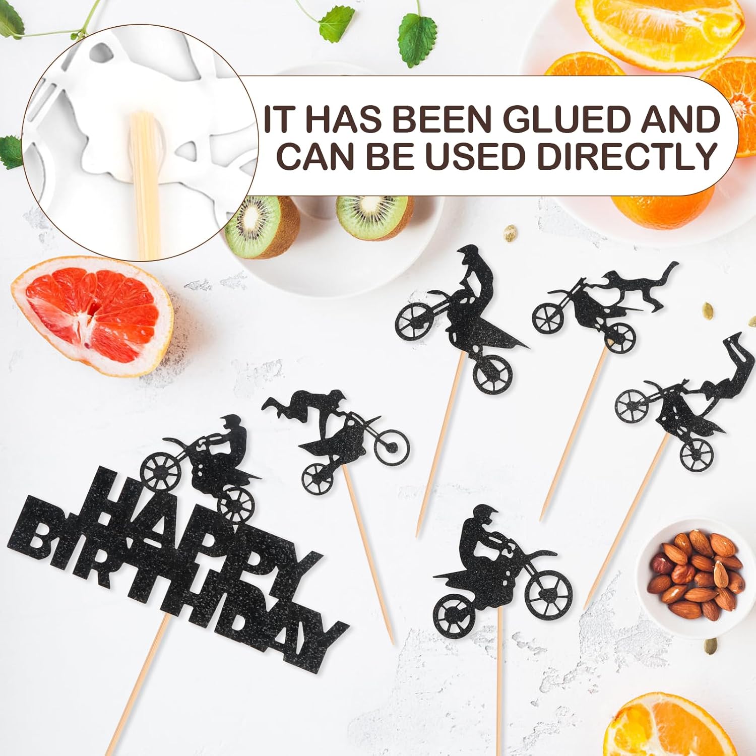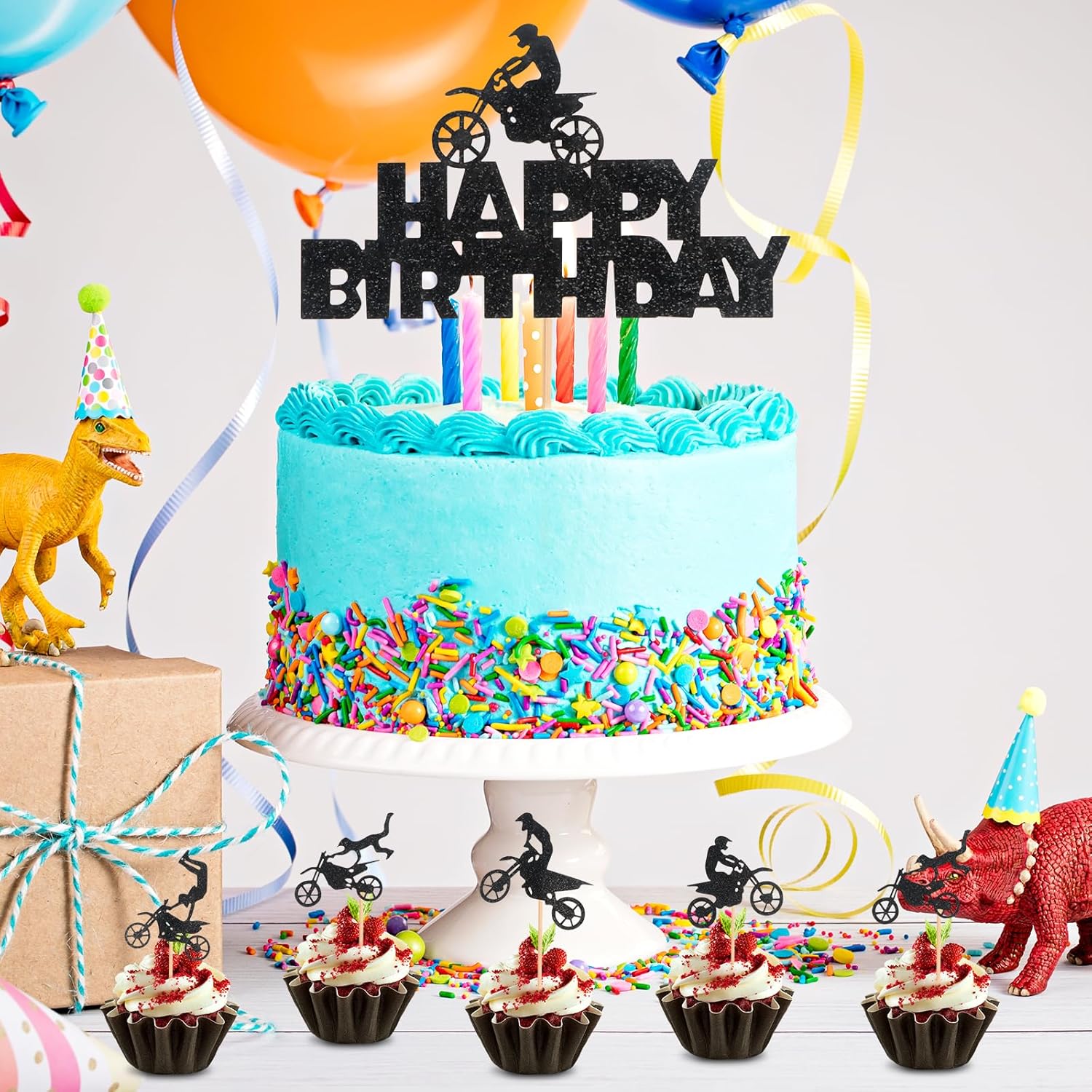 Kit decorazione torta moto: il kit include 1 biglietto grande di buon compleanno + 20 biglietti piccola auto, 4 per ogni stile, sono perfetti per torte di piccole e medie dimensioni, sufficienti per decorare la torta della festa come desideri, tutti gli amici a cui piacciono le moto saranno molto felici. Facile da usare: questo cake topper è molto facile da usare, devi solo aprire la confezione e decorarlo semplicemente sulla tua torta. Poiché colleghiamo in anticipo questo topper per torta motociclistico agli stuzzicadenti, risparmierai tempo e fatica. Effetto scintillante: ogni cake topper per moto è decorato con polveri glitterate, aderisce saldamente e non si sfalda, effetto scintillante alla luce - Rende ogni cake topper un vero e proprio eye-catcher! MATERIALI DI QUALITÀ: Questi toppers per torta sono realizzati in carta atossica e bastoncini simili a stuzzicadenti che sono durevoli e non si deformeranno anche se posizionati su ghiaccio bagnato o frutta. Non mettere in forno. Utilizzo versatile: adatto per feste a tema sportivo, feste di compleanno, feste a tema motociclistico. Per decorare torte, cupcake, gelati, piatti di frutta, formaggi e altri snack. Adatto a scuole, uffici, hotel, ristoranti e uso domestico.