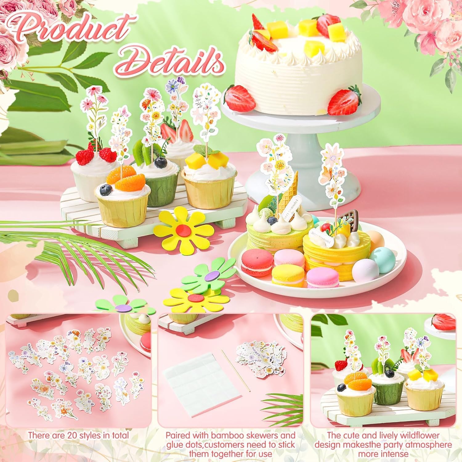 💐【Decorazioni per torte con fiori di campo】Il set comprende 60 pezzi di decorazioni per torte con fiori in 20 stili diversi, con design con stampa su un solo lato, colori brillanti e realistici e quantità sufficiente, puoi scegliere la combinazione a tuo piacimento. 💐【Atmosfera primaverile】Il design innovativo dei toppers per torta floreali, con 20 diversi motivi di fiori di campo, crea un'atmosfera primaverile e rende la festa più sognante e vivace, permettendoti di trascorrere del tempo di qualità con la tua famiglia e i tuoi amici. 💐【Materiale per uso alimentare】Il fiore della torta è realizzato in cartone e bambù di alta qualità, che sono sicuri e non tossici, non hanno odori e non sbiadiscono facilmente, garantendo la sicurezza del contatto con il cibo, quindi puoi usarlo con sicurezza. 💐【Applicabile a Molte Occasioni】I fiori della torta nuziale sono adatti per feste di compleanno, matrimoni, feste in giardino, riunioni di donne e altre occasioni. Puoi aggiungere decorazioni floreali uniche a torte e dessert per creare un'atmosfera romantica. 💐【Decorazione Creativa】Oltre ad essere utilizzati come decorazioni per torte, i toppers per cupcake possono essere utilizzati anche come decorazioni creative come quaderni e segnalibri. Porta divertimento e personalità nella tua vita quotidiana.