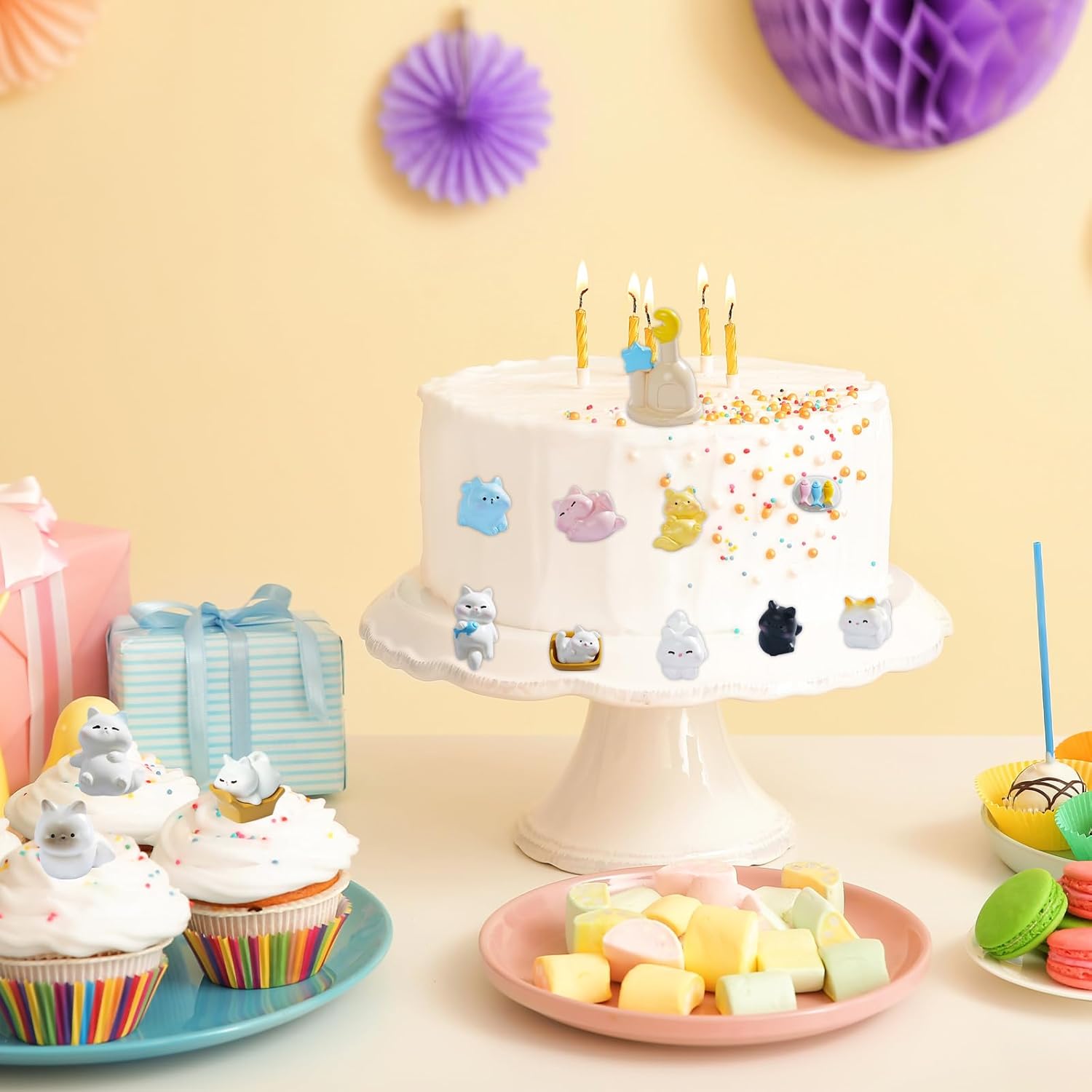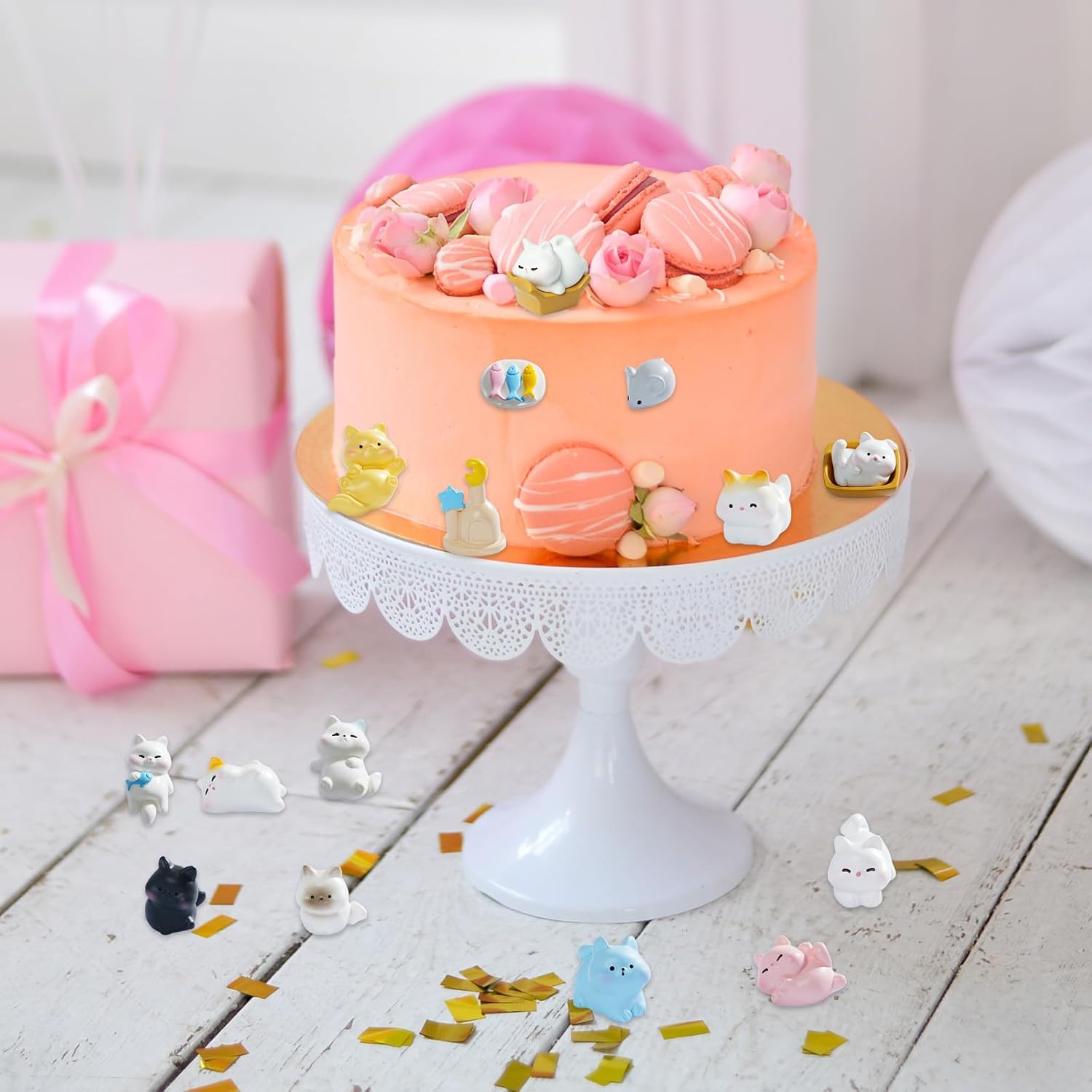 Mini topper per torta per gatti: il set di figurine per gatti include 12 mini gatti in resina in 12 pose giocose, oltre a 3 accessori (pesce, mouse, castello). Ogni statuetta per gatti vanta dettagli realistici: dormire, allungarsi o saltare, per incantevoli display in miniatura. Materiale in resina durevole e sicuro: realizzati in resina impermeabile di alta qualità, questi mini gatti sono resistenti allo sbiadimento, leggeri e sicuri per uso interno/esterno. Perfetto per la decorazione a lungo termine. Facili da usare: questi topper per torte sono molto comodi da usare. Puoi decorare la tua torta rapidamente e non hai bisogno di strumenti ausiliari. Dopo la pulizia, questi topper per torta possono essere decorati direttamente sulla torta Ampiamente usato: simpatico gattino ideale per giardino fatato in miniatura, casa, ufficio, piccolo vaso di fiori, decorazioni per torte o topper per cupcake per feste di compleanno. Bel regalo: questi giocattoli realistici e vari a forma di gatto sono ideali per collezionare e decorare librerie, scrivanie e stanze per bambini. Adatto per topper per cupcake, calza di peluche, bomboniere a tema gatto, decorazioni o ricompense, regalo perfetto per gli amanti dei gatti.