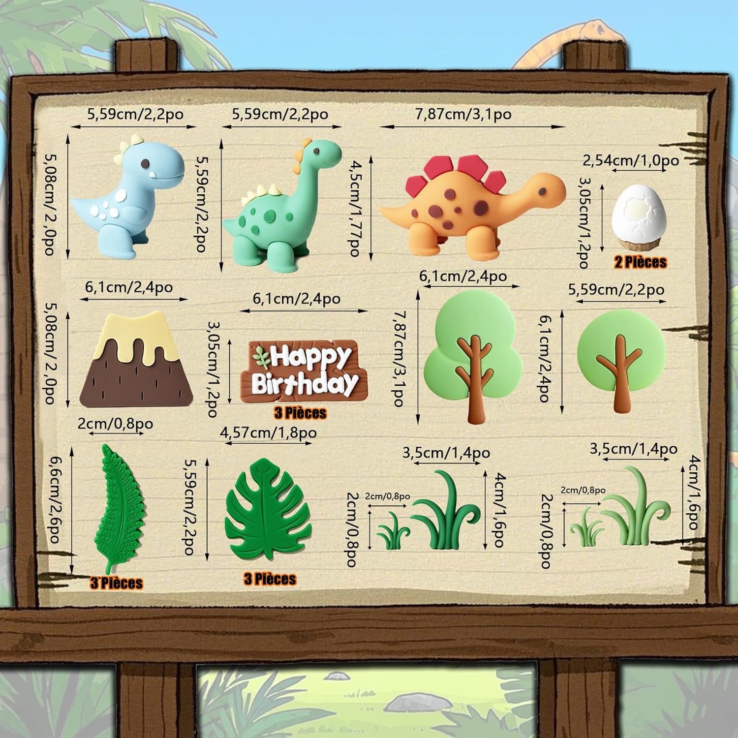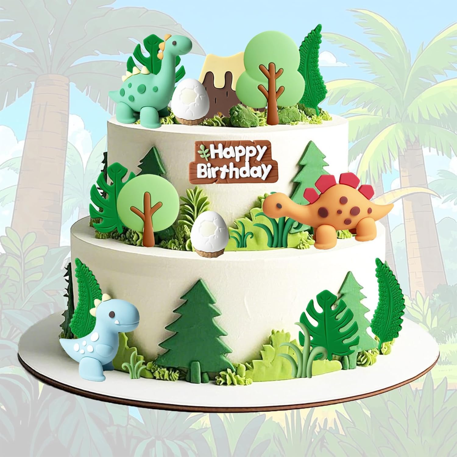 Contenuto: set di 21 pezzi sul tema dei dinosauri, 3 dinosauri, 2 uova di dinosauro, 1 vulcano, 6 foglie verdi, 4 erbe, 2 grandi alberi, 3 loghi per "buon compleanno". Metti in mostra la tua torta con il nostro topper per torta di compleanno. Sarai il padrone della torta di tuo figlio. Materiale: topper per torta di dinosauro in materiale di gomma; Hanno una certa tenacità e resistenza, che li rendono meno vulnerabili alla rottura o alla deformazione durante il trasporto e l'esposizione. Perfetto per: cupcakes, muffin, torte, decorazioni alimentari, decorazioni per feste, ideale per feste a tema dinosauri, baby shower e feste di compleanno. Perfetto per feste a tema dinosauri, molto carino, può facilmente decorare la torta di compleanno dei bambini. Suggerimenti: non commestibile, solo per decorazione, non utilizzare in forno o microonde.