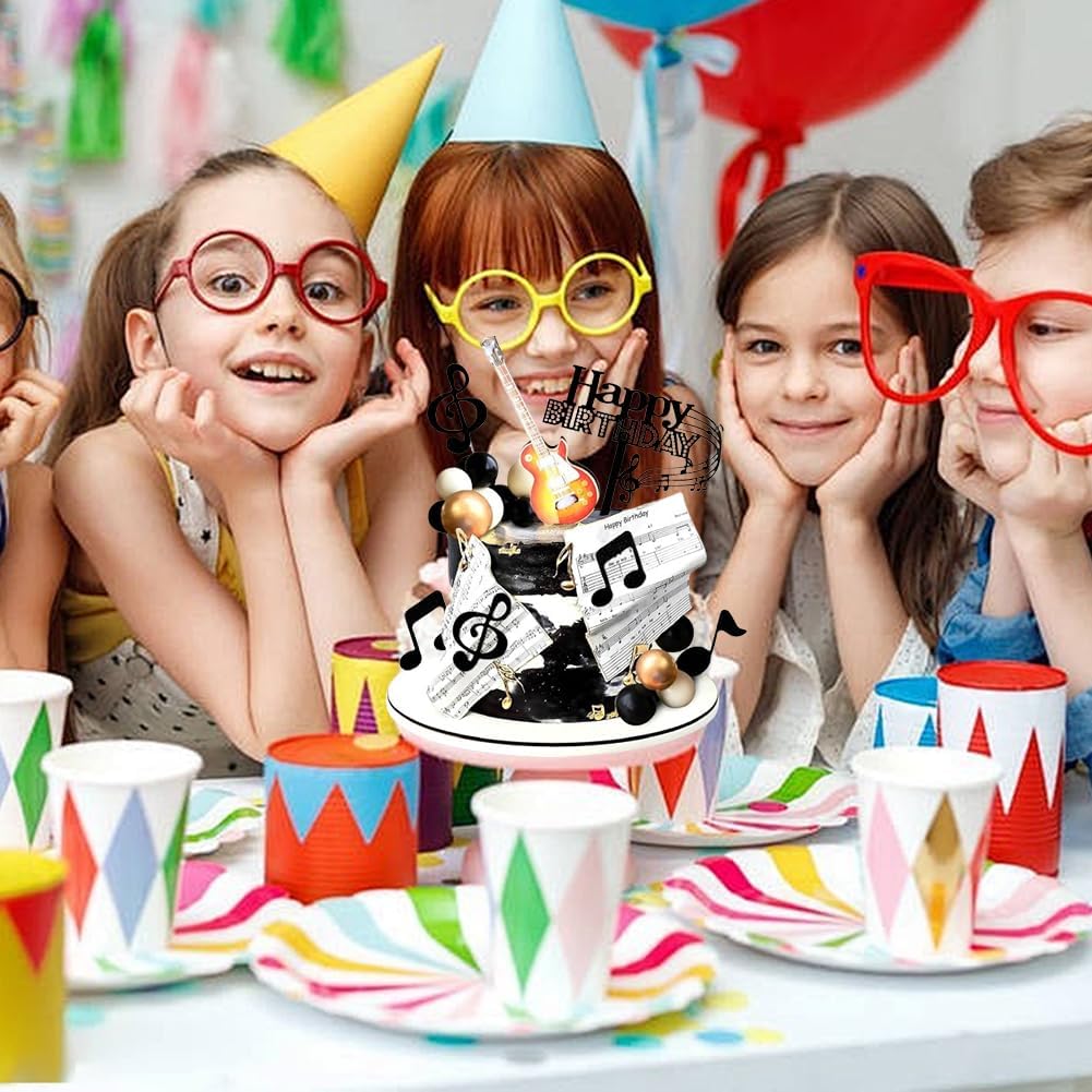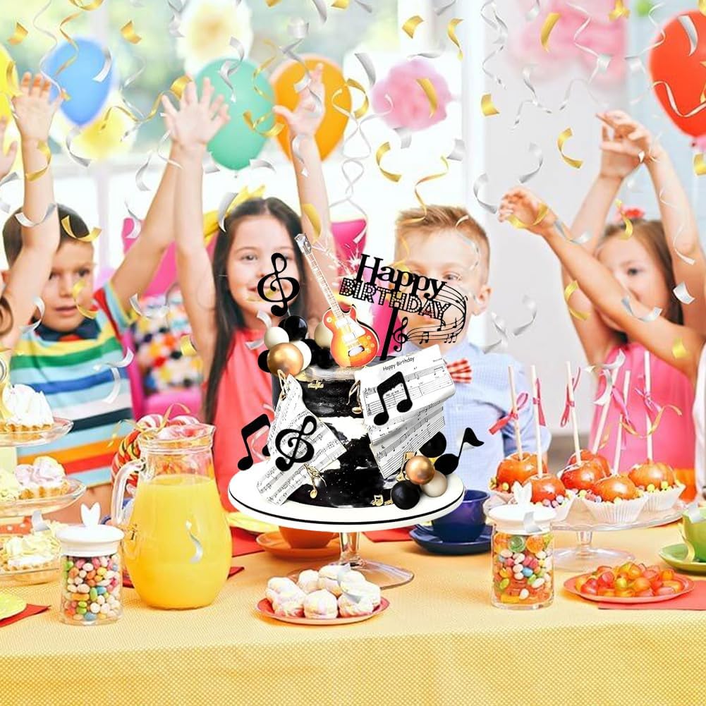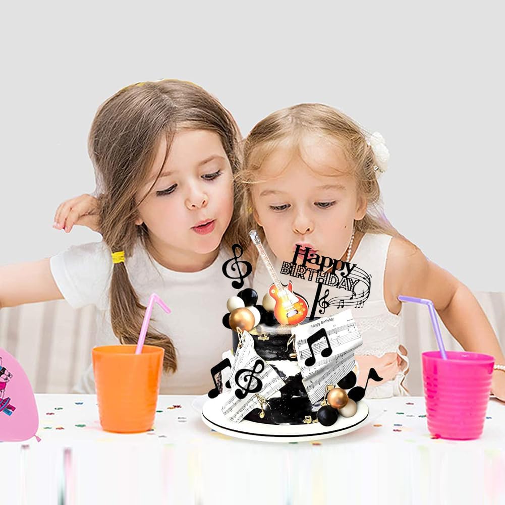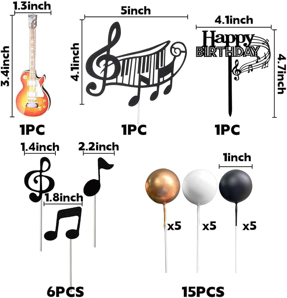 Topper per torta da 23 pezzi: la confezione include 2 toppers per torta con note grandi, 1 nota di buon compleanno, toppers per torta con 10 note, 5 palline bianche e 5 palline nere, creando una decorazione bella ed elegante per la tua festa. Qualità: questi toppers per torta con note musicali sono splendidamente progettati e molto realistici. Sono fatti di carta. Inodore, resistenti e facili da pulire, ti permetteranno di festeggiare un compleanno indimenticabile con i tuoi bambini e goderti questo momento toccante. Design unico: Questa decorazione per torte a forma di note musicali dal design unico ti regalerà momenti indimenticabili di piacere e convivialità con la famiglia e gli amici. Facile da usare: questi toppers per torta possono essere decorati direttamente sulla torta. Ideali per decorare la vostra tavola con dolci come torte, cupcakes, gelati, antipasti, muffin o altri deliziosi snack, si abbinano perfettamente ai cibi delle feste e stupiranno i vostri ospiti. Uso versatile: questi toppers per torta con note musicali sono perfetti per feste a tema musicale, feste a tema chitarra, feste a tema retrò, feste a tema rock, feste a tema concerto, feste a tema karaoke, ecc.