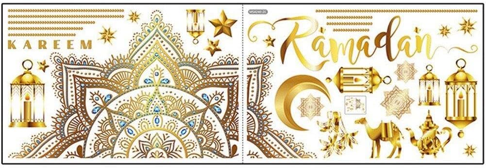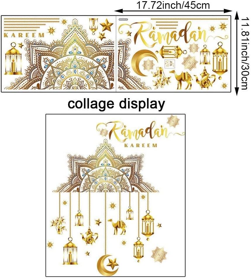 Facile da attaccare e staccare: questa decorazione per feste Ramadan Mubarak può essere incollata su superfici pulite e lisce, pareti, porte, finestre, armadi, vetro, specchi, piastrelle, ecc., si consiglia di pulire il muro prima di incollarlo. Questi adesivi Ramadan Kareem per la decorazione Eid Mubarak Ramadan presentano silhouette, stella, luna, lanterna della moschea islamica e così via che soddisferanno le tue esigenze decorative di Ramadan Kareem e porteranno una ricca atmosfera Eid a casa tua. Decorazione murale 3D Ramadan Ramadan Elementi religiosi musulmani islamici selezionati, parole Ramadan Kareem, stella lunare, per creare una calda atmosfera festosa, possono aggiungere splendore alla tua casa, così puoi goderti una meravigliosa vacanza. Materiale affidabile: questa decorazione Eid è realizzata in materiale PVC, resistente, affidabile, impermeabile, sicuro, non irritante, bello e generoso, offrendoti uno spazio straordinario ed elegante, adatto per decorare Eid, festività musulmane, compleanno, festival islamico, Eid altro. Decora il tuo spazio: questi adesivi murali islamici con la Luna possono aggiungere un accento bello ed elegante alla tua casa, inoltre, questi adesivi murali sono adatti per soggiorno, sala giochi per bambini, sala da pranzo, ecc.
