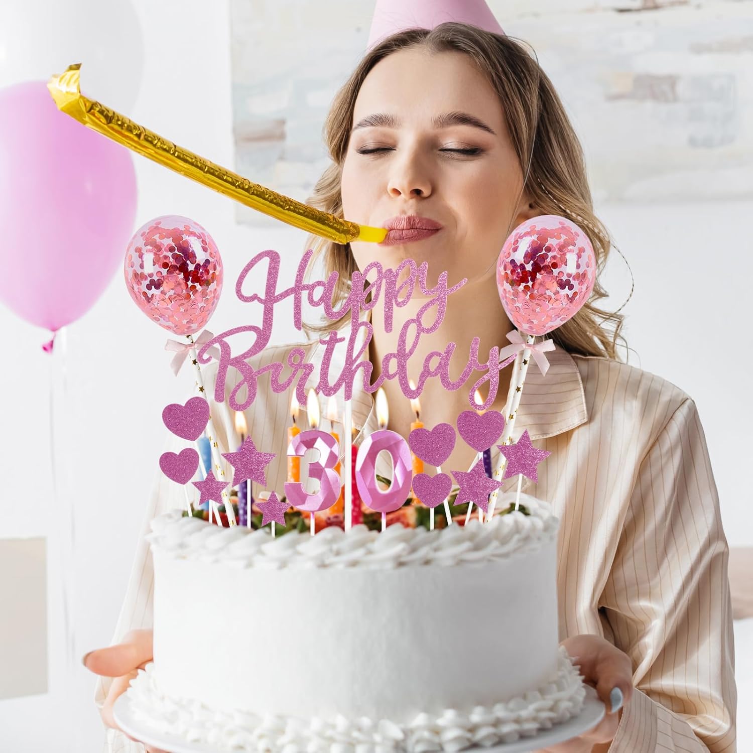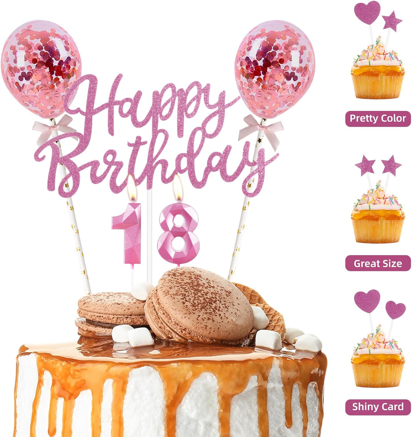 Le decorazioni rosa per torte di compleanno includono: riceverai 1 topper per torta rosa "Happy Birthday", 2 topper per palloncini con coriandoli, 5 decorazioni per torte a forma di stella, 5 decorazioni per torte a forma di cuore, 2 candele rosa numero 1. Ottimo topper per torte di compleanno. Stava benissimo sulla tua torta. È molto semplice e ha un bell'aspetto una volta assemblato. Informazioni sul set di decorazioni per feste di compleanno rosa: decorazioni per torte rosa, decorazioni per torta di buon compleanno rosa, design speciale con glitter rosa, candela di compleanno con numero rosa, aspetto delicato e senso visivo 3D, topper per palloncini con paillettes rosa. La prima cosa che attira l'attenzione è il bellissimo effetto brillante della parte superiore. Decorazioni per torte di compleanno per feste di qualsiasi età. Candele con numeri rosa, effetti visivi 3D: il nostro set di candele di compleanno ha un design 3D rosa, tutti i materiali di questo kit di decorazioni per torte di compleanno sono di grado alimentare, atossici, inodori, ecologici, durevoli, riutilizzabili, robusti e non cospargono il cibo. È realizzato in materiale robusto, facile da inserire nella torta e saldamente fissato in posizione. non si preoccupa che lui si ribaltasse o cada. è rimasto perfetto tutta la notte. Topper rosa per torta di buon compleanno con palloncino rosa: la confezione della decorazione per torta di compleanno viene fornita con un bastoncino di carta. Hai solo bisogno di attaccare il bastone di carta a Buon compleanno, topper per palloncini con paillettes, stelle, cuori e decorazioni per fan di carta, aggiungere candele di compleanno numeriche e quindi inserirle in qualsiasi torta, cupcake o dessert per fornire a te e ai tuoi ospiti una decorazione per torta a sorpresa. Quindi inseriscili in qualsiasi cupcake o dessert per fornire a te e ai tuoi ospiti una decorazione per torte a sorpresa. Candele rosa di buon compleanno: colori sorprendenti, tutti gli elementi in oro, il bel set di topper per torta è molto adatto per decorare torte, cupcake, candele scintillanti ideali per torta di compleanno a tema rosa, candele di buon compleanno, candele rosa per torte, candele con numero di compleanno per ragazze, ragazzi, donne e uomini.