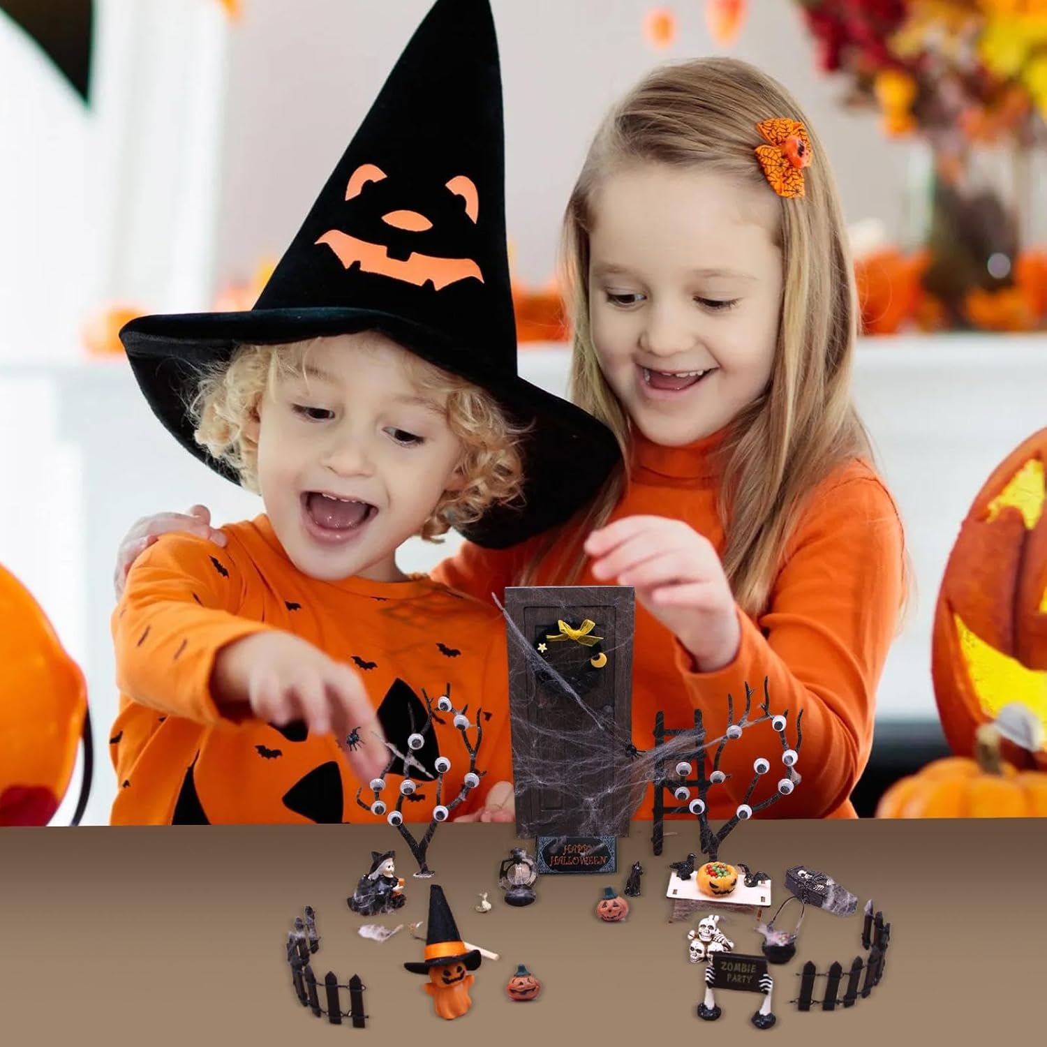 Halloween spettrale -: Crea un'atmosfera spettrale con figurine di teschi e fantasmi completate da decorazioni di zucca e offre opzioni di posizionamento flessibili per personalizzare senza sforzo il tuo display festivo in giardino Dimensioni facili da trasportare: Realizzate senza sforzo con spazi ridotti, queste figurine presentano un design a piega divisa che semplifica lo stoccaggio e ispira speciali composizioni decorative durante la stagione di Halloween Scelta attuale: Queste figurine di Halloween costituiscono una festa premurosa per i bambini e l'amore, ideali come regalo di Natale o ricordo delle vacanze con un set completo che include lo spirito Captures della stagione Uso duraturo: queste figurine sono realizzate in legno e resina, garantendo Ambito di applicazione: perfetto per la decorazione di piccoli giardini, accessori per case delle bambole, progetti artigianali, tavoli e paesaggi di acquari, valorizzando gli spazi creativi con un fascino spettrale