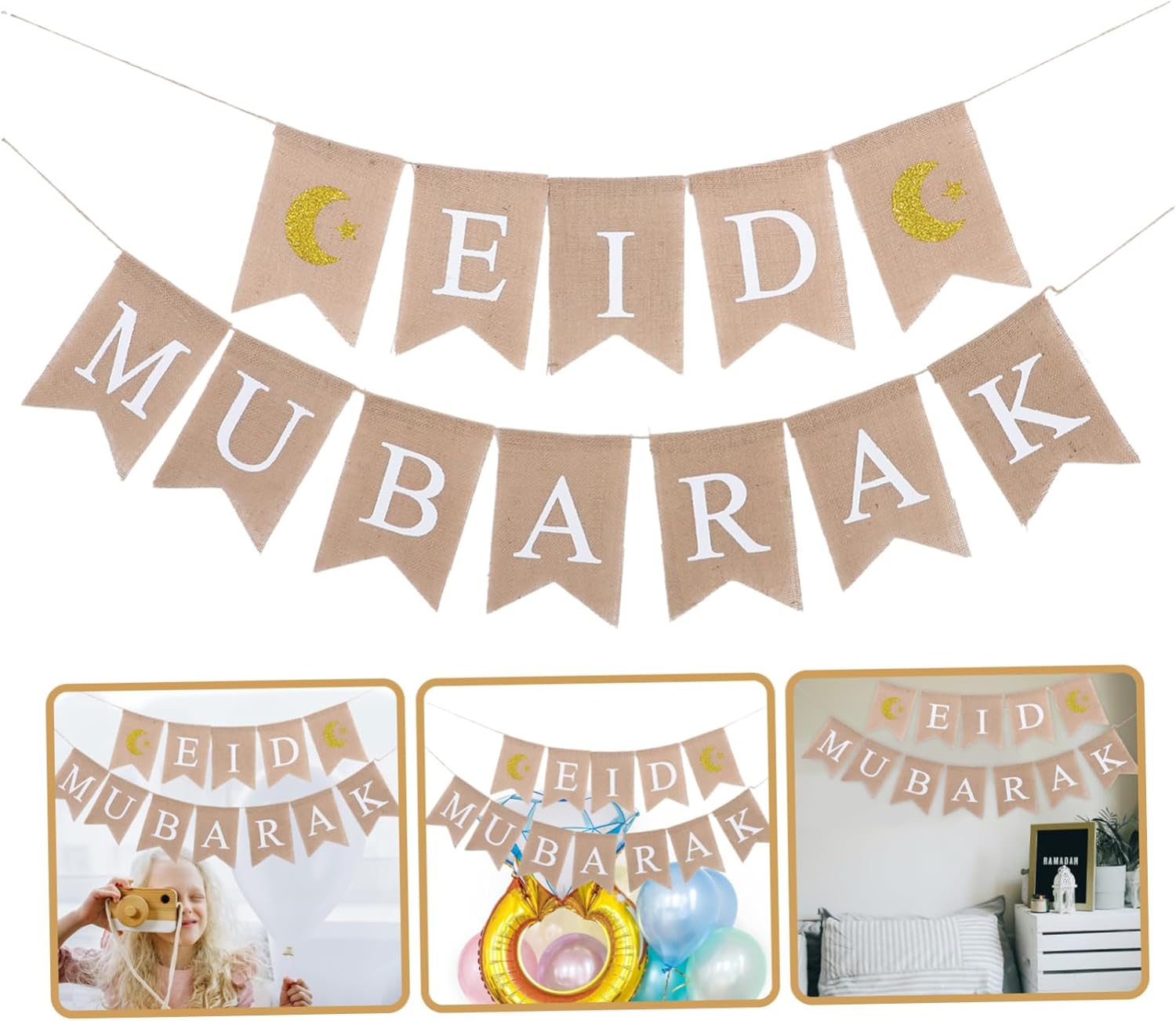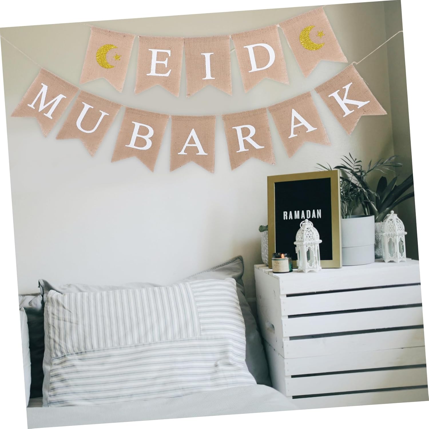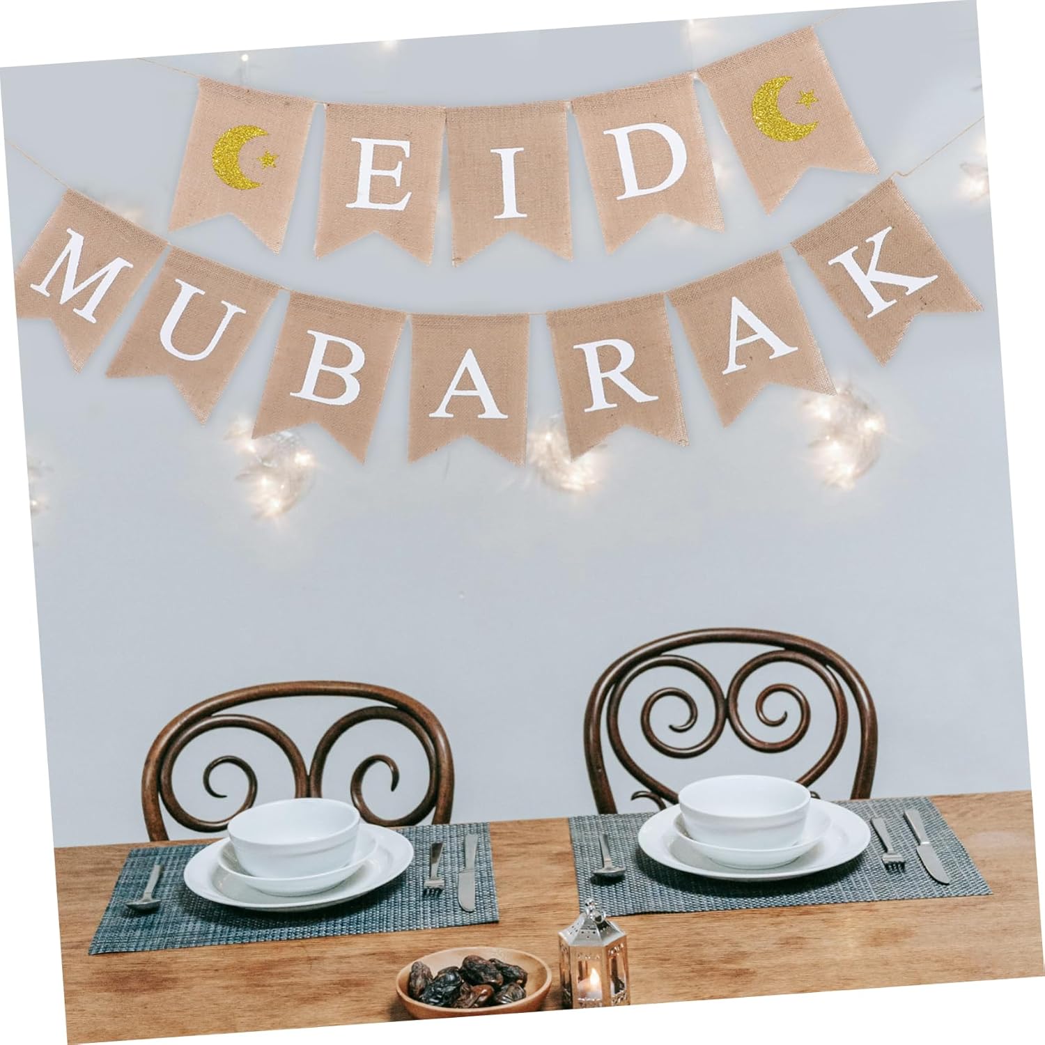 Eid Banner - 🙏🙏☪️☪️---Abbiamo messo la gioia dei dolci sentimenti in questo sontuoso striscione Ramadan Mubarak. Lo striscione in tela Ramadan Mubarak decorato con luna e stella rende la decorazione della tua festa più accattivante e speciale e attira più facilmente l'attenzione degli altri. Accessori Eid: questo striscione Eid Mubarak sarà un successo nella tua casa e creerà un'atmosfera festosa per la tua festa Mubarak. Pendente Eid Banner - Tema creativo Eid, piccolo e leggero, facile da trasportare e riporre, non occupa spazio. Accessori per festival musulmani: lo striscione per feste Ramadan utilizza colori e motivi rustici per aggiungere divertimento alla tua festa Eid. Appendere la bandiera del partito Ramadan: questo striscione Eid è pronto per decorare il tutto e creare semplicemente un'atmosfera di festa felice.