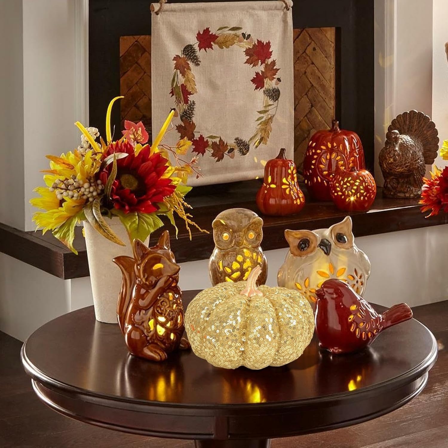 Accento Elegante: La finitura glitterata dona un tocco sofisticato come decorazione autunnale per la casa. Integra armoniosamente l'atmosfera del Ringraziamento, esaltando la tavola con un delicato scintillio senza sovraccaricare. Regalo Stagionale Pensato: Ideale per famiglia, bambini e amici, questa decorazione è un regalo indimenticabile per il Ringraziamento o un'idea regalo autunnale. Aggiunge un'estetica calda alle case, fungendo anche da speciale decorazione per Halloween che porta gioia durante le riunioni autunnali. Stagione Incantata: Valorizza le feste con eleganti zucche decorative che aggiungono un tocco vibrante all'arredamento autunnale, integrandosi perfettamente negli ambienti Decorazioni Autunno d'Effetto: Trasforma gli ambienti con zucche decorative in tessuto stretch e dettagli paillettes, realizzate con interno imbottito che dona volume armonioso e un aspetto sorprendentemente naturale per celebrare lo spirito 'autunno Composizioni creative:Trasforma ogni ambiente con idee innovative per sistemare le zucche decorative, elementi ideali per arredamento stagionale sia in interno che esterno che valorizzano gli allestimenti autunnali