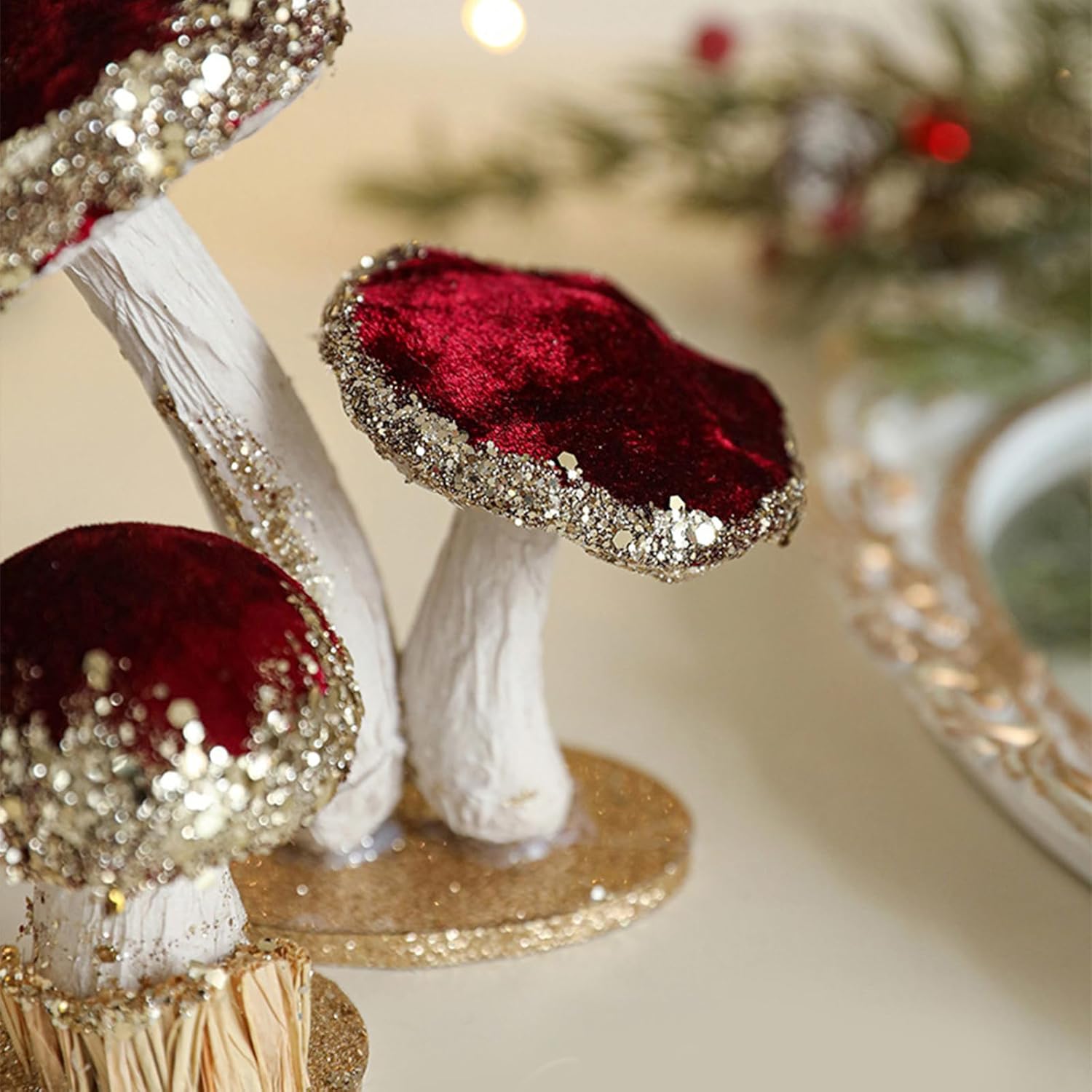Artigianato in schiuma di qualità per la durata, questo ornamento figura decorato con paillettes scintillanti per garantire Trasforma la tua stanza in uno spazio autunnale con questa squisita decorazione, un grande mix di elegante su un cappotto, una scrivania o un negozio, questa figura scintillante ha messo uno stato d'animo solenne per occasioni come Natale e Ringraziamento Questo ornamento decorativo è una grande aggiunta per chi ama gli ornamenti stagionali o per ufficio, ideale per gli appassionati di vacanza e collezionisti Aumenta i tuoi decori del festival con la nostra figura scintillante o fungina con paillettes, un centro scintillante che cattura le essenze della vacanza con le sue paillettes luccicanti e design in velluto