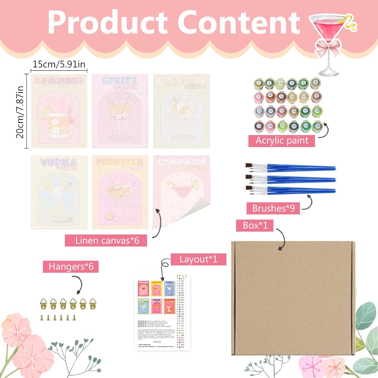 Libera la tua ispirazione artistica con un'esperienza immersiva di pittura di cocktail: Kit di pittura con i numeri per cocktail presenta sei temi classici di cocktail, con la tela divisa con precisione da numeri. Non è richiesta alcuna esperienza artistica; colora in base ai numeri, scopri la gioia della creazione artistica immersiva, trasformandoti all'istante in un barista e pittore a casa, dando vita all'atmosfera del tuo bar Materiali di alta qualità per dipingere senza sforzo: Dipingere con i numeri utilizza tele di alta qualità con una texture fine, una copertura elevata e colori intensi. I pennelli morbidi e flessibili semplificano la definizione dei dettagli, garantendo sicurezza, tutela dell'ambiente e un utilizzo senza preoccupazioni, rendendo il processo di pittura fluido e senza sforzo, permettendoti di creare capolavori senza sforzo Molti temi + molteplici modalità di gioco: Dipingere con i numeri adulti offre una varietà di modalità di gioco, consentendoti di passare liberamente da un tema all'altro. I tuoi dipinti finiti possono essere incorniciati per creare una serie di elementi decorativi per la tua cocktail wall art, oppure possono essere smontati e utilizzati come accessori regalo fatti a mano. Scatena la tua creatività ed esplora nuove possibilità Regalo perfetto: Paint by numbers è uno strumento antistress per le vite frenetiche. Dopo il lavoro o nei fine settimana, colorare con i numeri ti permette di sciogliere lo stress con i colori per un'esperienza rilassante e distensiva. Che tu sia un appassionato di cocktail o qualcuno che desidera provare un nuovo hobby, questo regalo ti delizierà sicuramente e trasmetterà una speciale sensazione di cura Usi multifunzionali: I design unici e raffinati di paint by numbers, ispirati alla cultura dei cocktail, sono un elemento decorativo che aggiunge stile al tuo soggiorno o al tuo bar, illumina il tuo studio o la tua camera da letto e funge anche da regalo creativo per amici e familiari, trasmettendo lo spirito romantico di preparare un cocktail artistico speciale. Questo permette alla tua opera d'arte di trascendere la semplice pittura