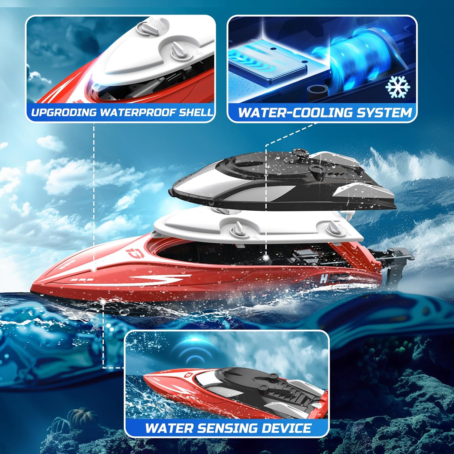 Barca RC ad alta velocità: DEERC H120 RC barca per adulti e bambini La barca RC DEERC H120 si blocca sull'acqua fino a 32 km/h (20 mph). Questa barca ad alta velocità è dotata di un telecomando a 4 canali da 2,4 GHz con una portata di 150 metri. Funzione antiribaltamento: la barca telecomandata DEERC è facile da usare. La costruzione auto-raddrizzante riporta la barca nella posizione corretta in caso di ribaltamento. Il doppio portello e la funzione di ripristino dell'inclinazione lo rendono la scelta ideale per gli appassionati di RC di qualsiasi livello. Funzione di allarme a bassa corrente: in caso di batteria scarica, un segnale acustico del telecomando ti avvisa di recuperare immediatamente la barca per evitare una perdita di controllo. Barca RC ricaricabile: la barca RC ad alta velocità DEERC contiene: telecomando, 1 batteria, cacciavite, controdado, chiave inglese, elica, telaio di supporto, lubrificante, caricatore USB e una testa di protezione contro le collisioni. Regalo perfetto per bambini e adulti: questa barca RC ad alta velocità è una delle barche radiocomandate più stabili e veloci per acqua dolce, ideale per bambini dai 14 anni e adulti. Non adatto per acqua salata.