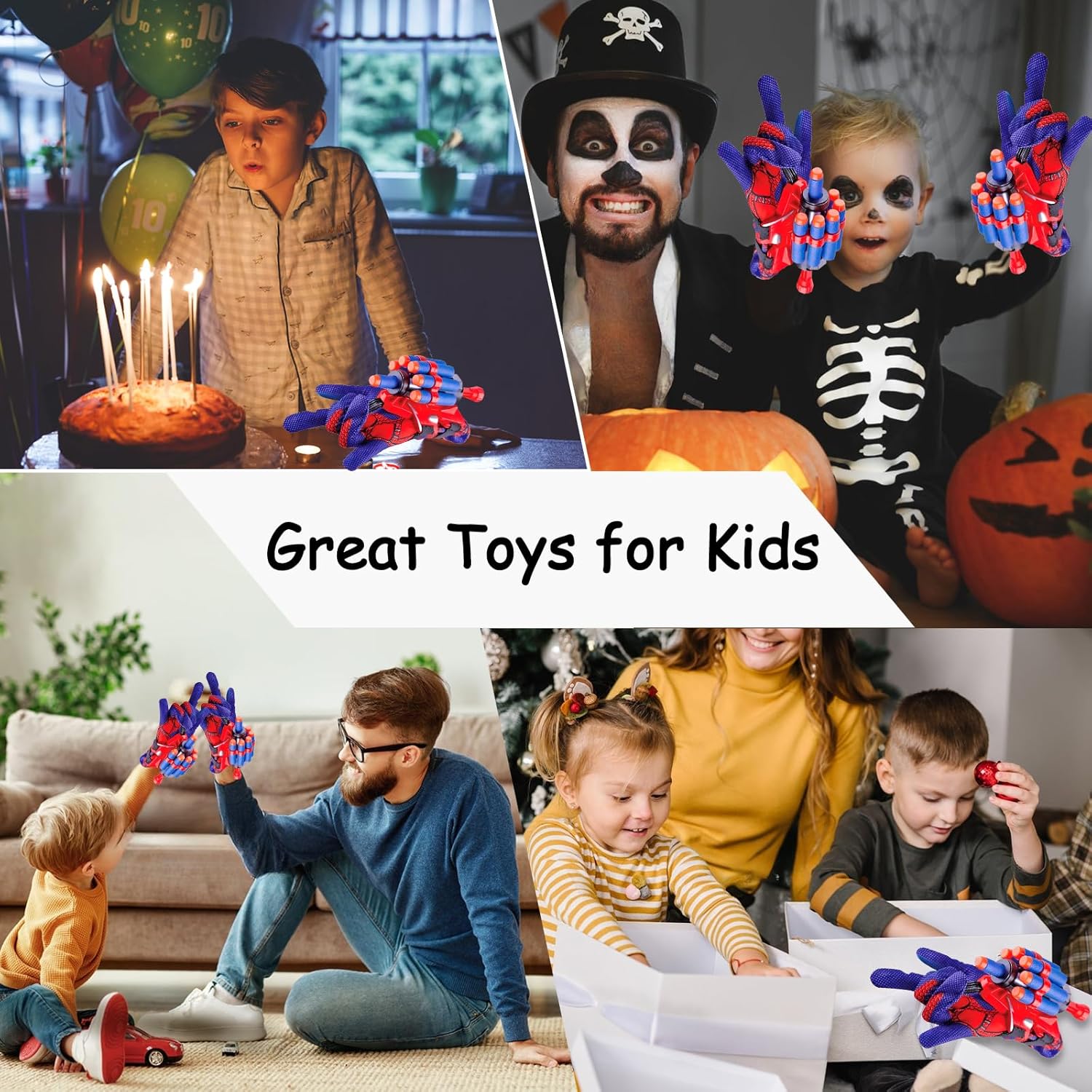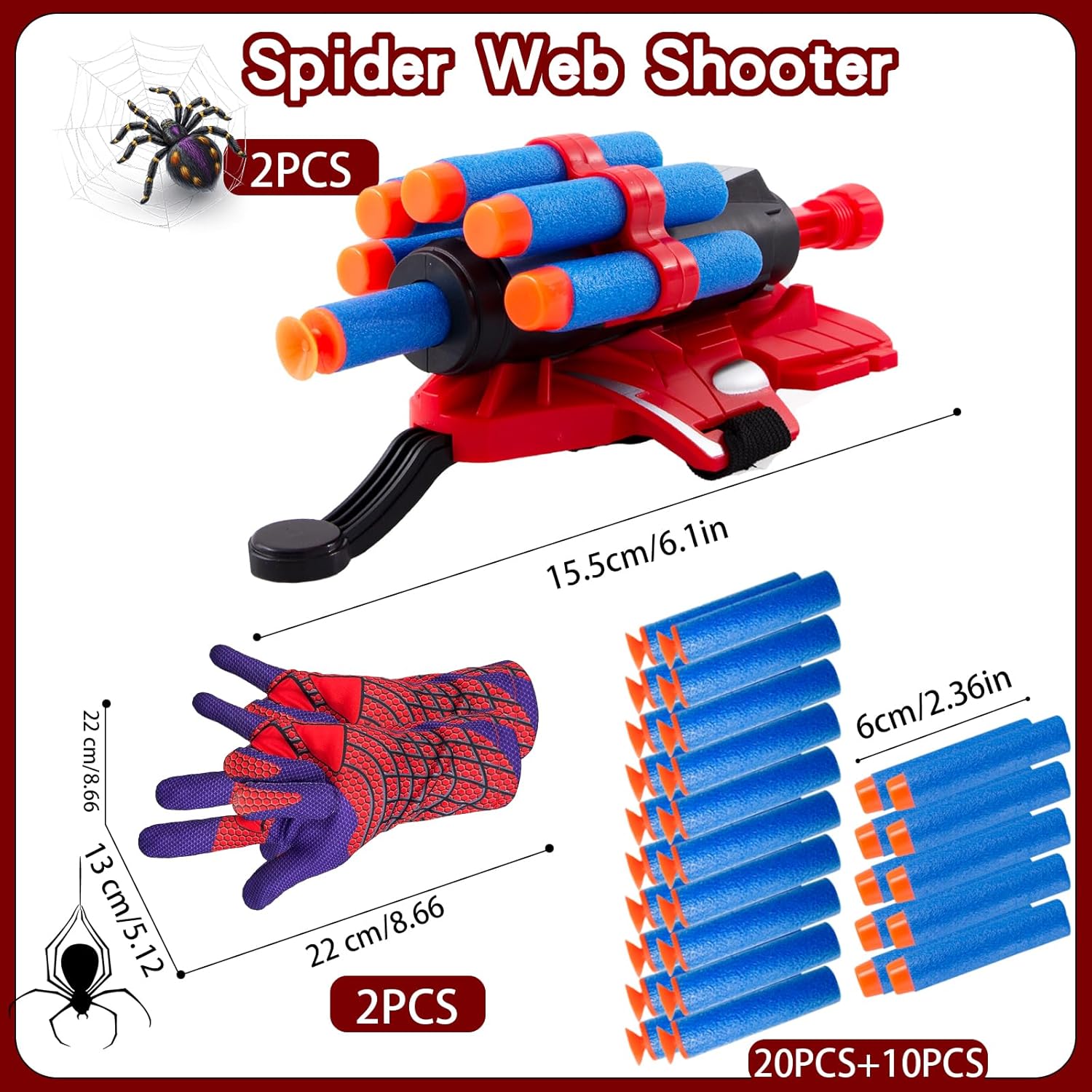 🎯【Realizza il tuo sogno】Ogni bambino sogna di essere un eroe! Indossa i Guanti Lancia Ragno e lascia che tuo figlio appaia tra la folla come un vero eroe e salvi il mondo! I bambini esulteranno e urleranno per questo fantastico sparatutto in ragnatela, può aumentare l'immaginazione e la creatività di tuo figlio, perfetto da indossare per interpretare l'eroe nel film, i bambini possono sviluppare la loro visione del mondo e la loro missione giocando a giochi di eroi. 🎯【Set lanciaragnatele】Il set spararagnatele include guanti di ragno*2, spararagnatele*2, proiettili di spugna rotondi*10 e proiettili di spugna con ventose*20. Fantastico lanciatore di ragnatele per bambini, attirerà saldamente l'attenzione dei bambini e aiuterà i bambini a stare lontani dai dispositivi elettronici e ad essere maggiormente coinvolti nelle attività all'aperto. È favorevole a migliorare l'interazione con la famiglia e gli amici, in modo che i bambini possano avere un'infanzia più ricca! 🎯 【Materiale di qualità】 I guanti Spider per bambini sono realizzati in plastica ABS e materiale in lattice di alta qualità, sicuri e non tossici, riutilizzabili e rispettosi dell'ambiente, sicuri da usare per i bambini. È di medie dimensioni e facile da trasportare, adatto per uso interno ed esterno. 🎯【Progettato per i bambini】La dimensione del giocattolo lancia-reti di ragno è di circa 22*13 cm/8,66*5,12 pollici, perfetta per le mani dei bambini piccoli. C'è una ventosa morbida sulla parte superiore del dardo, può essere aspirata sul pavimento o sul vetro, sicura e innocua per i bambini. Il lanciatore di ragnatele è progettato per i bambini, sicuro e facile da usare, è il set di giocattoli da polso perfetto per bambini. 🎯 【Regalo perfetto】 Il set di guanti lancia ragni è un regalo perfetto per ragazzi e ragazze. Il divertente giocattolo da polso spara ragnatela è perfetto come regalo per compleanni, Natale, festa dei bambini, feste a tema, feste cinematografiche, carnevali, spettacoli teatrali e altri eventi. Ogni bambino sarà sorpreso ed entusiasta di ottenerlo, creando un fantastico mondo infantile per i bambini!