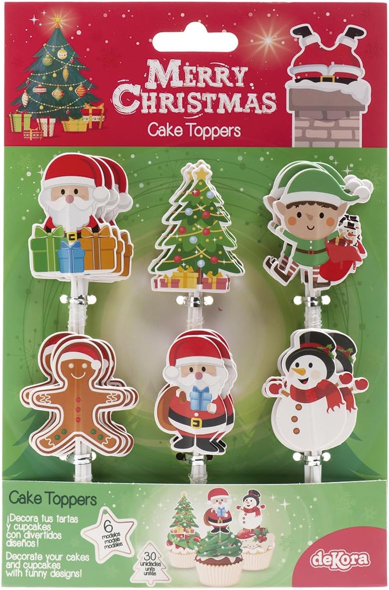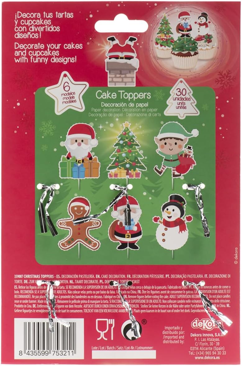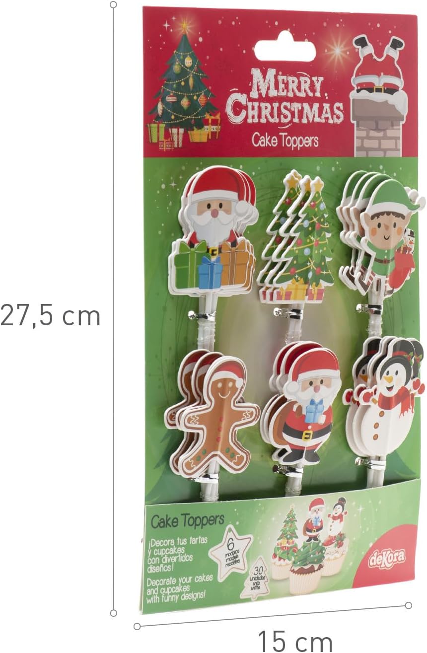 Confezione natalizia con 30 topper: include 30 decorazioni natalizie con disegni divertenti per decorare facilmente torte, biscotti, biscotti o cupcakes durante le feste. 6 diversi modelli ed esclusivi: disegni unici di Dekora con Babbo Natale, elfo, pupazzo di zenzero, albero di Natale e pupazzo di neve, per dare varietà e gioia ai tuoi dessert. Qualità e sicurezza alimentare: ogni topper è realizzato in carta rigida stampata di alta qualità, con spiedino in plastica per alimenti per il contatto sicuro e pratico da usare. Dimensioni ideali per dessert: ogni topper misura circa Altezza totale 11 cm, perfetto per cupcake, muffin o come topper principale per torte e dessert natalizi. Marchio DEKORA – ESCLUSIVO ED ORIGINALE: Prodotto ufficiale Dekora, specialista in pasticceria creativa, con design esclusivi per far brillare le tue celebrazioni con un tocco professionale.