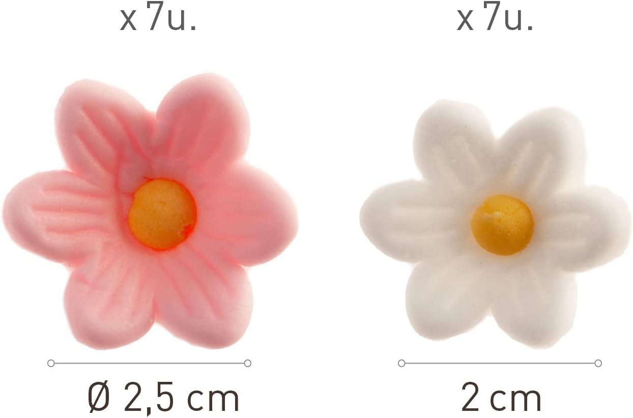 Decorazioni per torte con margherite - Fiori bianchi e rosa di alta qualità adatti per decorare torte di compleanno, battesimo o matrimonio Statuine di zucchero per torte - Decora tutti i tipi di torte, muffin o crostate, fatte in casa o acquistate, per dare loro un tocco floreale e personale che tutti adoreranno Decorazione facile da usare - Per principianti e professionisti nella pasticceria, con un risultato elegante e bello in pochissimo tempo Decorazione commestibile - Decorazioni boccioli di torta commestibili con bella forma di fiore 100% commestibile, quindi non devi preoccuparti di rimuoverli dalla torta Le figure di zucchero dal gusto neutro si abbinano perfettamente a torte al cioccolato, cheesecake, torte alle carote, pan di spagna o cupcakes senza alterarne il gusto