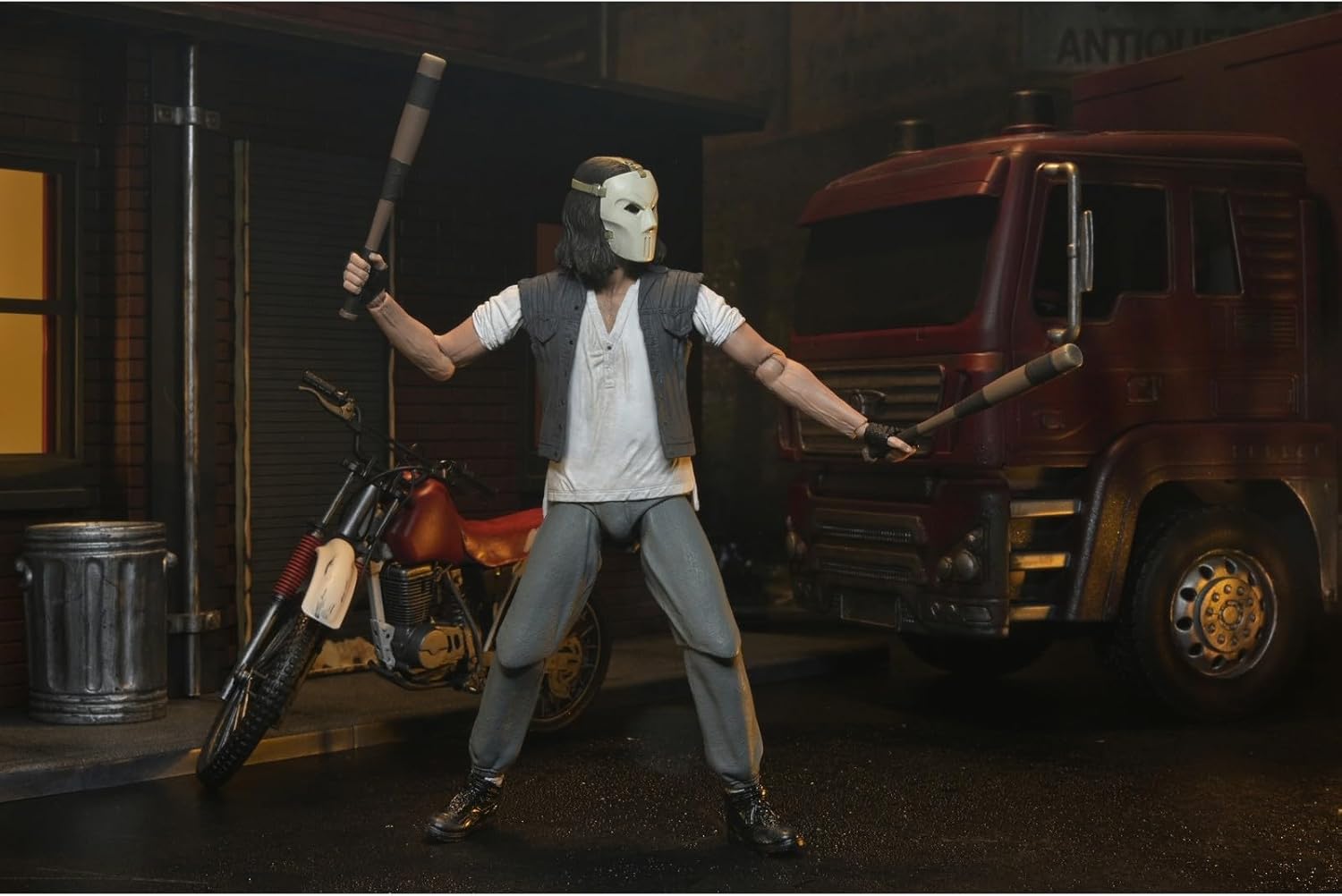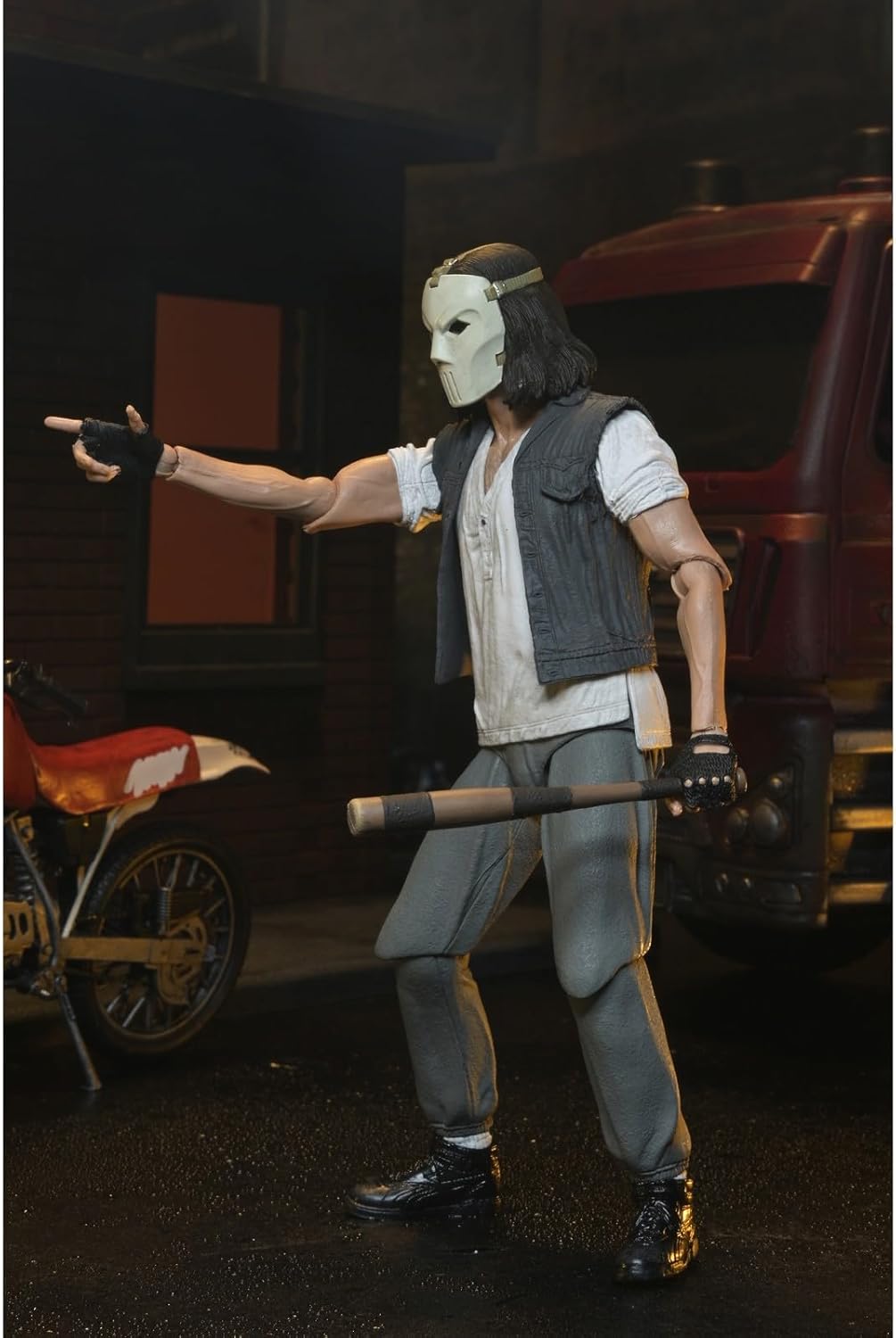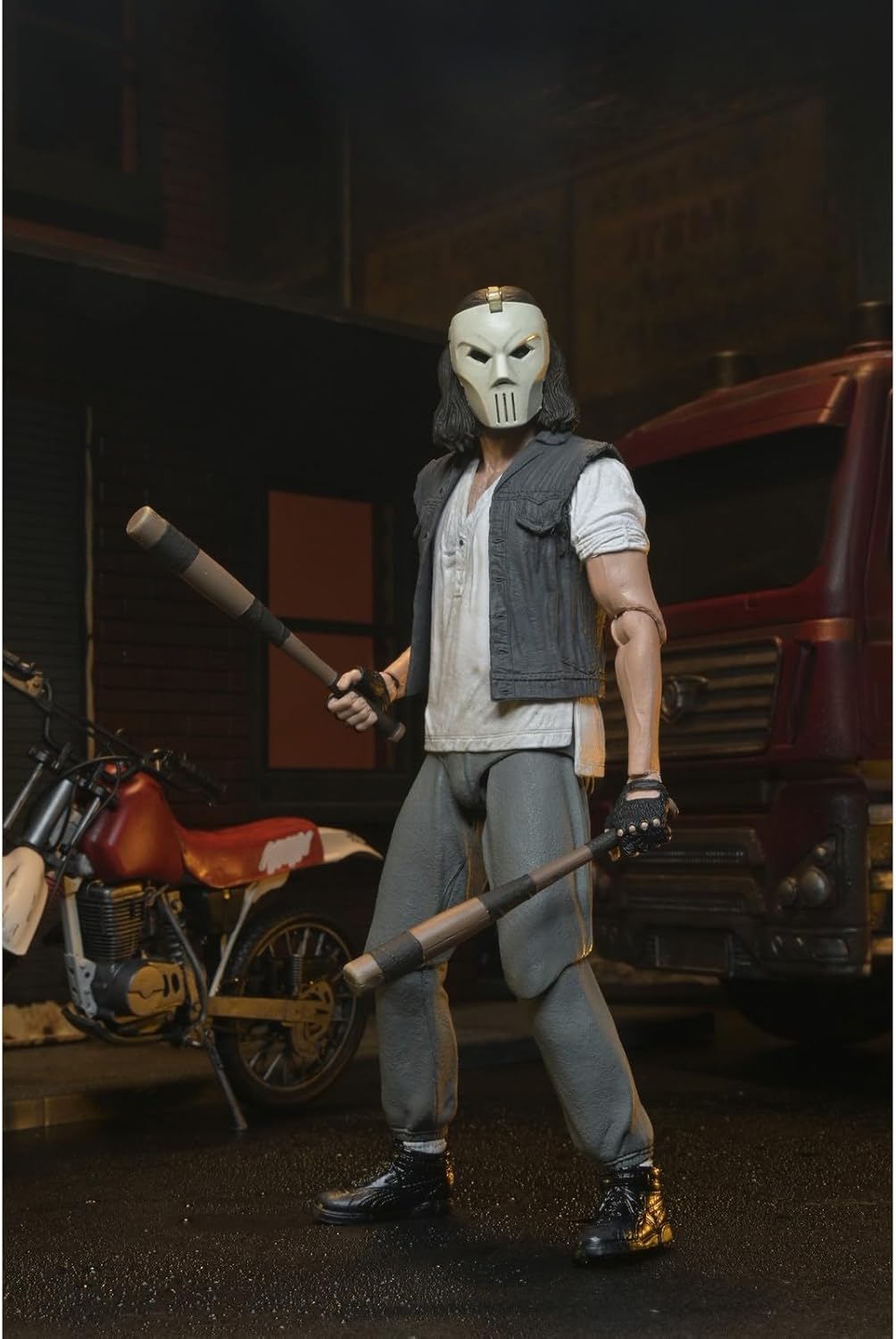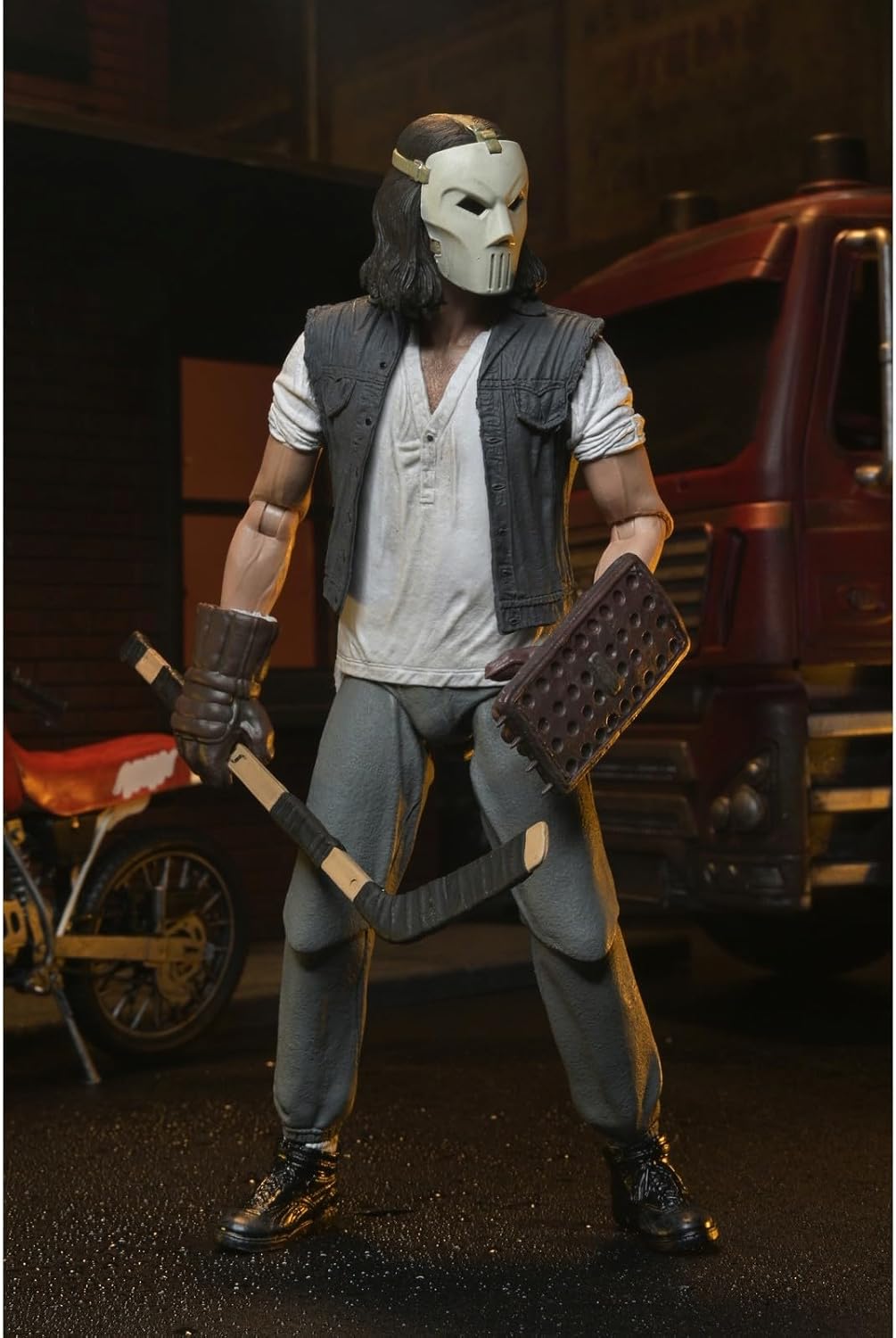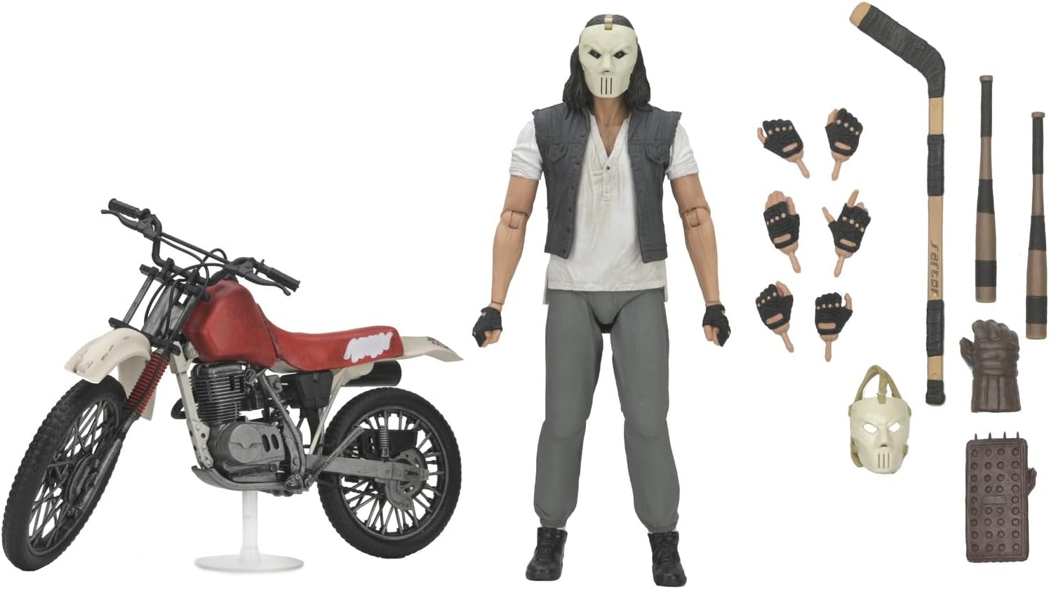 Neca presenta, all'interno della collezione Scale Action Figure, la figura Deluxe di Casey Jones. Veicolo incluso: viene fornito completo di un accessorio per veicoli Dirt Bike per migliorare la visualizzazione e le possibilità di gioco Articolazione: più punti di articolazione consentono di posare dinamiche e opzioni di visualizzazione per ricreare scene iconiche Accessori: dispone di accessori specifici per personaggi e parti intercambiabili per opzioni di visualizzazione versatili Pronto da esporre: complemento perfetto per qualsiasi collezione TMNT, con scatola di imballaggio con finestra che mostra figura e accessori