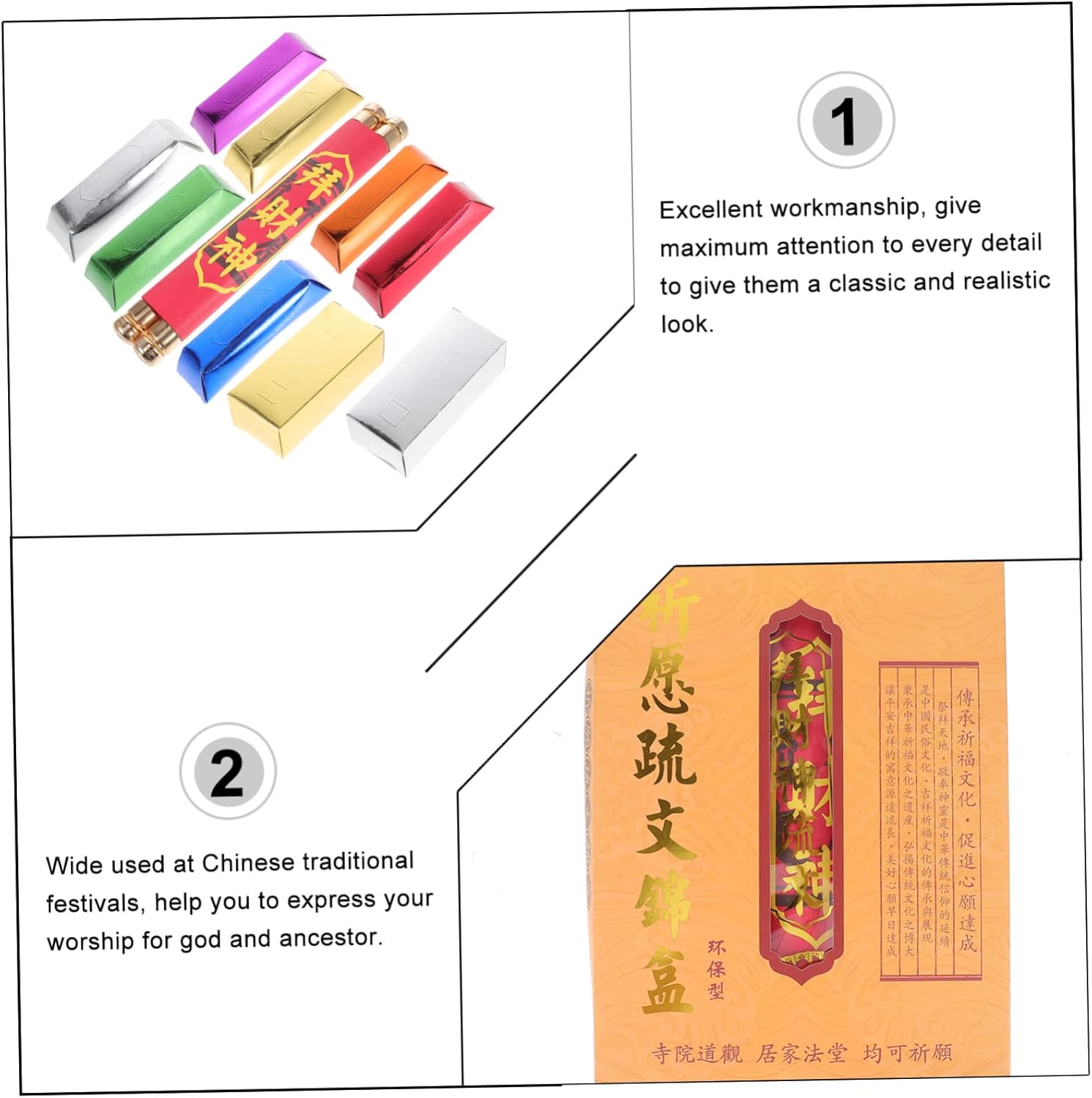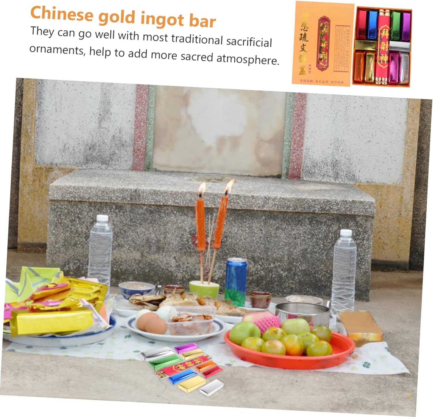 Cartamoneta sacrificale: comunemente usata nelle feste tradizionali cinesi, ti aiuta a esprimere la tua riverenza per gli antenati, la moneta ancestrale cinese. Bruciare denaro ancestrale: queste offerte sono progettate in conformità con la cultura tradizionale cinese e soddisfano le tue esigenze sacrificali. Lingotti combustibili – Sebbene siano semplici nel design, sono molto pratici da usare, le banconote di Ancestor. Offerte in fiamme - Ottima fattura, prestare attenzione ad ogni dettaglio per dare loro un aspetto classico e realistico, cinese. Sacrifica denaro: porta fortuna con queste carte bruciate per i tuoi antenati o con l'oro come offerta.