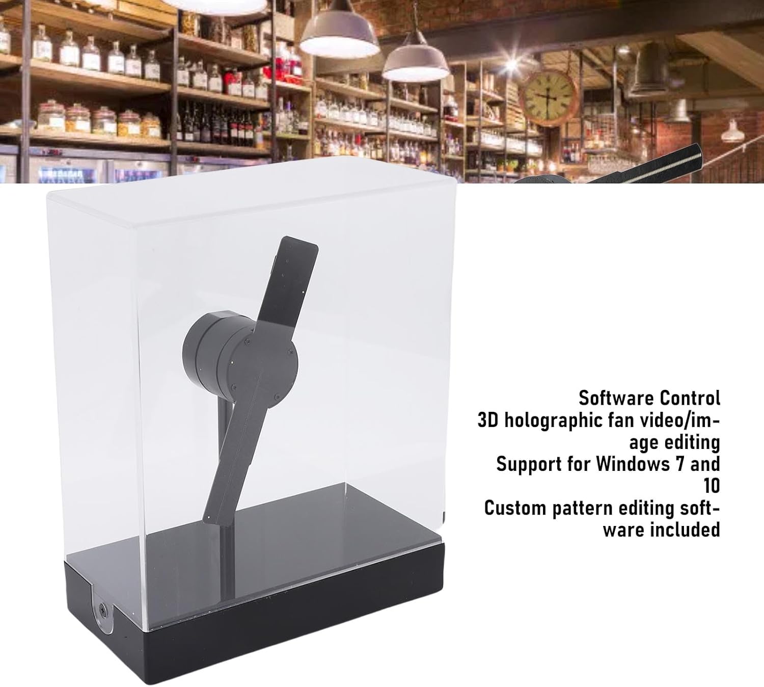 Software intuitivo: il ventilatore olografico 3D include il supporto del software di editing di video e immagini personalizzato per Wins 7 e supporto per Wins 10, rendendo facile caricare i progetti tramite la scheda di archiviazione inclusa. Alta definizione: operando a 2300 giri/min/min, questo proiettore olografico offre una risoluzione di 298x298 pixel, fornendo immagini e video chiari anche in illuminazione ambientale brillante. Effetti 3D: sperimentare immagini leggere che galleggiano a mezz'aria, creando un display incredibilmente accattivante per i tuoi prodotti o eventi, adatto a una varietà di ambientazioni come centri commerciali, ristoranti e altro ancora. Applicazioni versatili: con 149 LED e compatibilità con i formati MP4, AVI e JPG, questo dispositivo è ideale per display pubblicitari in centri commerciali, scuole, ospedali e eventi. Ampia compatibilità: goditi molteplici opzioni di controllo con il proiettore di ologramma 3D, tra cui WiFi, telecomando, controllo del PC e controllo delle app mobili, supporto per le vittorie, supporto per Android e supporto per dispositivi iOS.