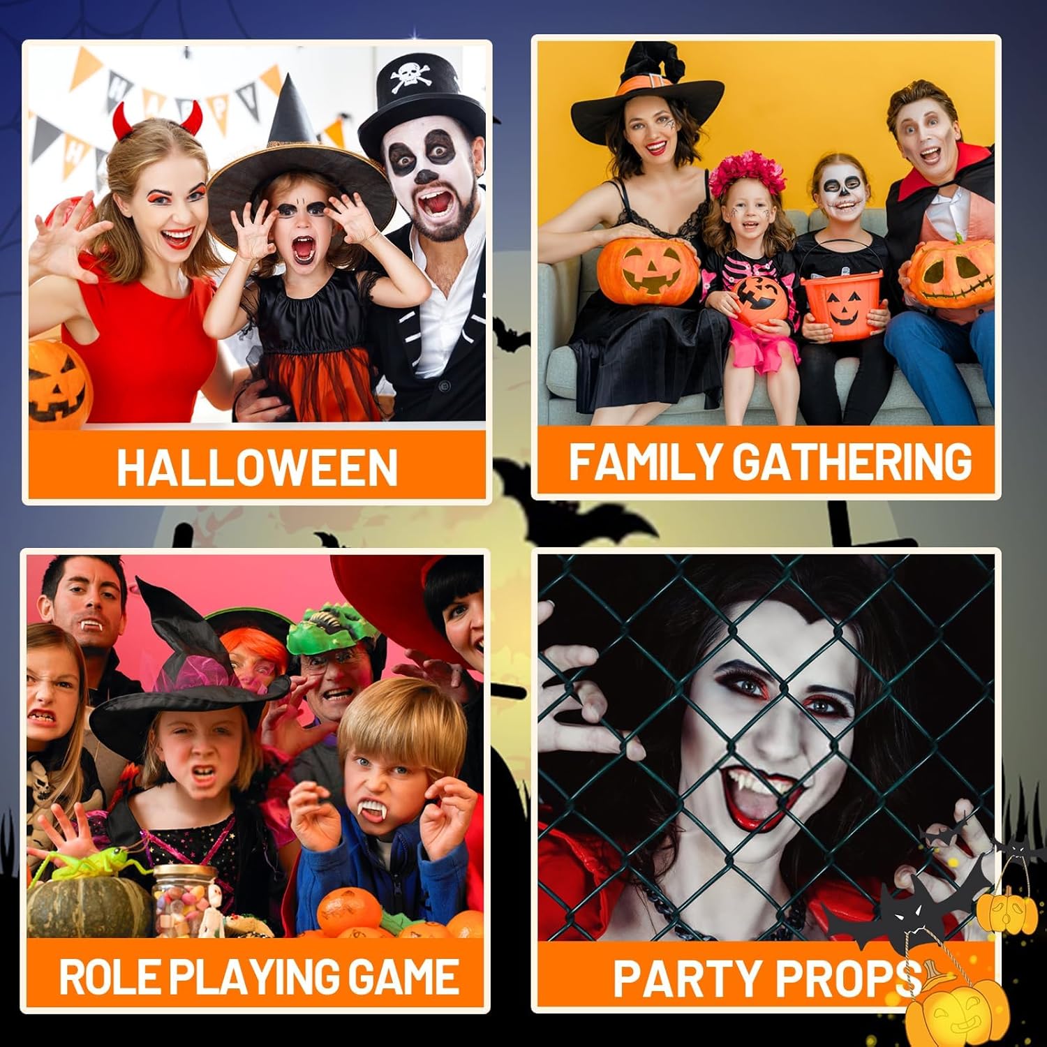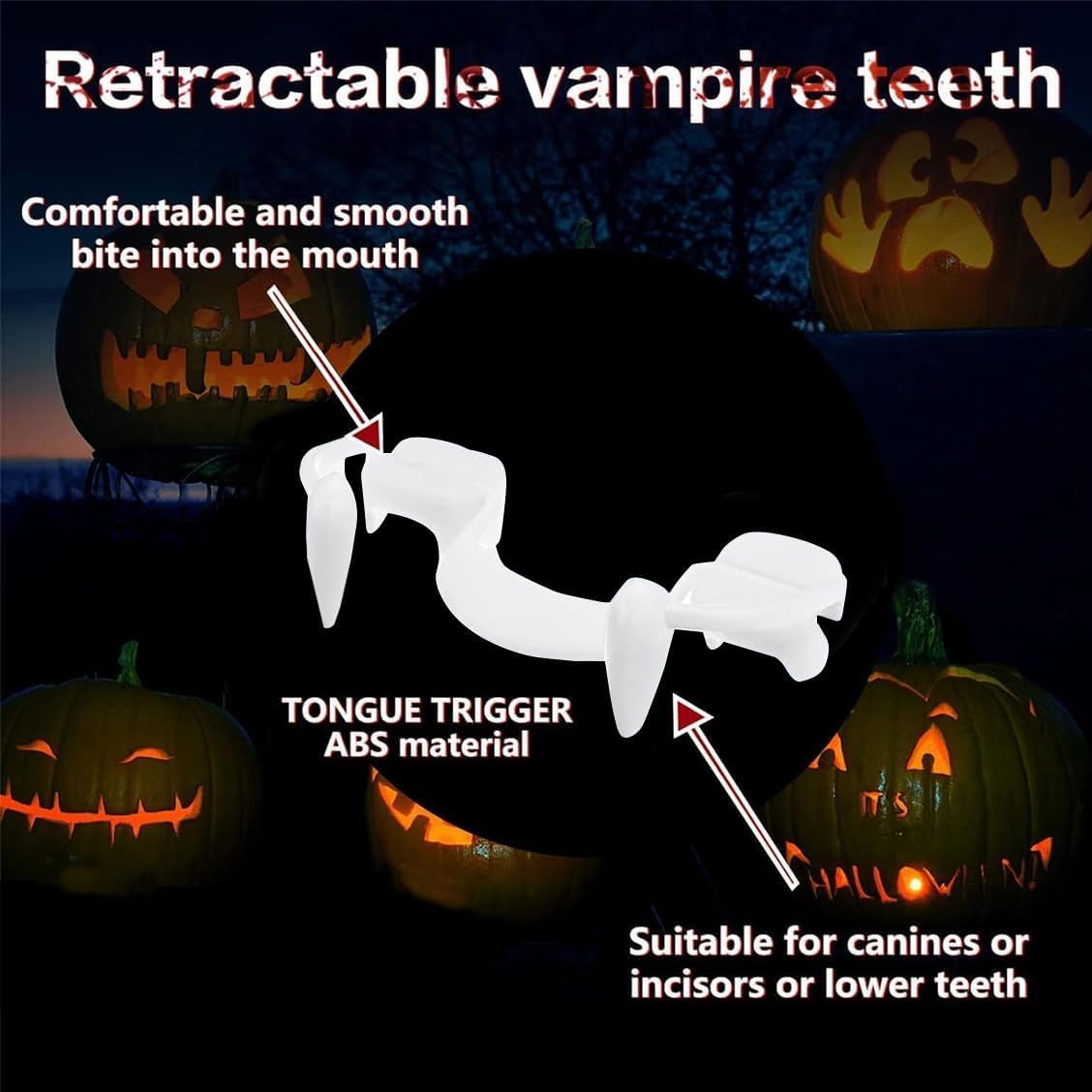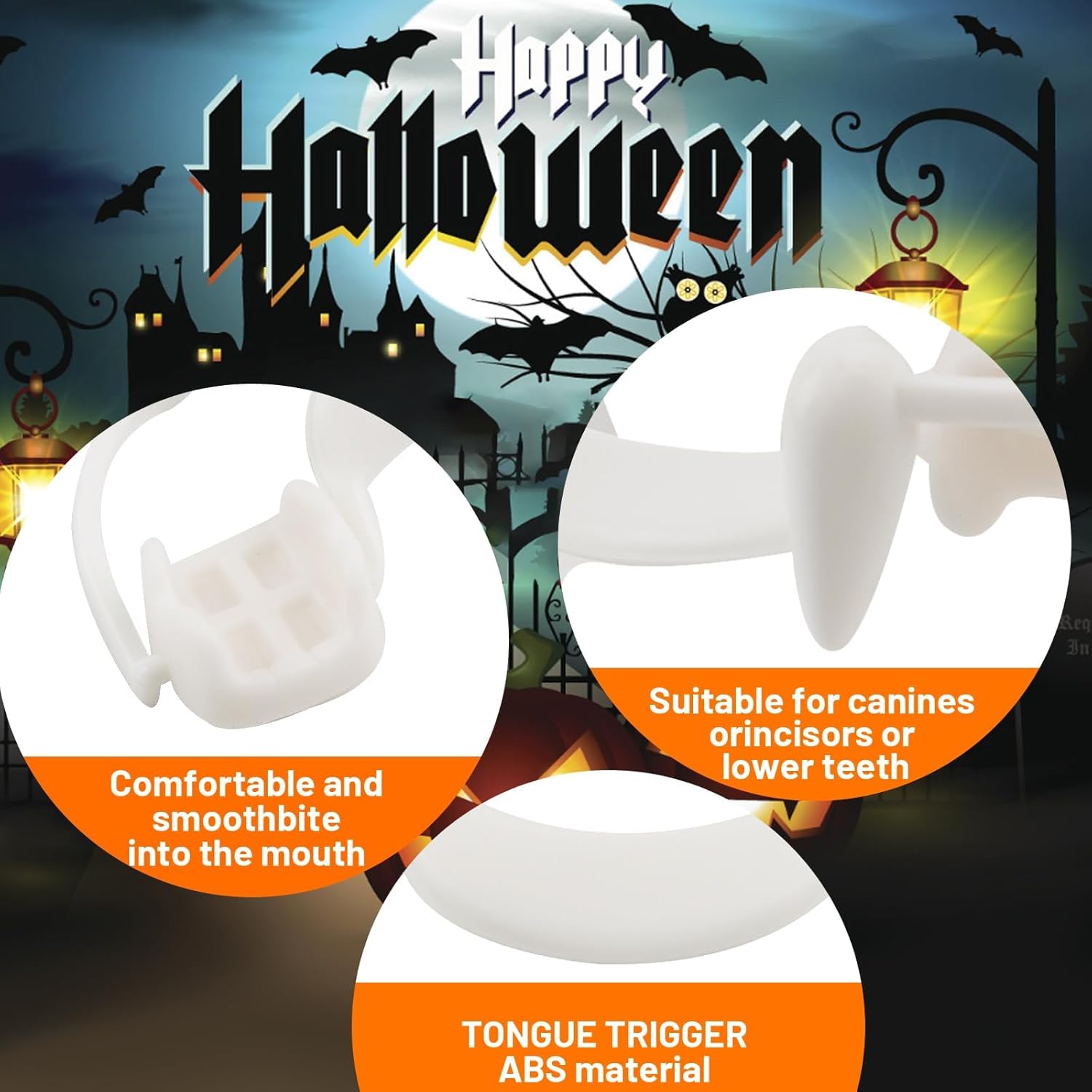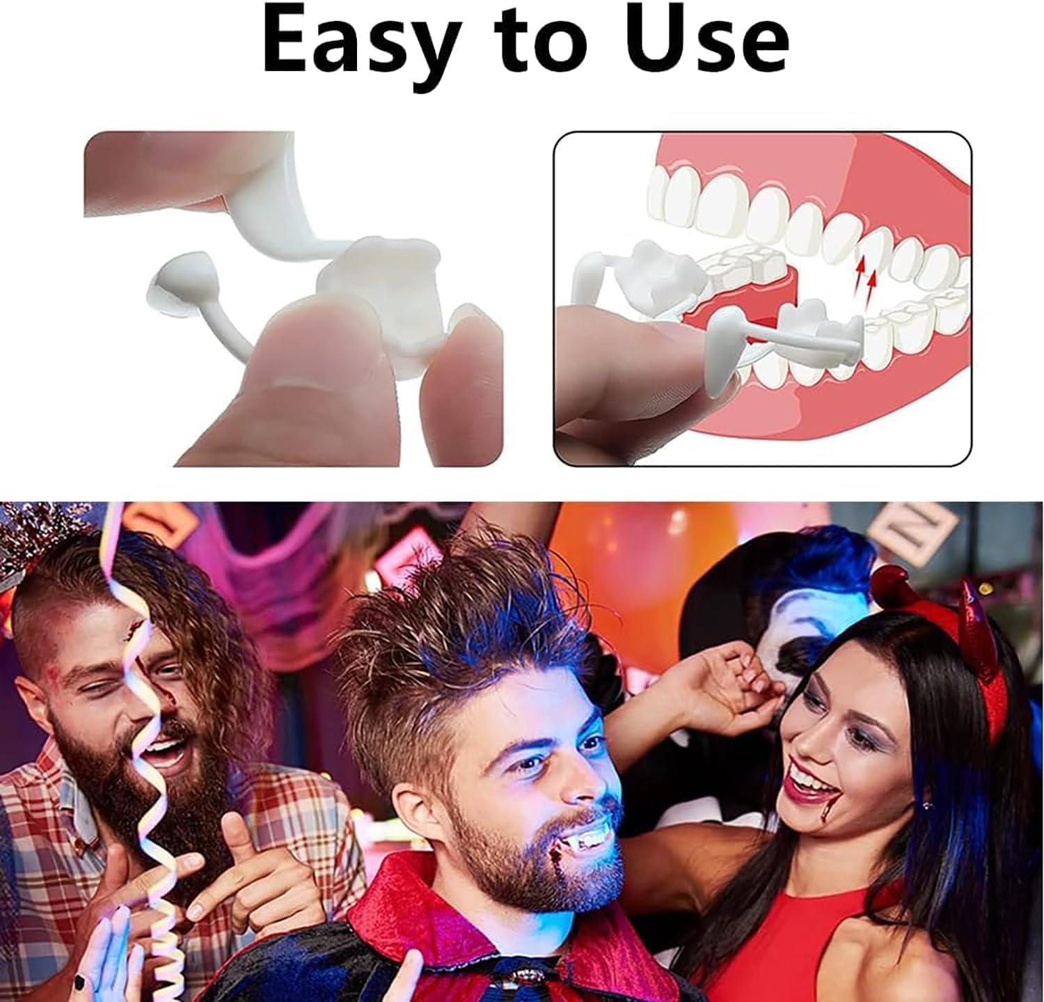 Caratteristiche: Questi denti ti faranno sembrare terrificante. Queste zanne daranno un nuovo look ai tuoi costumi da vampiro e ti faranno trascorrere una festa indimenticabile. I denti da vampiro retrattili possono essere attaccati a canini, incisivi o mascelle. Quindi non dovrai preoccuparti che non siano adatti a te. Questo dente da vampiro non è utile solo per l'uso quotidiano, ma è ideale anche per Halloween, balli in maschera, scherzi e feste a tema fantasmi e horror. Specifiche: Nome del prodotto: Denti da vampiro di Halloween Colore: Bianco Dimensioni: Come mostrato nell'immagine Materiale: Plastica e silicone Quantità: 4 pezzi Contenuto: 4 x denti da vampiro finti 1 x scatola di immagazzinaggio Nota: A causa della luce e della differenza di impostazione dello schermo, il colore dell'articolo potrebbe essere leggermente diverso dalle immagini. A causa della misurazione manuale, si prega di consentire una differenza di 1-2 cm.