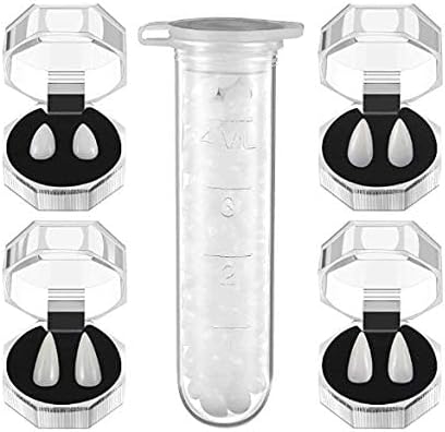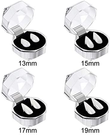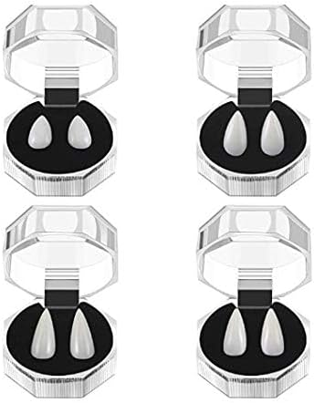 Questo kit per zanne di vampiri di Halloween è fatto di resina sanitaria e di qualità con stampaggio a iniezione, non tossico, sicuro sui denti e sembra realistico. Include 4 diverse dimensioni: 13 mm, 15 mm, 17 mm, 19mm. Ogni paio viene fornito con una scatola trasparente senza adesivo o adesivo per protesi. Ogni coppia di denti da vampiro confezionati in una piccola scatola trasparente, facile da conservare le zanne finte della festa di Halloween e rendere riutilizzabili le protesi dei vampiri per molte volte. Vestibilità perfetta e vestibilità ottimale per l'inserimento mediante l'uso di materiale da impronta (termoplastico) - punta da vampiro per donna, uomo o bambino. Adatto per l'uso come accessorio costume da vampiro, lupo mannaro, zombie e cosplay, può anche essere inviato come regalo ai tuoi amici o alle famiglie con una scatola di cristallo, goditi l'eccitante tempo insieme.