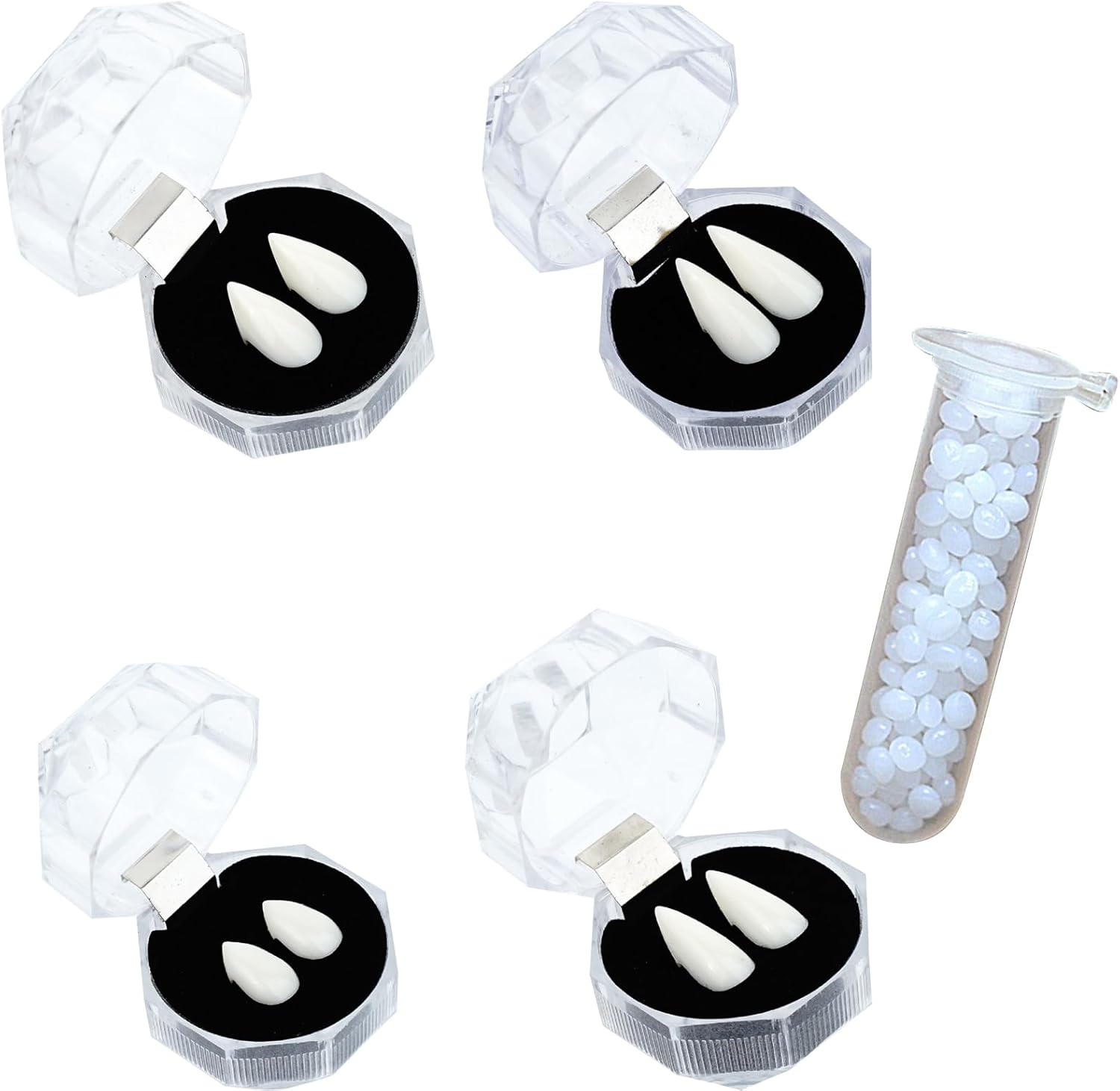 Materiale sicuro confermato: il PVC di alta qualità garantisce pulizia igienica, una struttura morbida e affidabile e assoluta innocuità per la bocca per un'esperienza di utilizzo rilassata. Ampia gamma di applicazioni: ottimo per servizi fotografici e spettacoli teatrali. Queste zanne da vampiro sono perfette per le feste di Halloween e gli eventi horror. Danno ad ogni occasione un tocco inquietante, divertente e un'atmosfera inquietante. Attenzione ai dettagli: questi denti da vampiro colpiscono per le loro repliche realistiche con dettagli precisi che catturano autenticamente il fascino naturale di zanne e gengive per un aspetto sorprendentemente realistico. Applicazione semplice: i denti da vampiro per indossarli e toglierli facilmente garantiscono un'esperienza d'uso senza stress, adatta alla maggior parte delle persone grazie alla forma dei denti universale Applicazione flessibile: 12 divertenti set di denti da vampiro in stili diversi coprono molteplici esigenze di costume. Adattarsi a un'ampia gamma di requisiti di progettazione per un maggiore divertimento in occasione di eventi e feste.