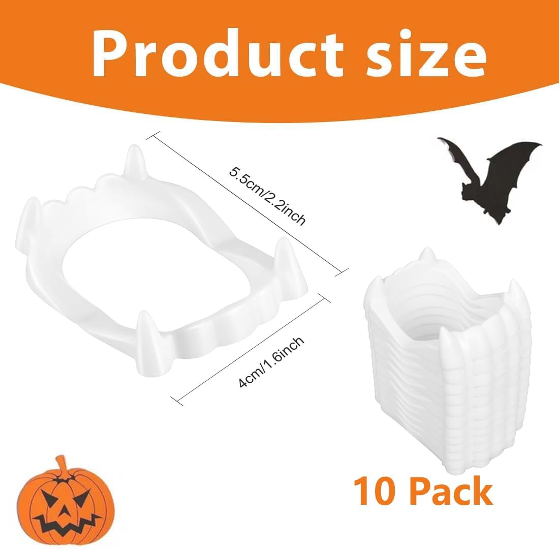Materiale: le zanne di Halloween sono realizzate in plastica morbida atossica, inodore, impermeabile, senza bordi taglienti, sicure e comode da indossare, flessibili, durevoli e resistenti alla deformazione, quindi durevoli. Dimensioni: i denti di Halloween misurano circa 5,5 x 4 cm e si adattano perfettamente alla bocca e ai denti. Sono facili da riporre e trasportare, l'accessorio ideale per Halloween. Si adattano alla bocca della maggior parte delle persone, sia adulti che adolescenti. Ampia gamma di applicazioni: i denti da vampiro sono ideali per molte occasioni, come Halloween, feste di vampiri e zombi, cosplay, feste horror, teatro, giochi di ruolo e altro ancora. Puoi anche usarli per decorare le tue feste o usarli come parte del tuo costume di Halloween per renderlo speciale e accattivante. Design realistico con denti da vampiro: le zanne bianche sono progettate per assomigliare ai veri denti da vampiro e aggiungere un tocco spaventoso e autentico al tuo costume. Il suo design dettagliato sottolinea l'impressione generale e la rende l'aggiunta perfetta a qualsiasi abbigliamento da vampiro. Contenuto della confezione: 10 denti da vampiro. Vieni nello spirito natalizio e trasformati in un vampiro con quelle false zanne! Il nostro regalo per feste con zanne finte è riutilizzabile dopo il lavaggio. Basta lavarlo con acqua pulita o detergente per il viso e non conservare in barattoli di plastica.