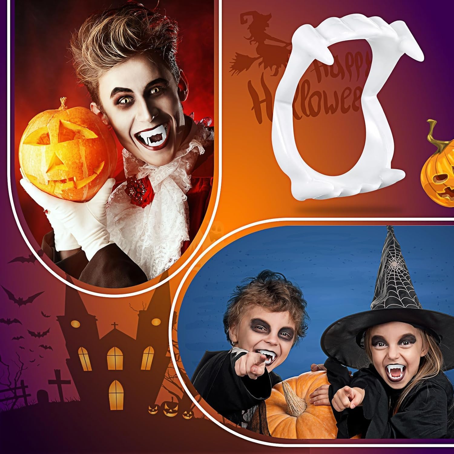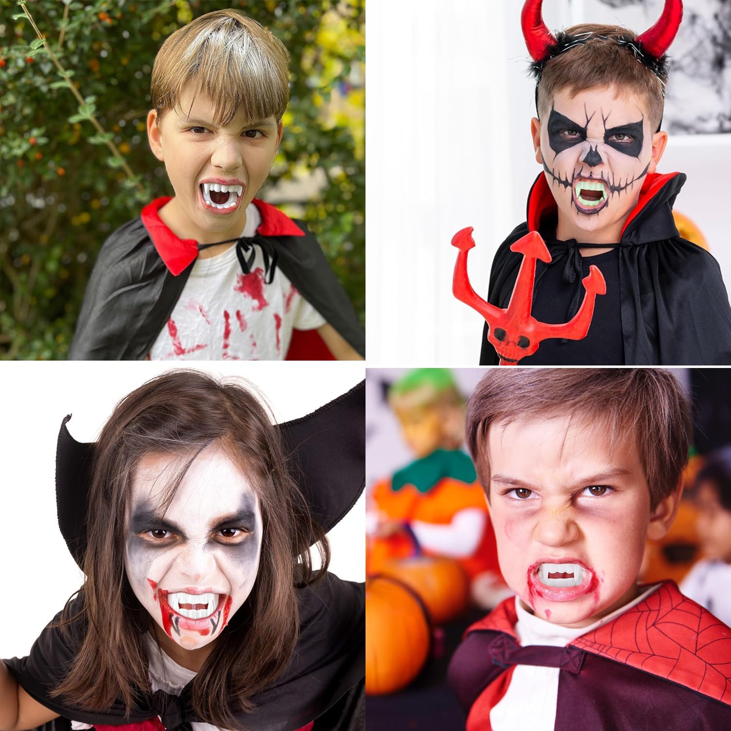 Materiali atossici e sicuri: i nostri denti mostri sono realizzati in plastica atossica e durevole, quindi adatti a tutte le età. Questi denti da vampiro in plastica per bambini sono perfetti come denti di Halloween e garantiscono sicurezza durante il travestimento e il gioco di ruolo. Taglia unica per tutte le età: i denti artificiali da vampiro sono molto realistici e si adattano comodamente alla bocca. Sono perfetti per bambini e adulti. L'effetto realistico può rappresentare vampiri, lupi mannari, mutanti, ecc. E stimolare l'immaginazione. Facile da riporre: questi denti da vampiro sono compatti e pratici da riporre nella borsa della scuola o nella borsa. Spaventoso e divertente da indossare, un ottimo giocattolo per alleviare lo stress e rilassarsi nel tempo libero. Multiuso: completano il vostro outfit da festa e sono un ottimo accessorio per abiti spaventosi. Sono adatti per serate danzanti, feste in maschera, Halloween e molto altro ancora, e sono anche un ottimo regalo per gli amici. Contenuto della confezione: due denti artificiali. Vieni nello spirito delle vacanze e trasformati in un vampiro con queste zanne artificiali! Si possono mettere in bocca senza problemi e senza alcun disagio. I denti artificiali da vampiro possono essere utilizzati a lungo e sono flessibili e comodi da usare.