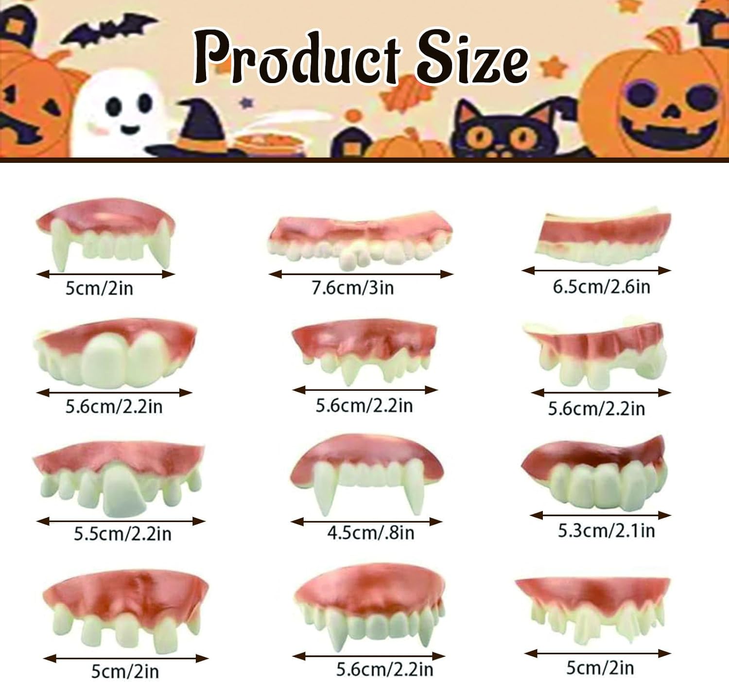 Contenuto della confezione: questo set contiene diversi tipi di denti da vampiro spaventosi per Halloween, sufficienti per creare un'atmosfera spaventosa per la tua festa, un must per ogni festa di Halloween. Materiale di alta qualità: i nostri denti da vampiro sono realizzati in PVC di alta qualità, inodore, atossico, innocuo per la salute, facile da pulire e riutilizzabile, per rendere questo Halloween ancora più spaventoso. Design creativo: la forma dei denti da vampiro è realistica, proprio come i denti e le gengive veri. Questi denti ruvidi, nuovi e interessanti, faranno sicuramente ridere i tuoi amici e renderanno la tua festa più interessante. Occasioni di utilizzo: i denti da demone sono adatti a molte occasioni, come feste di Halloween, feste horror, balli in maschera, carnevale, spettacoli teatrali, ecc. e sono ottimi accessori per le decorazioni di Halloween per divertirsi e scattare foto interessanti. Consigli utili: la soddisfazione del cliente è il nostro obiettivo principale! Se il prodotto non ti soddisfa o riscontri problemi di qualità, non esitare a contattarci, faremo del nostro meglio per risolvere il problema in modo tempestivo!