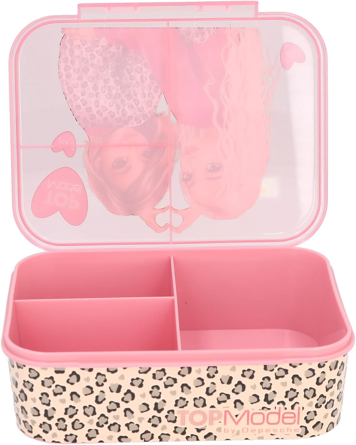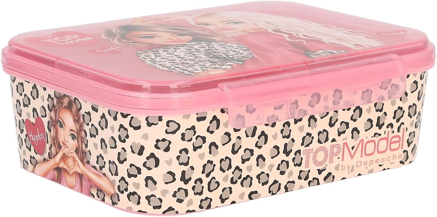 Scatola per snack per ragazze a scuola, nel tempo libero e in viaggio Design: TOPModel Leoheart by Depesche - In rosa, con motivo modello e motivo leo Scatola per il pane con 3 scomparti separati per una pratica separazione degli spuntini e spazio sufficiente per merendine, frutta, verdura ecc. Con una pratica chiusura a clip per una facile apertura e chiusura Dimensioni: circa 17,2 x 14,2 x 5,7 cm, Non adatto alla lavastoviglie e al microonde
