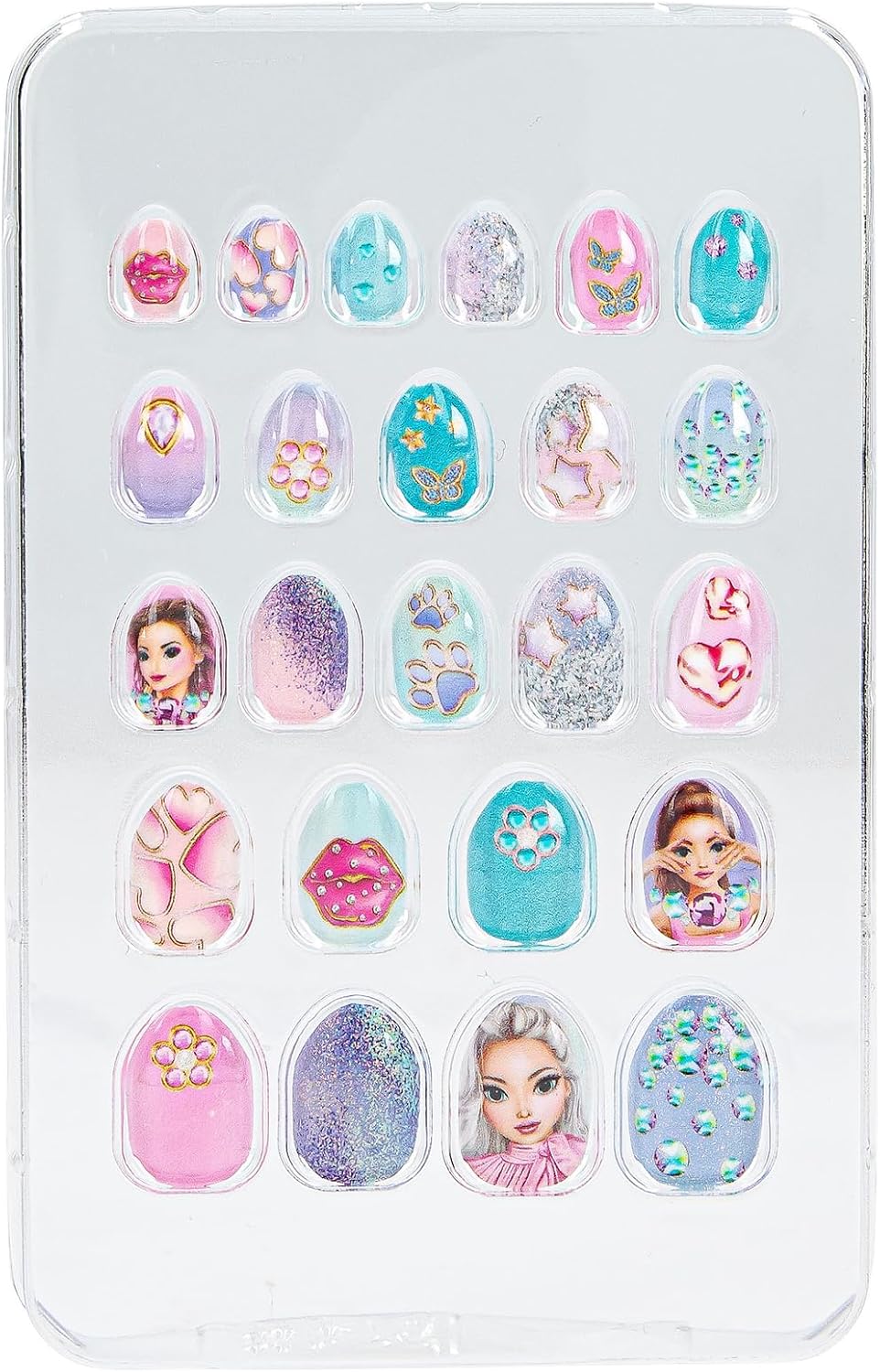 Unghie artificiali da incollare per bambine Design: TOPModel Beauty and Me by Depesche - Con tanti motivi colorati di modelle, sfumature di colori freddi, disegni e molto altro. Contenuto: 24 unghie colorate di diverse dimensioni Unghie autoadesive chic - non è necessario un adesivo aggiuntivo, è facile da applicare e rimuovere di nuovo Splendida idea regalo grazie alla bella confezione