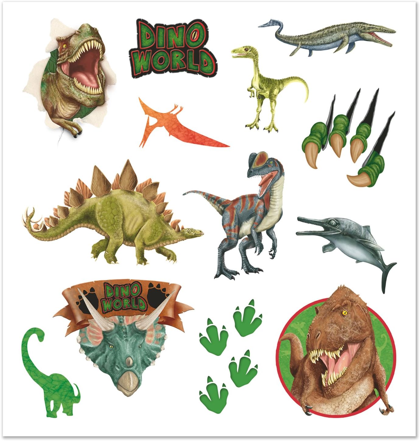 Colorati tatuaggi per bambini Motivo: dinosauro World Alla moda. Include 2 foglio con molte altre tatuaggi Si possono semplicemente con acqua e sapone staccarli