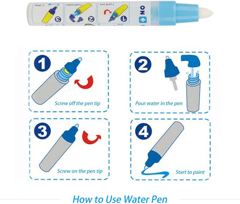 [Attività senza disturbo] Il libro di disegno dell'acqua richiede acqua per la pittura, eliminando i punti [Arte riutilizzabile] I colori svaniscono quando sono asciutti, permettendo alla creazione di opere di arte continua [Strumento educativo] migliora l'apprendimento attraverso il gioco, il che lo rende ideale per i bambini [Early Artistic Spark] Sparks creatività nei bambini offrendo una semplice esperienza di pittura Formato [pratico e portatile] collegato alla bobina e alle foglie sciolte facile manipolazione e trasporto