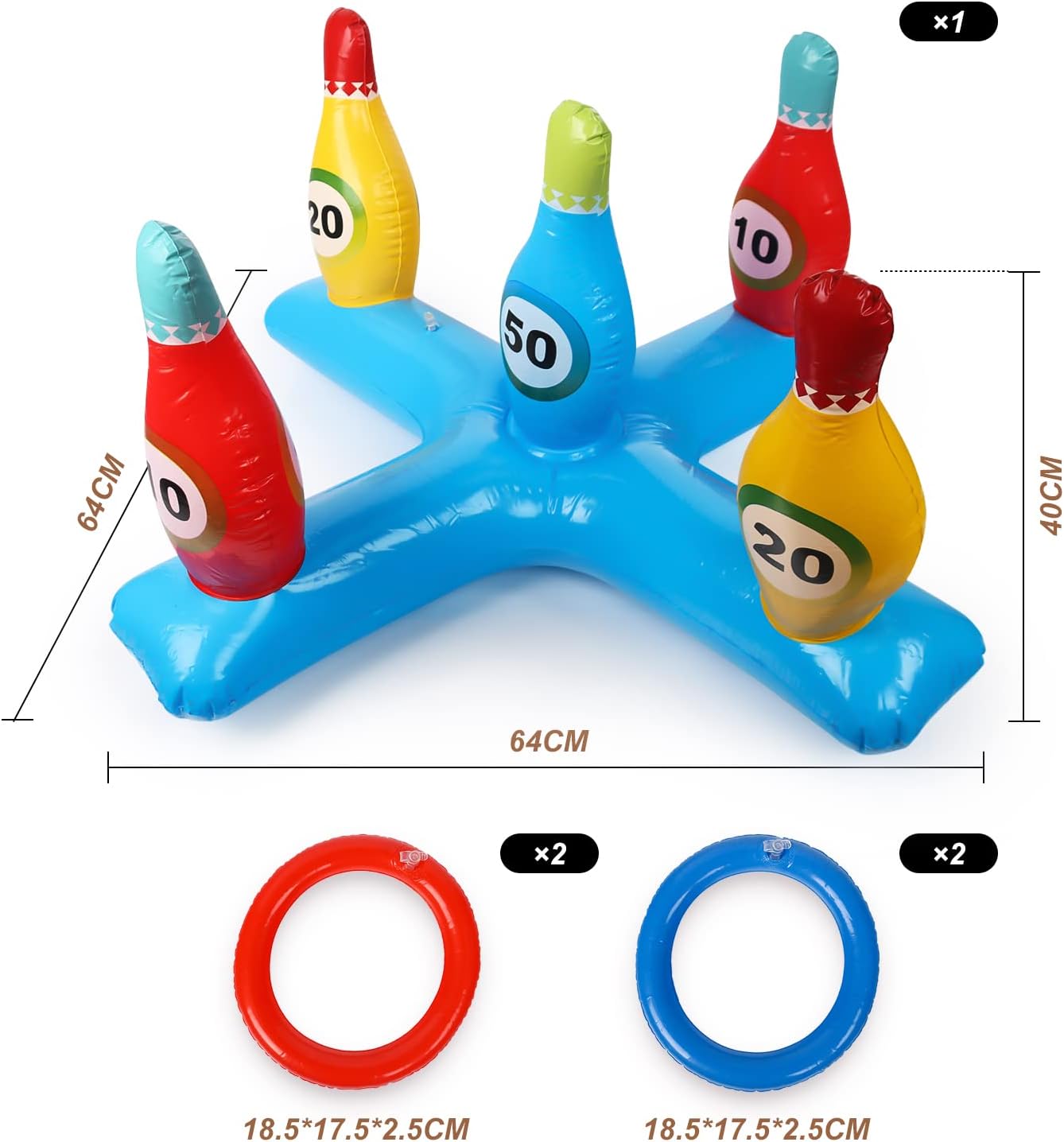 🎳 【Giocattoli gonfiabili da piscina】 Questo gioco di lancio può essere utilizzato per feste al chiuso o all'aperto. Puoi anche giocare a questo divertente gioco di lancio con la tua famiglia e i tuoi amici per avvicinarvi gli uni agli altri e divertirvi a stare insieme. 🎳 【Materiali di alta qualità】 I giocattoli per sport acquatici estivi sono realizzati in PVC di alta qualità, sono resistenti e facili da trasportare e non lasciano fuoriuscire l'aria così facilmente. Una volta gonfiato galleggia facilmente in acqua e può essere riposto a lungo fino al successivo utilizzo. 🎳 【Gioco di lancio dell'anello Gioco di società】 Questo gioco di lancio dell'anello gonfiabile è adatto per interni ed esterni, feste in piscina, feste estive in spiaggia, feste di compleanno, viaggi, spiaggia, giochi all'aperto e altro. 🎳【Migliora le abilità sportive】Questo gioco sviluppa la coordinazione occhio-mano e le capacità motorie dei bambini e li aiuta a migliorare la concentrazione. È anche un buon gioco per incoraggiare l'interazione tra genitori e figli. 🎳 【Giocattoli da piscina per adulti e bambini】 È un fantastico regalo estivo per tutti. Questi giochi acquatici sono perfetti per trascorrere una felice giornata in piscina con i tuoi amici o familiari. Goditi l'acqua in questa calda estate.