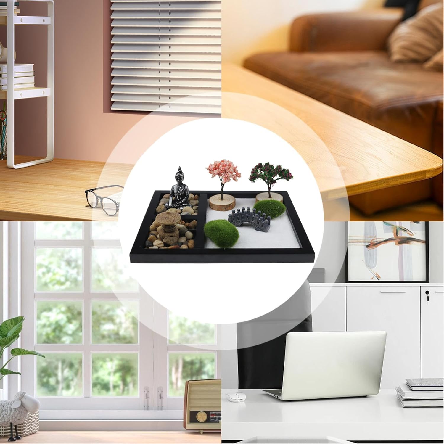 Bellissimo paesaggio desktop: immergiti in tranquillità con la bellezza affascinante di un giardino Zen per la scrivania, completa di una statua serena e intricati motivi di sabbia Affidabile e robusto: costruito con una tavola ad alta densità permanente, questo kit da giardino Zen promette un luogo calmante, trasformando il tuo ambiente in un ritiro pacifico Funzioni multiple: non una decorazione multifunzionale che migliora qualsiasi spazio, ma questo giardino di decorazioni giapponesi funge anche da bellissimo centrotavola e accento di meditazione, promuovendo la soddisfazione Squisitamente realizzato: splendidamente realizzato, questo giardino Zen decorarà perfettamente il tuo spazio con dettagli squisiti, dandoti una guida stimolante Ampiamente applicabile: ideale per qualsiasi spazio compresi ambienti aziendali, luoghi di lavoro a casa, sale di studio o ingressi, questo giardino Zen desktop promuove umori armoniosi e positivi per migliorare l'ambiente circostante