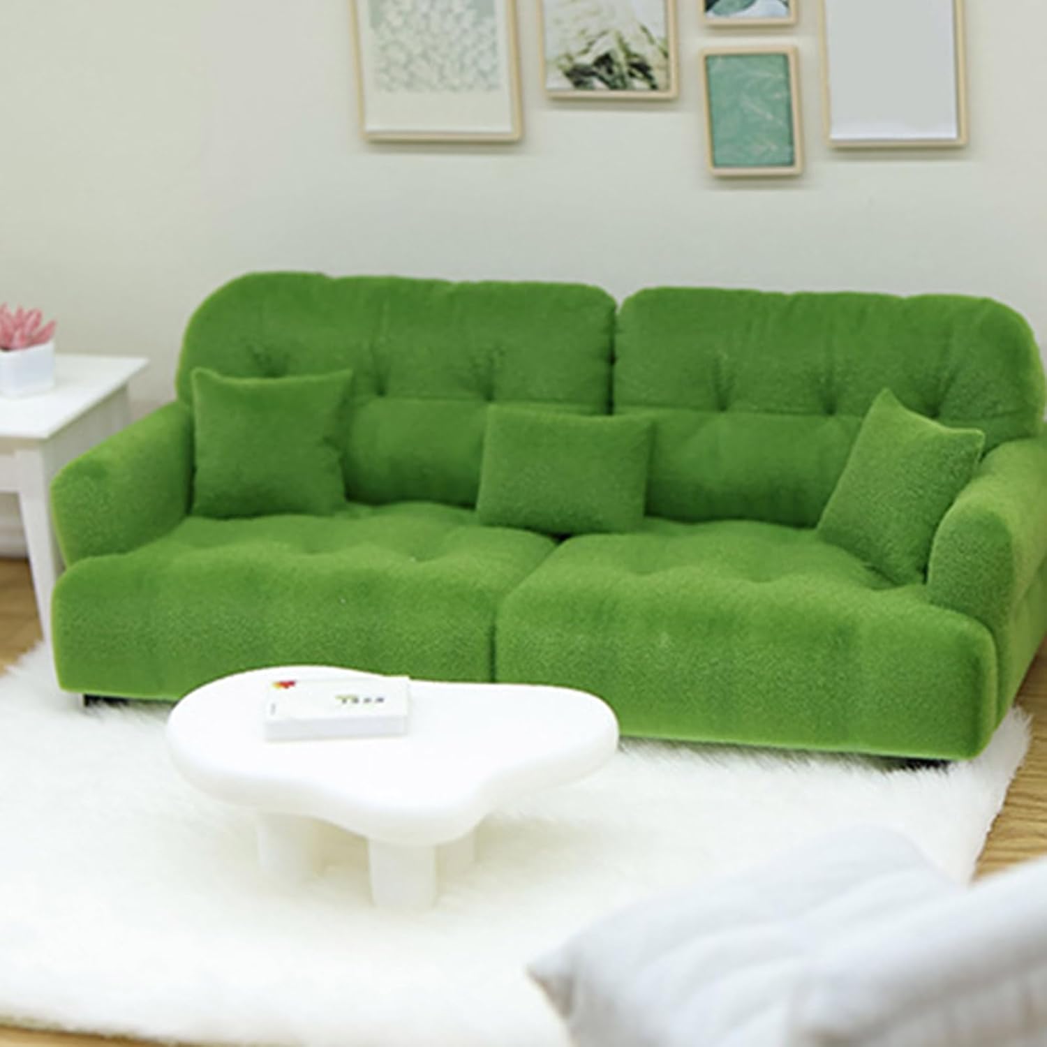 Materiali plastici. Non facile da deformare, innocuo Questo divano realizzato in tessuto e plastica visivamente accattivante Un regalo molto divertente per tutti coloro che amano i decoratori della casa delle bambole Modello di divano vintage elaborato, compatto e classico, alto grado di riduzione eccellente aspetto del modello è molto vicino alla realtà. Fantastici puntelli per foto