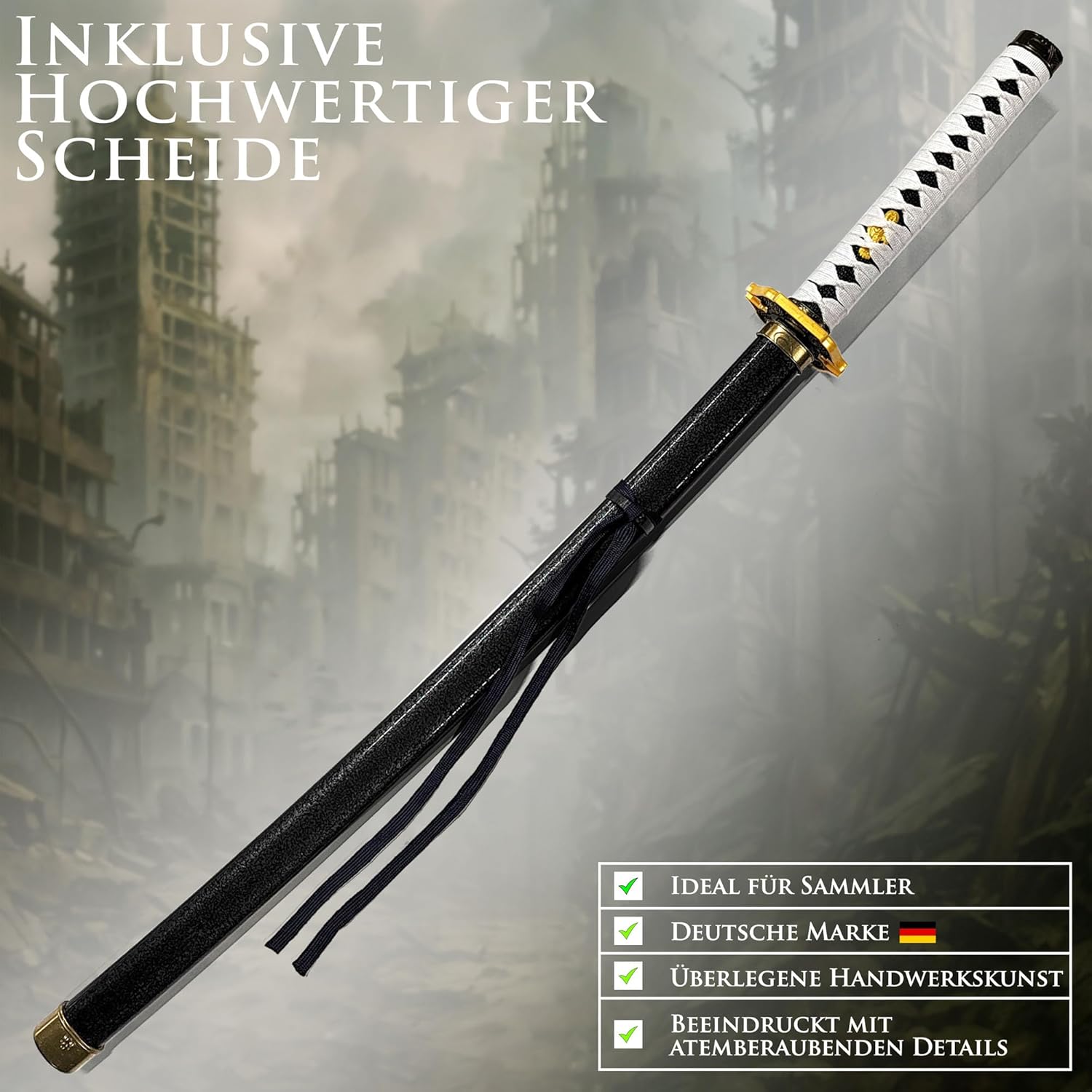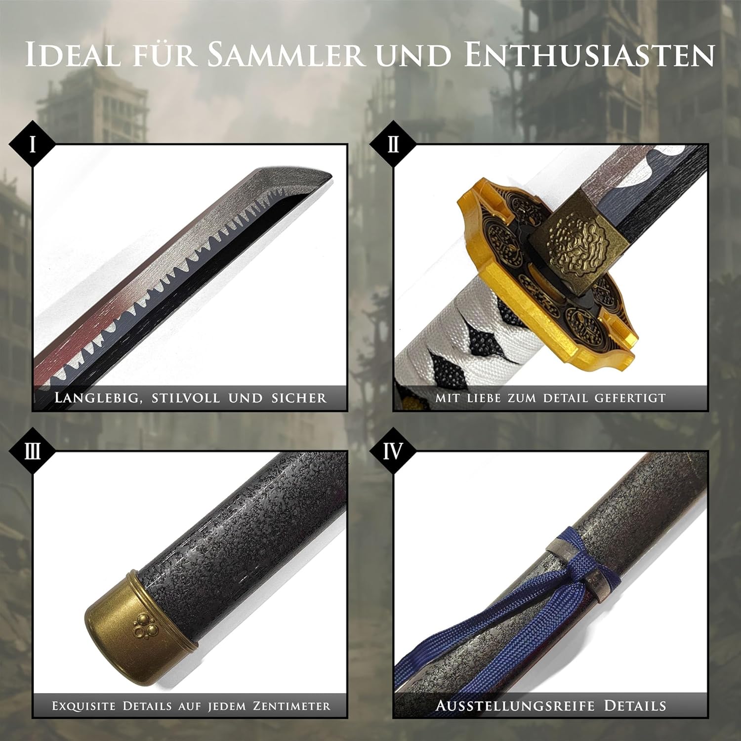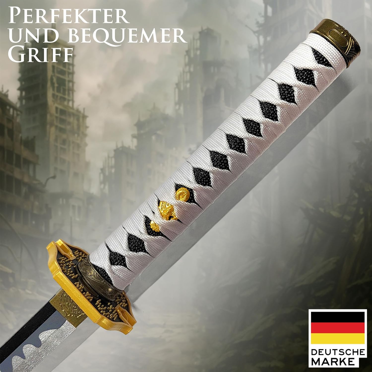 Replica fedele della spada di Nero, ispirata a Devil May Cry 5. Questa spada di legno dettagliata porta fedelmente l'iconica arma di Nero di Devil May Cry 5 nella tua collezione. Che si tratti di un outfit cosplay o di un pezzo da esposizione, il design si basa esattamente sul modello del gioco e garantisce un'autentica sensazione di fan. Accessori cosplay sicuri grazie alla lama di bambù di alta qualità e al fodero in legno. La lama realizzata in robusto bambù rende questa spada una scelta sicura per convention, servizi fotografici o eventi LARP. Grazie alla struttura leggera e senza schegge, il modello è particolarmente adatto per ambienti in cui il vero metallo non è adatto. Leggero e dimensioni perfette: ideale per gli spostamenti e da esporre. Con una lunghezza totale di 98 cm compreso il fodero e un peso di soli 0,44 kg, la spada è comoda da trasportare e maneggiare. Il manico misura 23,5 cm, la lama 69 cm - ideale per pose dinamiche, presentazioni o come decorazione sullo scaffale da gioco. Include una custodia elegante: trasporto sicuro e aspetto di alta qualità. La custodia in legno inclusa non solo protegge la lama durante il trasporto, ma completa perfettamente anche l'aspetto generale. Il suo design dettagliato rende la replica un elegante pezzo completo che è altrettanto impressionante sullo scaffale come lo è in mano. Perfetto per collezionisti, cosplayer e giocatori: un must per i fan di DMC. Questa spada di bambù è più di un semplice oggetto di scena: è un omaggio alle avventure di Nerone. Come regalo, articolo per fan o oggetto da collezione, delizierà tutti coloro che amano Devil May Cry 5 e vogliono vivere il mondo di Capcom fuori dallo schermo.