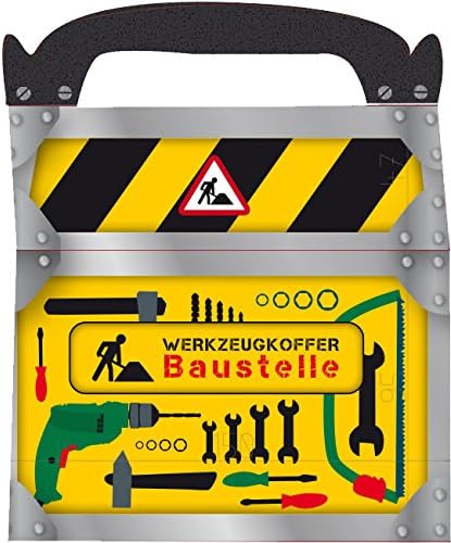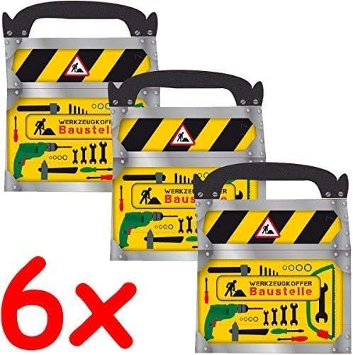 6 scatole regalo in cartone e stampate con motivi CANTIERE Dimensioni: ca. 15 x 8 x 10 cm, ideale per compleanni e feste a tema muratori... con pratica maniglia per il trasporto. Ben confezionato e sigillato. Ideale come bomboniera per sorprendere gli ospiti ad una festa in cantiere. Questa serie comprende piatti, tazze, tovaglioli, cannucce, inviti, ghirlande, palloncini e sacchetti per feste coordinati "BAUSTICE"