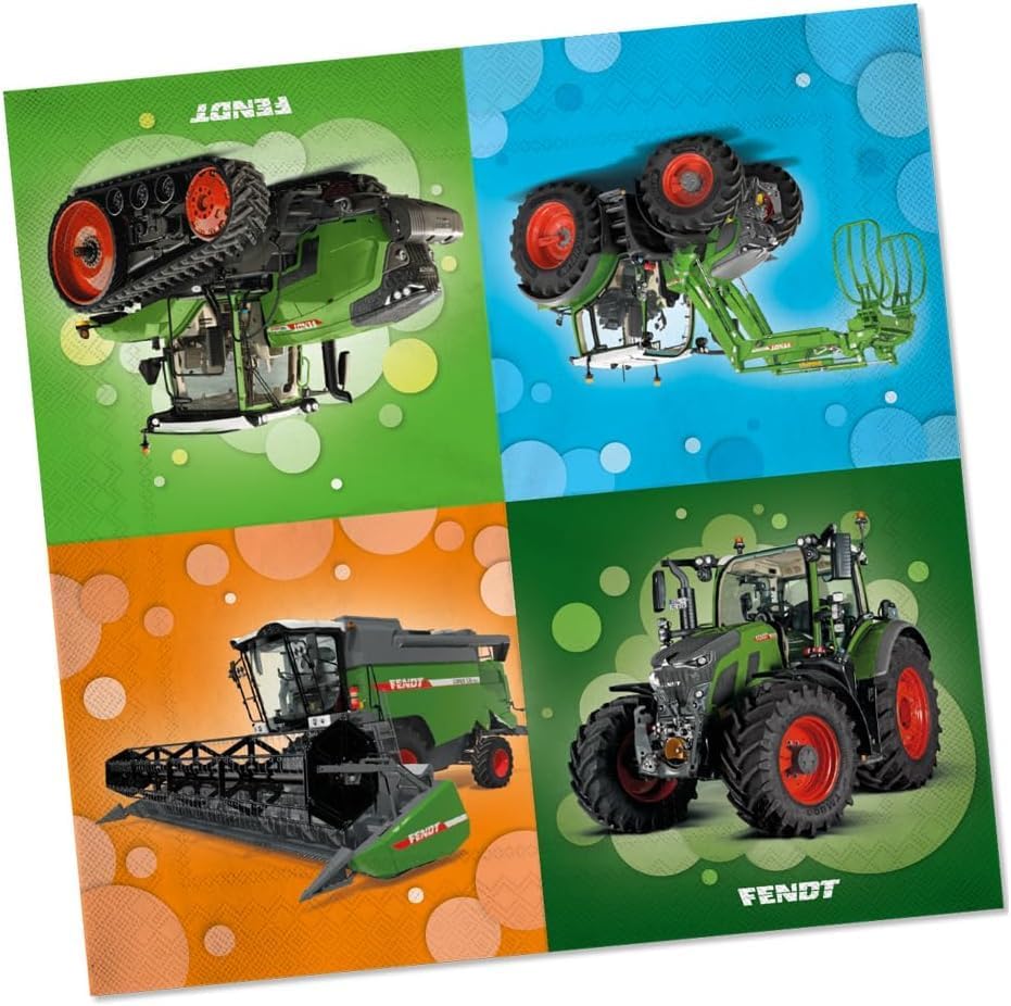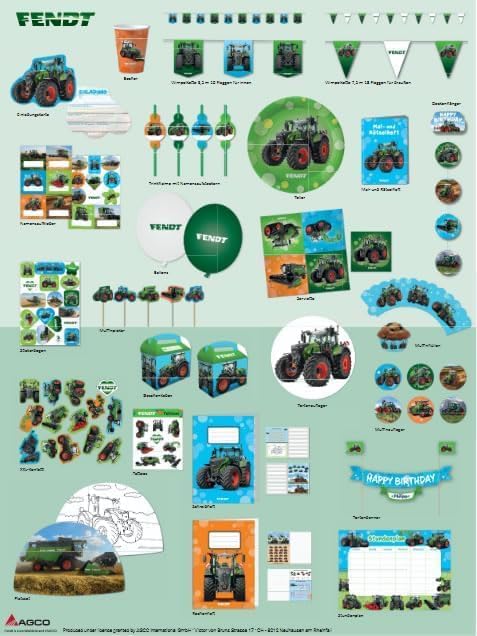 40 pezzi Set per feste * FENDT TRATTOR * con 10 piatti di carta + 20 tovaglioli + 10 bicchieri di carta per compleanno bambini e feste a tema Piatti di carta: circa 23 cm di diametro, bicchieri di carta: 200 ml Tovaglioli di carta: completamente aperti circa 33 cm x 33 cm, a tre strati Produttore: DH-Konzept (Germania) Sono disponibili anche biglietti di invito, decorazioni, regalini ecc