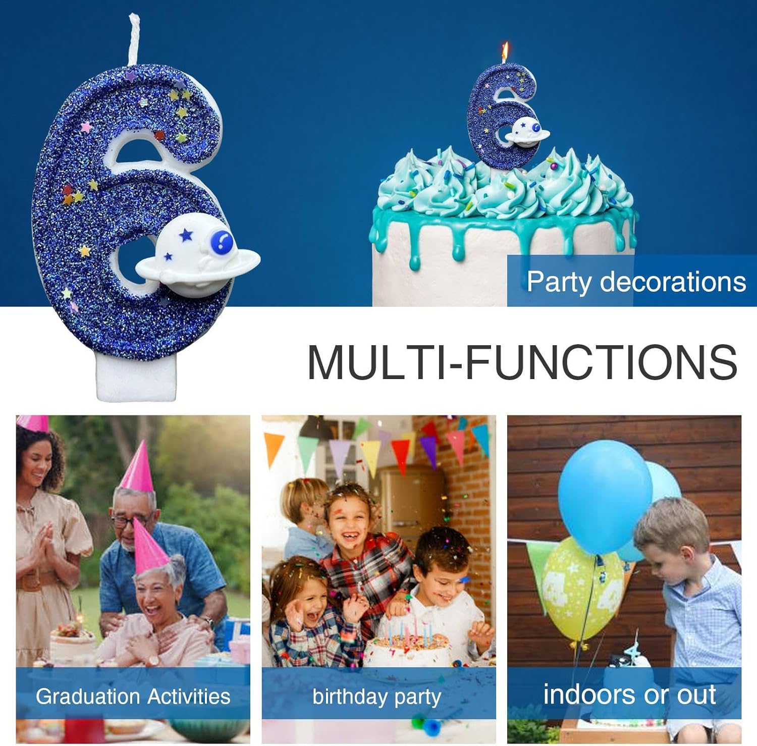 Design accattivante: la luce blu brillante di questa candela con numero di compleanno crea un effetto accattivante istantaneo, mentre il suo design scintillante aggiunge un tocco di divertimento alle celebrazioni di compleanno. Rendi la giornata dei tuoi amici e familiari ancora più speciale con questa candela straordinaria Candele numerate: completa l'arredamento della tua festa con queste affascinanti candele a cifre. Il set è disponibile in tutti i numeri da 0 a 9, fornendo più possibilità di età Candele a tema spaziale: trasforma una torta normale in un universo mistico con questa candela con numero di compleanno blu del pianeta spaziale. Aggiunge un tocco di fantasia maestosa, rendendo la celebrazione più affascinante e indimenticabile Sicuro per gli utenti: il fondo della candela è saldamente progettato, rendendolo facile da inserire nella torta, assicurando che non si pieghi o cada, fornendo maggiore sicurezza per le celebrazioni e rendendolo sicuro per i bambini da usare Progettato per le feste: ideale per una festa a tema spaziale per i bambini, parte dell'intera decorazione per feste o un'aggiunta romantica a una festa per adulti, non solo il momento clou della torta di compleanno