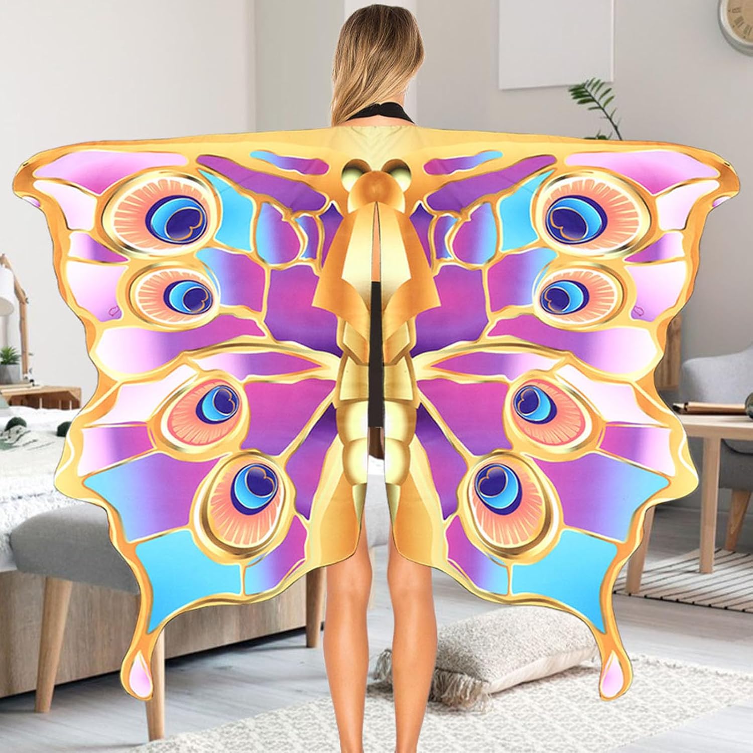 Splendido motivo a ala: con il realistico motivo a ali di farfalla, i bambini volano in un mondo favoloso e colorato e vivono avventure fantasiose che ampliano i loro orizzonti e promuovono la creatività. I bambini si sentono come una farfalla. Comfort: vivi un'esperienza di vestirsi incantevole con le nostre ali di farfalla. Legarli liberamente intorno al collo, inserire le dita nel passante e voilà. Non e facile da trasportare, goditi una trasformazione facile e veloce ogni volta. Ben fatto: aggiungi un tocco unico al tuo stile con queste ali di farfalla realizzate in materiale morbido, traspirante e liscio. Queste ali resistenti sono state stampate con tecnologia digitale 3D per garantire colori vivaci che non sbiadiscono. Sono realizzati in poliestere leggero e setoso. Goditi una vestibilità comoda tutto il giorno e assicurati che appaia vivace anche dopo ogni lavaggio. Progettato per festeggiare: senti le tue farfalle interiori con queste ali brillanti, perfette per feste di Halloween, feste in maschera, carnevale, giochi di ruolo, spettacoli scolastici e altro ancora. Queste ali sono un costume meraviglioso per ogni occasione e ti faranno risaltare in qualsiasi evento, festival o sfilata. Perfetto per le ragazze: lascia correre l'immaginazione del tuo bambino quando indossa questo mantello con le ali. Le ali di farfalla colorate svolazzano mentre ballano e le portano in un mondo fantastico da favola. Perfetto per bambini fantasiosi.