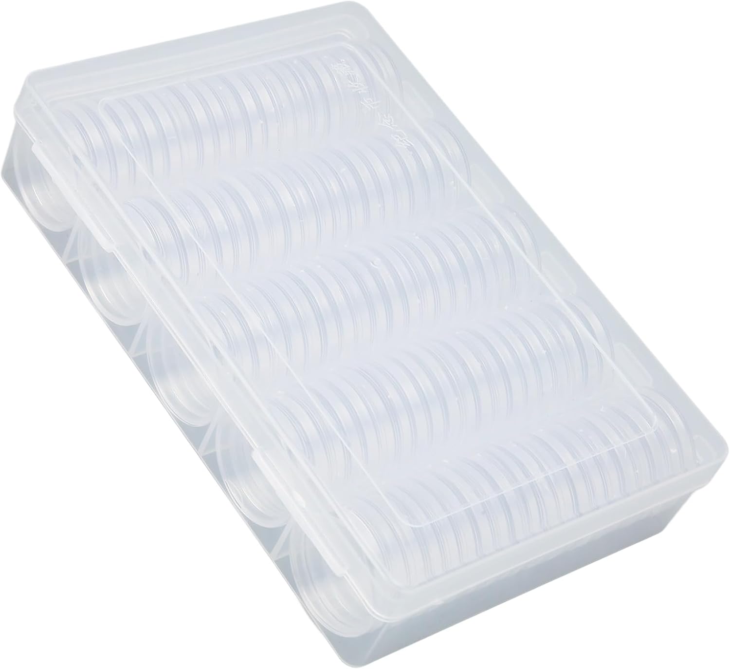 : questi contenitori di monete rotondi e trasparenti possono essere dati a bambini, amici e familiari come regali pratici. Rimarrai stupito dal design semplice e pratico. Plastica trasparente: queste capsule di monete sono realizzate con materiali plastici di alta qualità trasparenti, robusti e durevoli, in modo da poter vedere chiaramente le monete che raccogli. Box di stoccaggio: queste capsule rotonde di monete sono in modo sicuro e organizzate in scatole di stoccaggio di plastica, rendendole perfette per i collezionisti di monete per conservare le loro monete preferite. 100 pezzi: viene fornito con 100 custodie di raccolta di monete rotonde, facili da aprire e chiudere e soddisfare le tue esigenze di raccolta e conservazione nella giusta quantità. Protezione delle monete: questi titolari di monete rotondi hanno eccellenti prestazioni di tenuta, proteggendo efficacemente le monete da polvere, ossidazione, acqua e graffi.