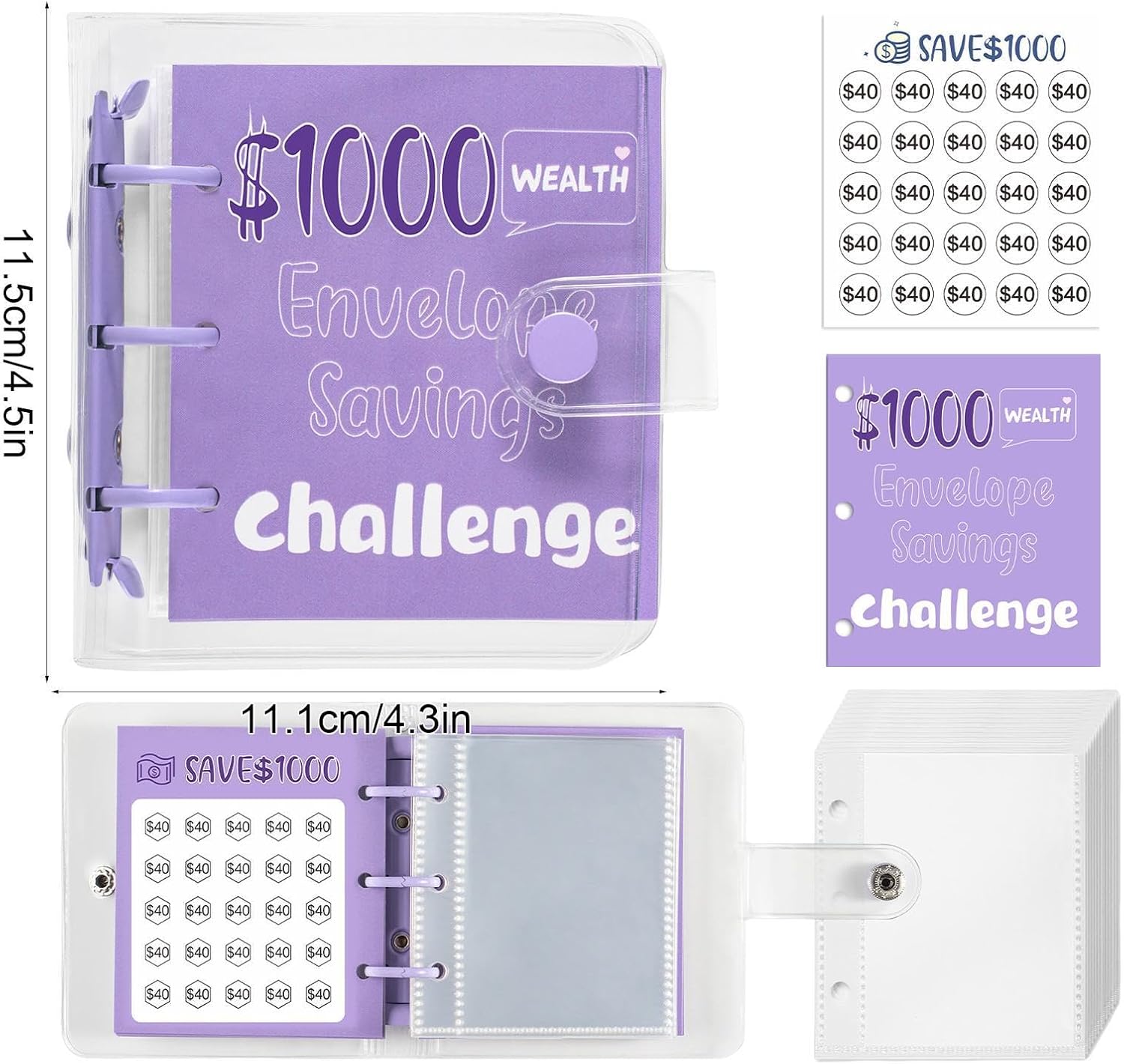 Soluzione completa per risparmiare denaro: la sfida di risparmio di $1.000 è progettata per aiutarti a raggiungere i tuoi obiettivi finanziari in modo strutturato e piacevole. Questa sfida ti incoraggia a risparmiare $1.000 organizzando i tuoi soldi in modo sistematico, rendendo il risparmio sia pratico che gratificante. Money Saving Challenge Binder: la sfida viene fornita con un raccoglitore dedicato che include 25 buste, ognuna delle quali rappresenta uno specifico obiettivo di risparmio. Questo raccoglitore ti aiuta a tenere traccia dei tuoi progressi e assicura che i tuoi risparmi siano organizzati e facilmente accessibili. Buste strutturate: le 25 buste sono progettate per essere utilizzate passo dopo passo. Ogni busta corrisponde a un importo di risparmio, che ti consente di allocare fondi regolarmente e lavorare costantemente verso il tuo obiettivo di $1.000. Le buste sono etichettate per un facile tracciamento e responsabilità. Organizzazione ricevute e fatture: il raccoglitore presenta sezioni per organizzare ricevute e fatture, assicurandoti di tenere traccia di tutti i documenti finanziari in posizione. Questa funzione aggiuntiva ti aiuta a gestire le tue finanze in modo più efficiente e a rimanere al top del budget. Pianificatore portatile per risparmiare denaro: il design compatto e portatile del raccoglitore lo rende facile da portare con te ovunque tu vada. Che tu sia a casa, al lavoro o in trasferta, puoi gestire comodamente i tuoi risparmi e tenere traccia dei tuoi progressi.