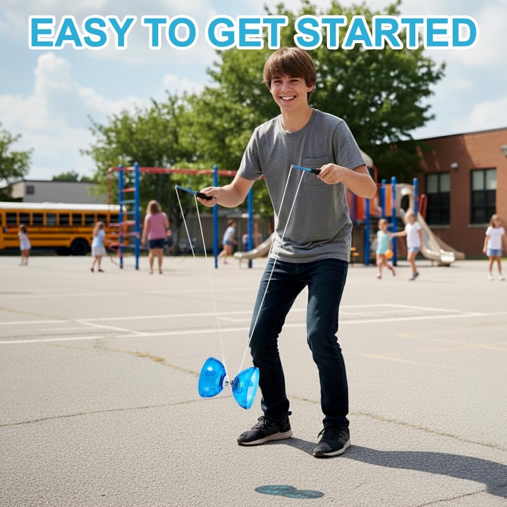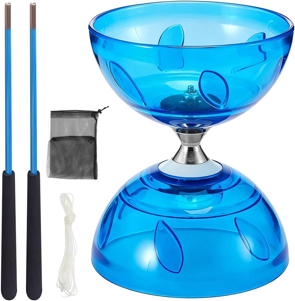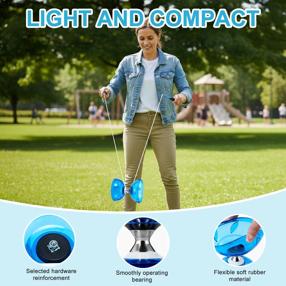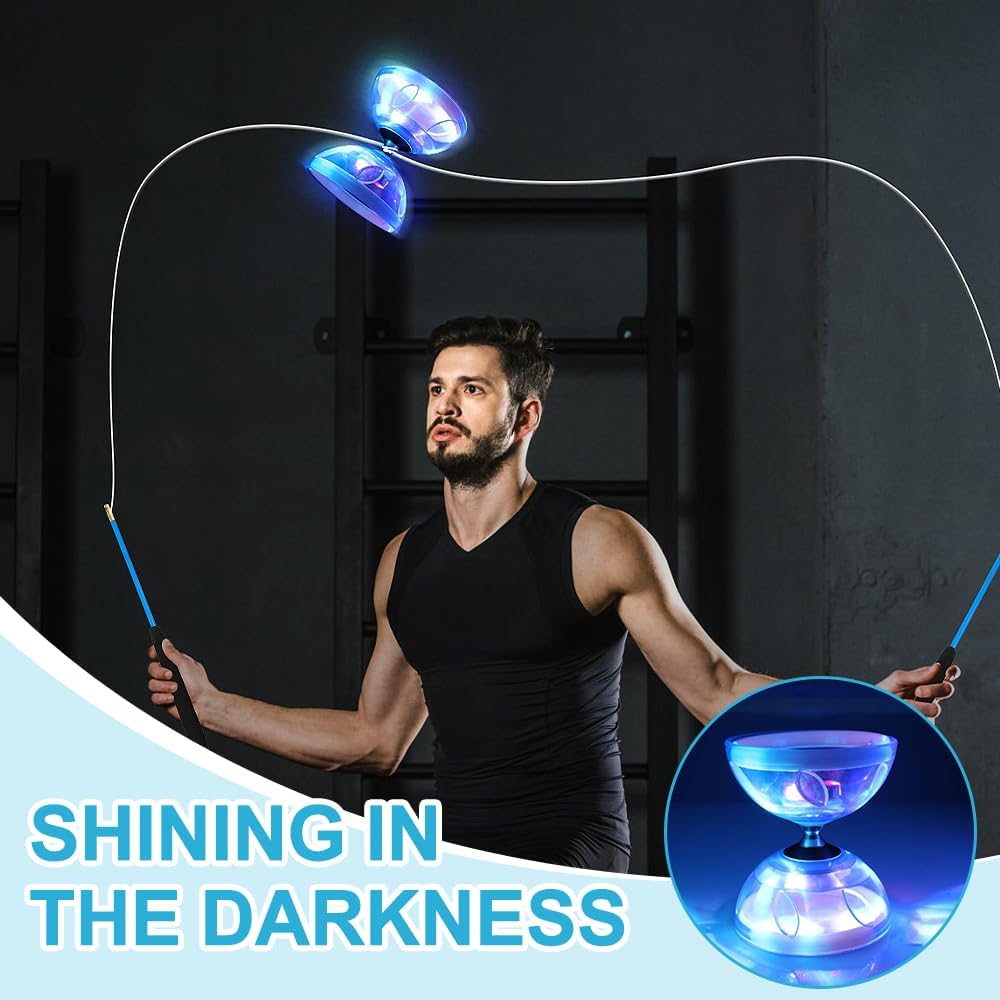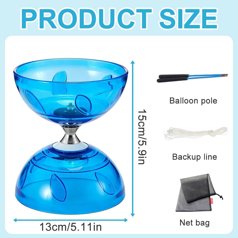 【Set Diabolo Super Value】Diabolo Professionale a 3 Cuscinetti include uno splendido diabolo, un paio di bastoncini, una corda di ricambio da 10 metri e una borsa a rete per riporre facilmente altri accessori da giocoleria, perfetto per adulti, principianti e giocatori esperti. 【Materiali di alta qualità】Diabolo Professionale a 3 Cuscinetti cuscinetti e il corpo principale sono realizzati in gomma morbida e trasparente, flessibile e resistente agli urti. Anche se i lo lasciano cadere accidentalmente durante il gioco, non si romperà né si graffierà facilmente. 【Design luminoso】Diabolo Professionale a 3 Cuscinetti grazie alle perle luminose a LED integrate e al meccanismo di attivazione sensibile, il diabolo si illumina automaticamente quando gira e si illumina intensamente quando si gioca di notte, il che non solo migliora l'esperienza visiva, ma rende anche il percorso del movimento più chiaro e aumenta il divertimento del gioco. 【Facile da usare】Diabolo Professionale a 3 Cuscinetti grazie all'elevata stabilità, alla forte forza di rotazione e al peso moderato, sia i principianti che i giocatori esperti possono padroneggiare facilmente i movimenti di base come la partenza e l'accelerazione, ed eseguire senza problemi tecniche avanzate come il lancio, la presa e l'avvolgimento. 【Applicabile in molteplici scenari】Diabolo Professionale a 3 Cuscinetti materiale è resistente all'usura e all'invecchiamento. Diabolo Professionale a 3 Cuscinetti adatto per l'allenamento in piccoli spazi come soggiorni e balconi, e può essere utilizzato anche all'aperto come piazze e parchi.